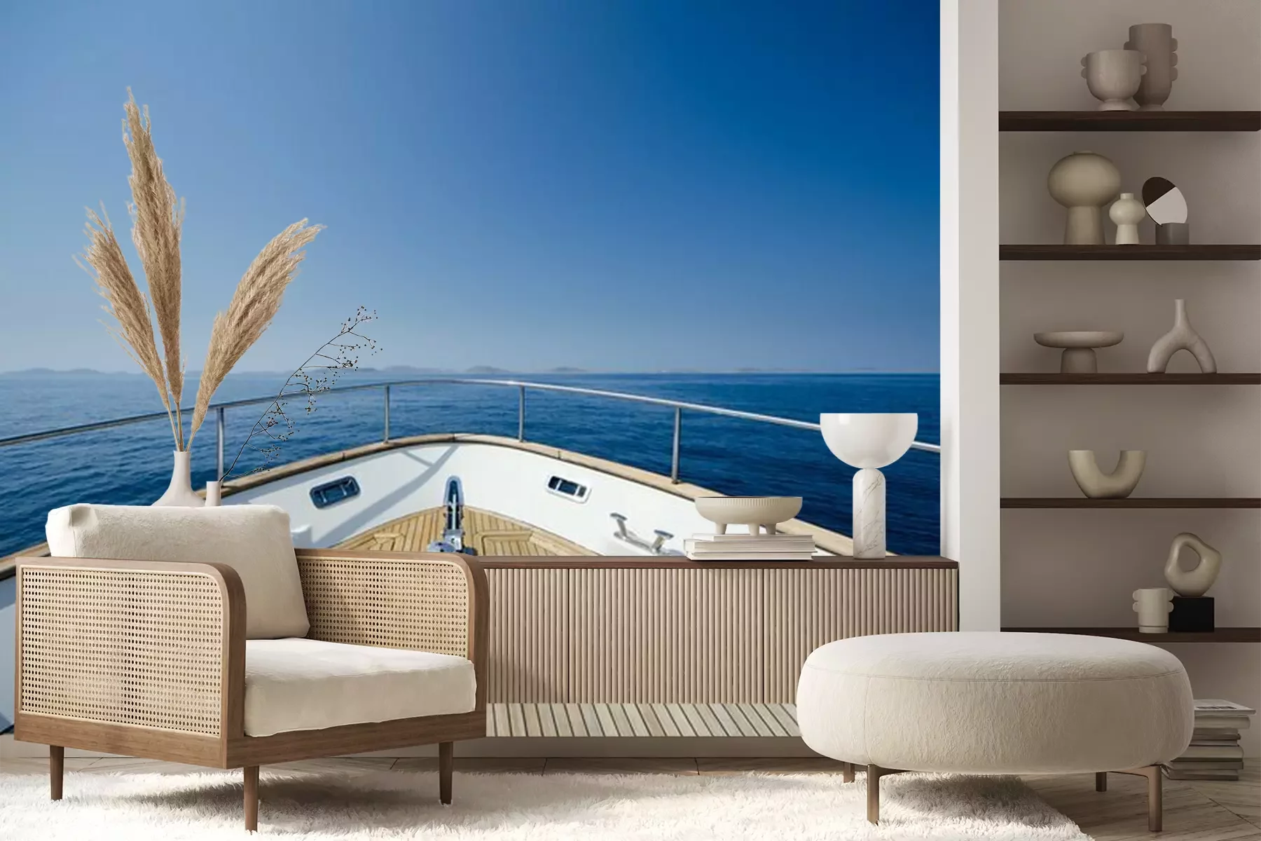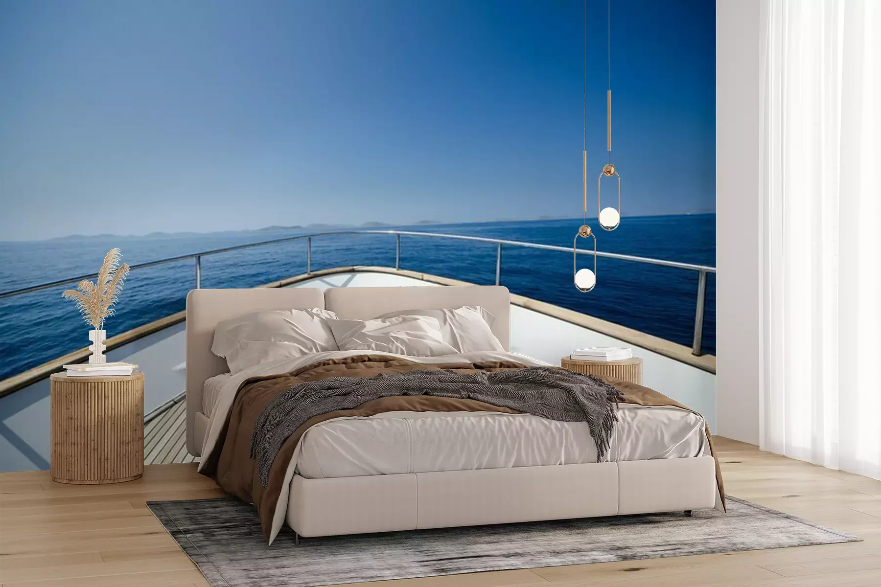 Het materiaal Premium+ is een gestructureerd vinyl op vlies met een gewicht van 255 g/m², dat kleine oneffenheden in de muur effectief camoufleert. De subtiele structuur van fijn zand geeft het oppervlak een exclusieve uitstraling, terwijl de halfmatte afwerking de diepte van de kleuren benadrukt. Het materiaal is dampdoorlatend, waardoor het ook in de keuken en badkamer kan worden gebruikt. De maximale breedte van één baan bedraagt 100 cm – bij grotere afmetingen wordt het fotobehang in meerdere gelijke banen verdeeld. De lijm wordt direct op de muur aangebracht en het behang wordt rand-aan-rand geplakt, wat zorgt voor een esthetisch resultaat zonder zichtbare naden. Het oppervlak kan gemakkelijk worden schoongemaakt door het voorzichtig af te nemen met een vochtige doek.