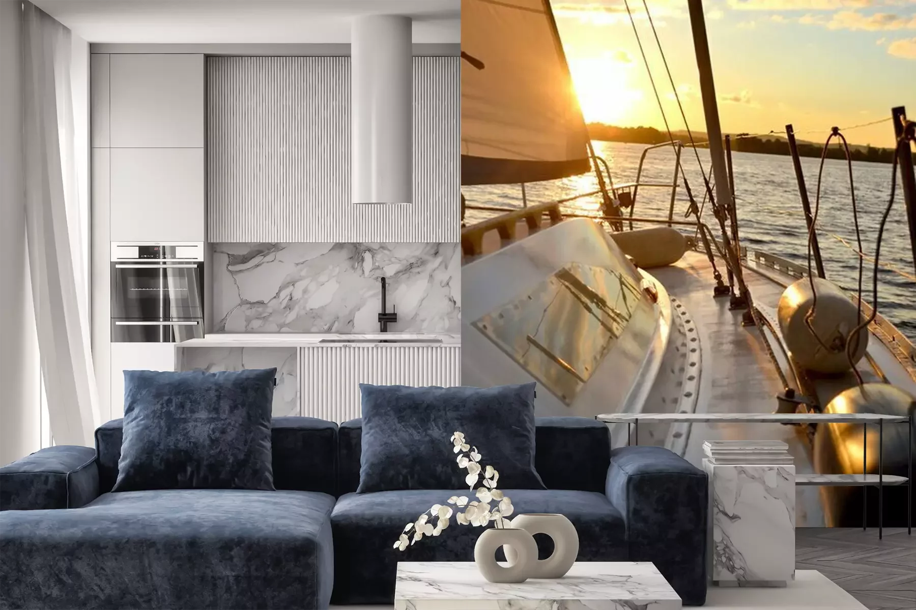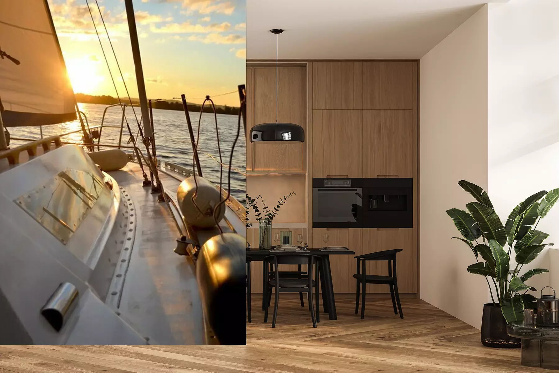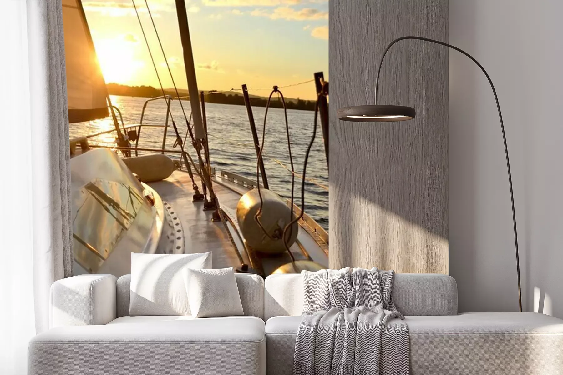 Fotobehang Zeilboot in het licht van de ondergaande zon