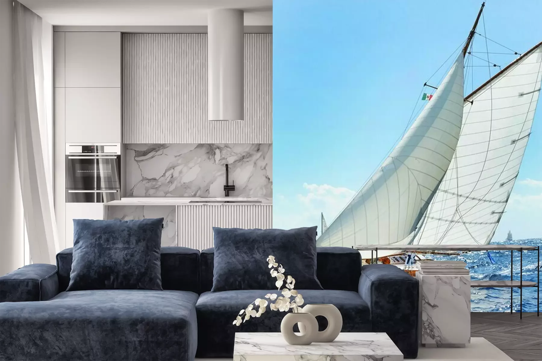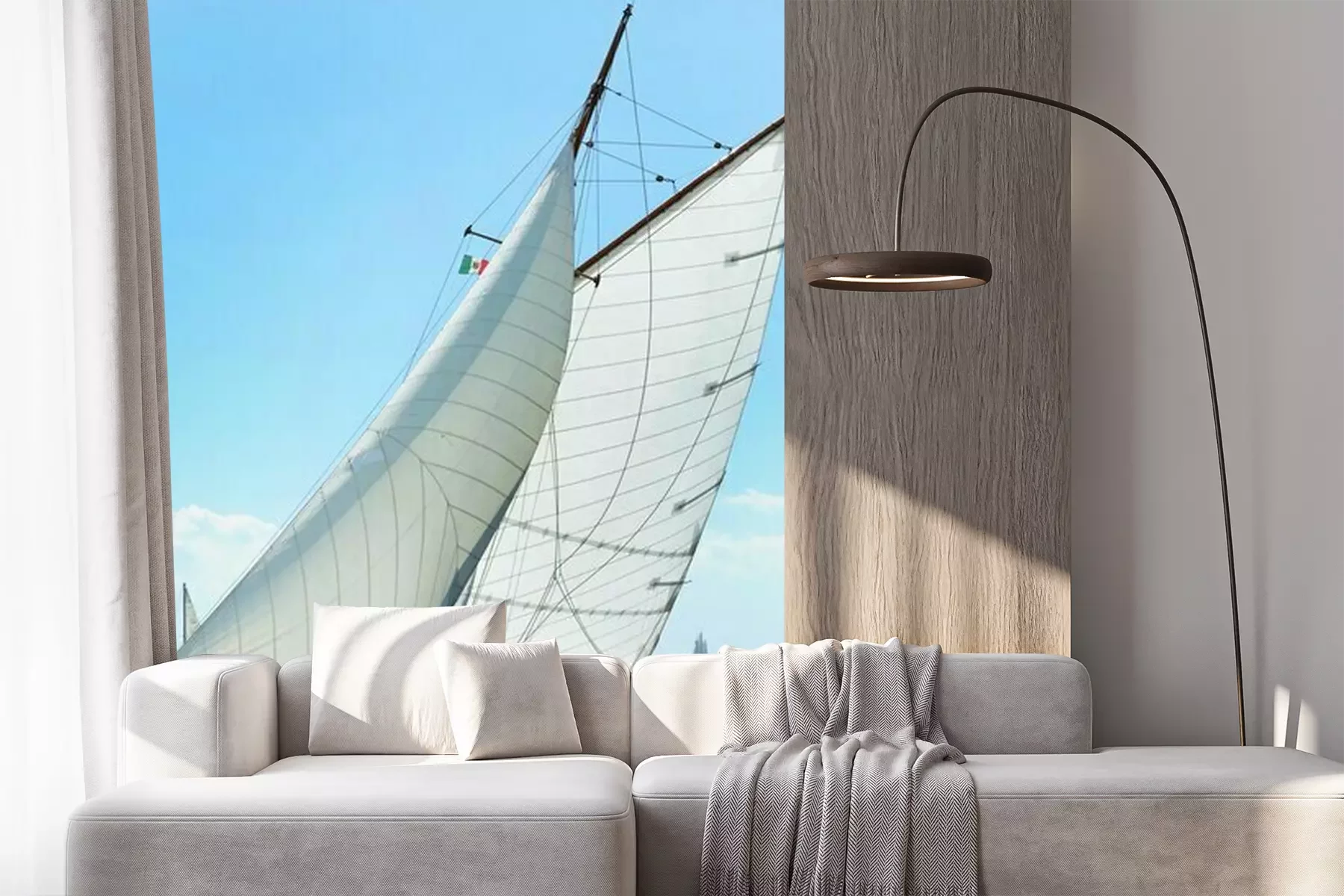 Een zeilboot die op het water manoeuvreert.Probleemloze bezorging verzorgd door vertrouwde vervoerders