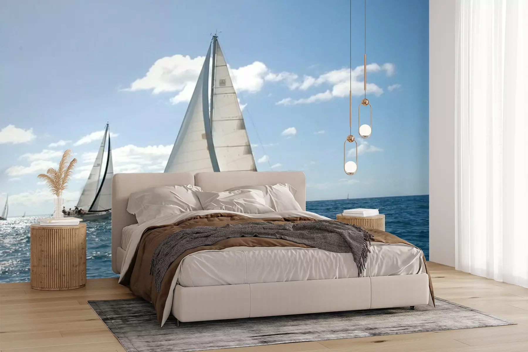 Het materiaal Premium+ is een gestructureerd vinyl op vlies met een gewicht van 255 g/m², dat kleine oneffenheden in de muur effectief camoufleert. De subtiele structuur van fijn zand geeft het oppervlak een exclusieve uitstraling, terwijl de halfmatte afwerking de diepte van de kleuren benadrukt. Het materiaal is dampdoorlatend, waardoor het ook in de keuken en badkamer kan worden gebruikt. De maximale breedte van één baan bedraagt 100 cm – bij grotere afmetingen wordt het fotobehang in meerdere gelijke banen verdeeld. De lijm wordt direct op de muur aangebracht en het behang wordt rand-aan-rand geplakt, wat zorgt voor een esthetisch resultaat zonder zichtbare naden. Het oppervlak kan gemakkelijk worden schoongemaakt door het voorzichtig af te nemen met een vochtige doek.