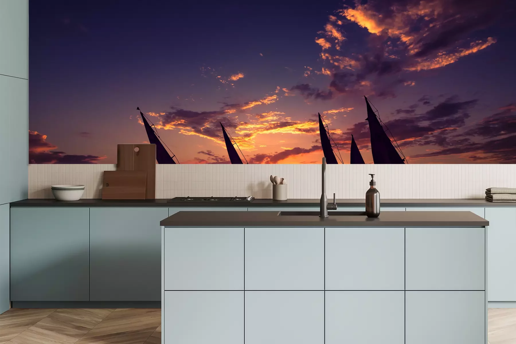 Zeilboten bij schemering