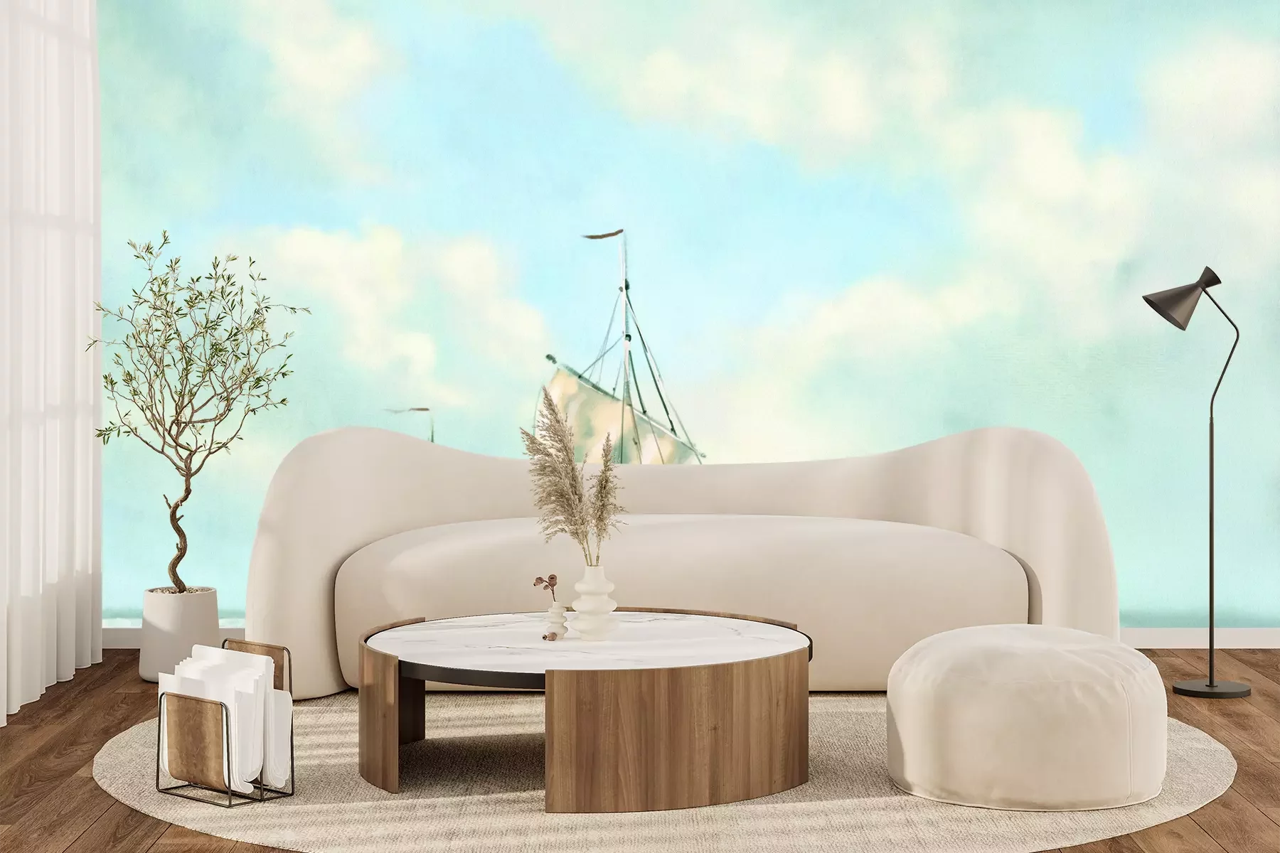 Het materiaal Premium+ is een gestructureerd vinyl op vlies met een gewicht van 255 g/m², dat kleine oneffenheden in de muur effectief camoufleert. De subtiele structuur van fijn zand geeft het oppervlak een exclusieve uitstraling, terwijl de halfmatte afwerking de diepte van de kleuren benadrukt. Het materiaal is dampdoorlatend, waardoor het ook in de keuken en badkamer kan worden gebruikt. De maximale breedte van één baan bedraagt 100 cm – bij grotere afmetingen wordt het fotobehang in meerdere gelijke banen verdeeld. De lijm wordt direct op de muur aangebracht en het behang wordt rand-aan-rand geplakt, wat zorgt voor een esthetisch resultaat zonder zichtbare naden. Het oppervlak kan gemakkelijk worden schoongemaakt door het voorzichtig af te nemen met een vochtige doek.