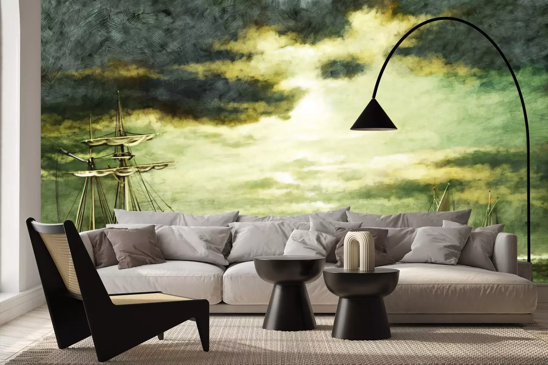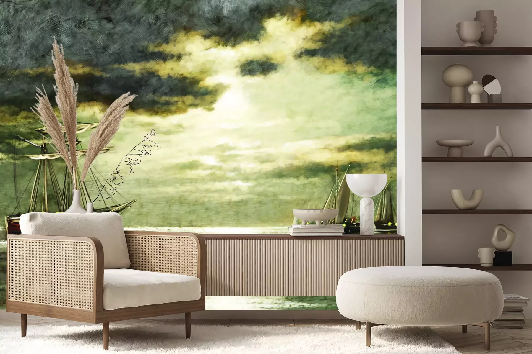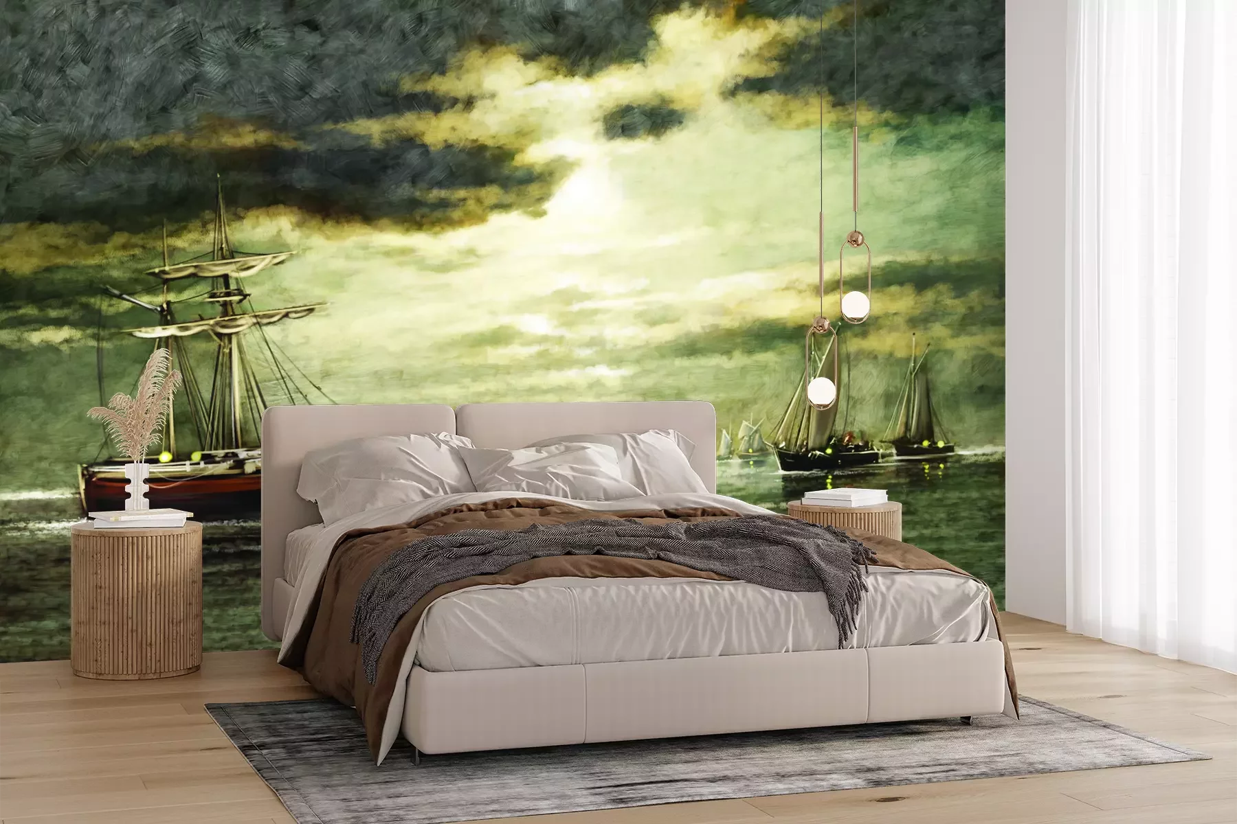 Het materiaal Premium+ is een gestructureerd vinyl op vlies met een gewicht van 255 g/m², dat kleine oneffenheden in de muur effectief camoufleert. De subtiele structuur van fijn zand geeft het oppervlak een exclusieve uitstraling, terwijl de halfmatte afwerking de diepte van de kleuren benadrukt. Het materiaal is dampdoorlatend, waardoor het ook in de keuken en badkamer kan worden gebruikt. De maximale breedte van één baan bedraagt 100 cm – bij grotere afmetingen wordt het fotobehang in meerdere gelijke banen verdeeld. De lijm wordt direct op de muur aangebracht en het behang wordt rand-aan-rand geplakt, wat zorgt voor een esthetisch resultaat zonder zichtbare naden. Het oppervlak kan gemakkelijk worden schoongemaakt door het voorzichtig af te nemen met een vochtige doek.
