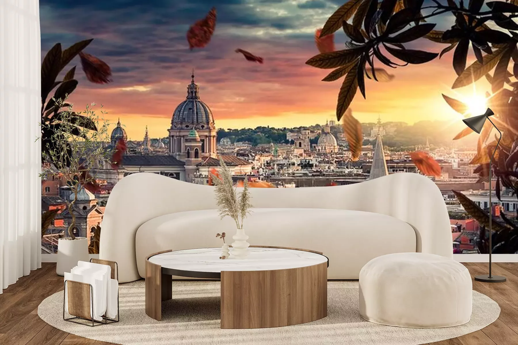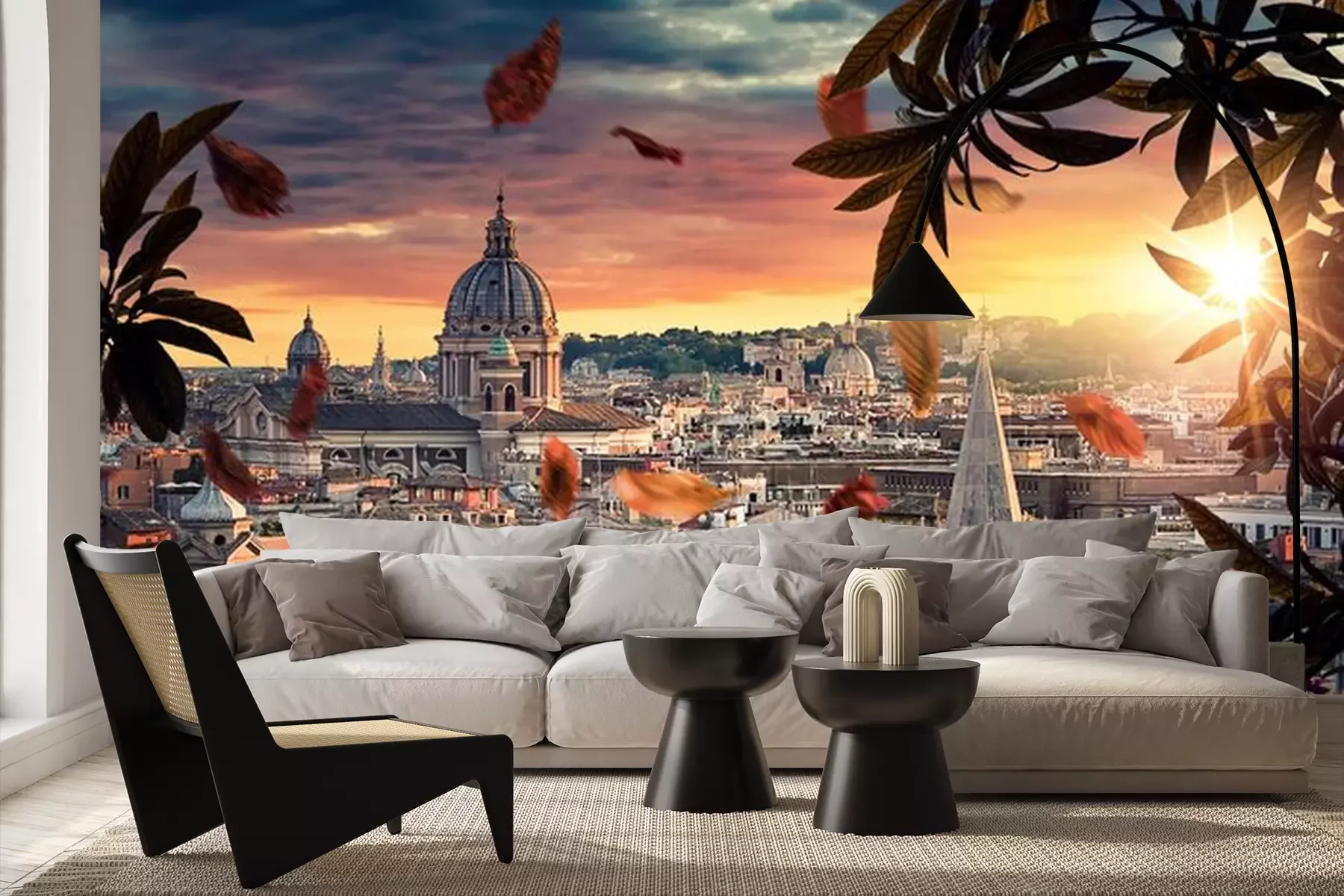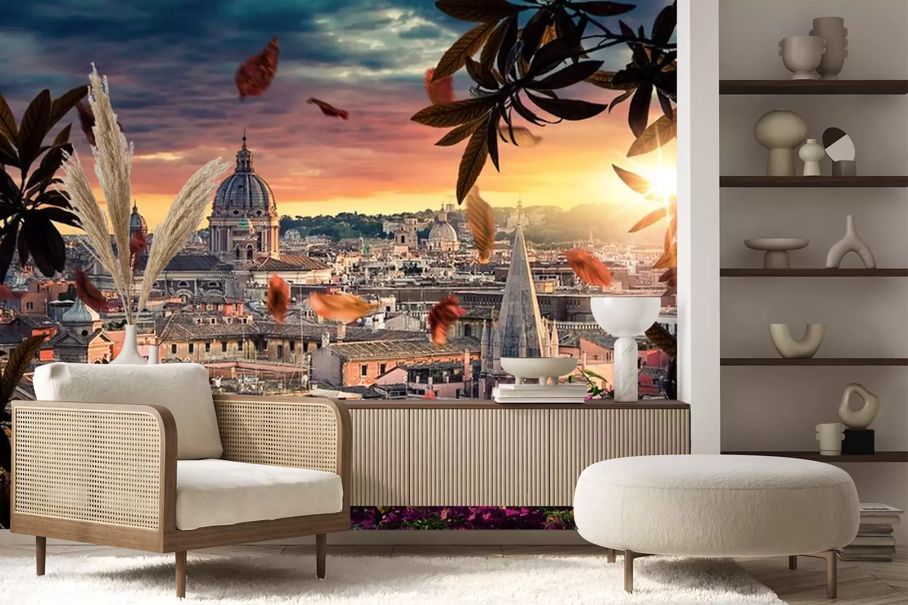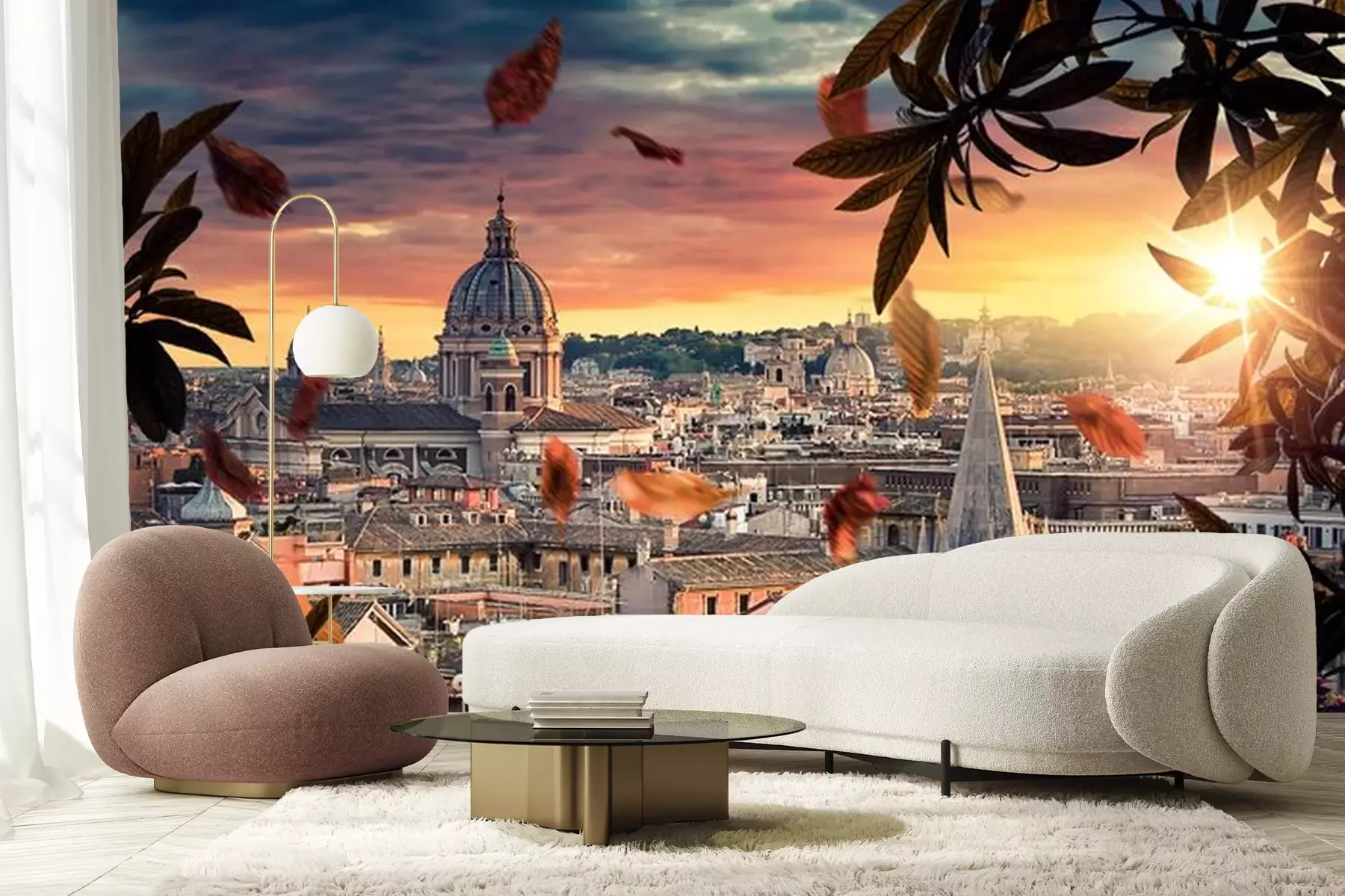 Fotobehang Zicht op Italiaanse architectuur in de stralen van de zonsondergang