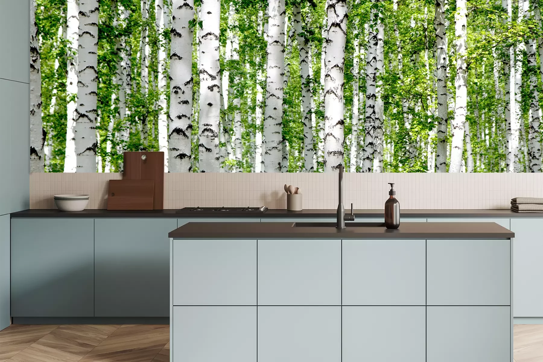 Het materiaal Premium is een glad vinyl op vlies, dat bestand is tegen uitrekken en vervorming. Het is dampdoorlatend – de muren kunnen vrij ademen – waardoor het geschikt is voor gebruik in de keuken en badkamer. Bij vervuiling kan het materiaal worden afgenomen met een vochtige doek. De maximale breedte van één baan bedraagt 95 of 105 cm, afhankelijk van de beschikbaarheid. Montage vindt plaats met de rand-aan-rand methode, wat een esthetisch resultaat zonder zichtbare naden oplevert. Omdat de lijm rechtstreeks op de muur wordt aangebracht, verloopt de installatie van het fotobehang snel en eenvoudig.