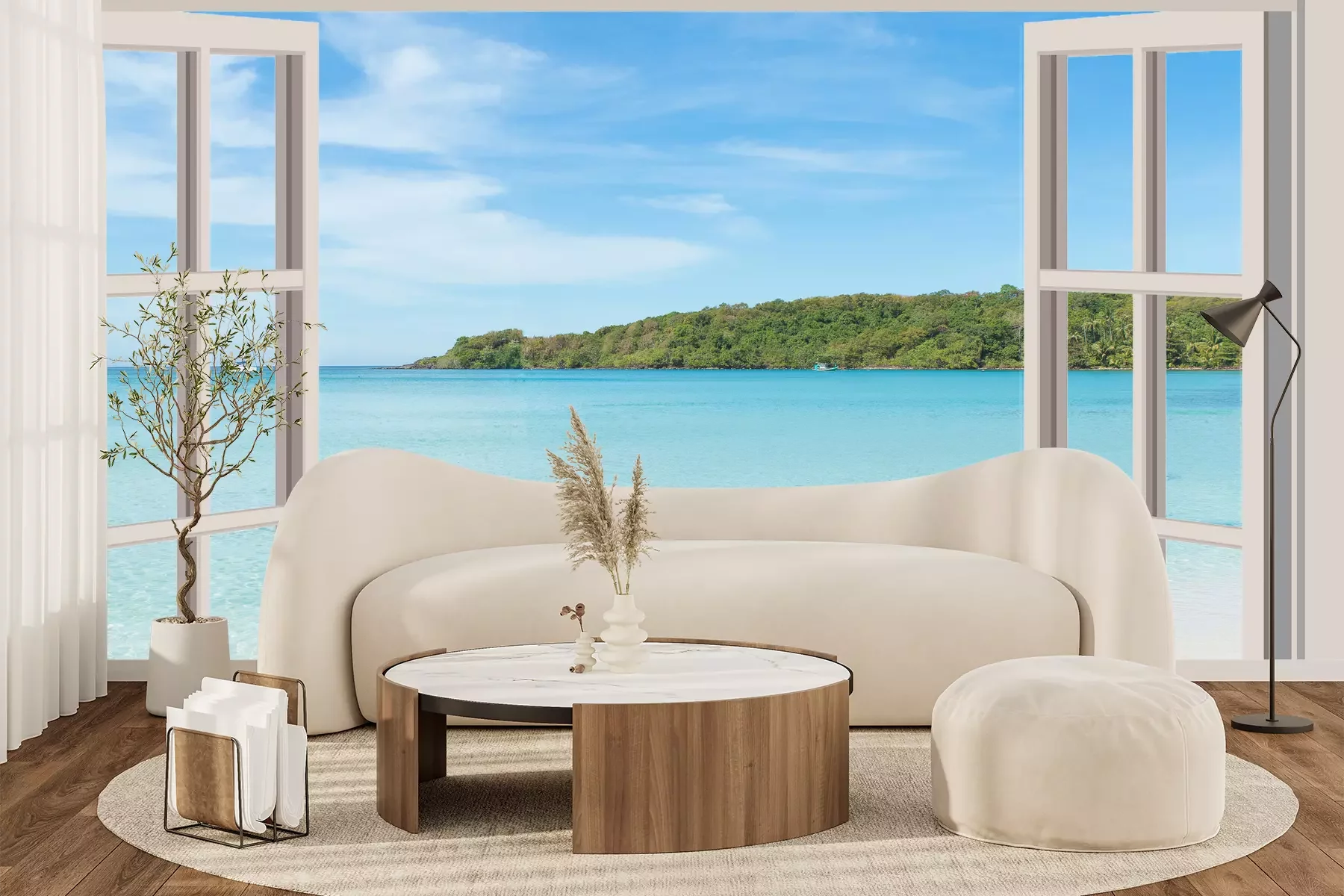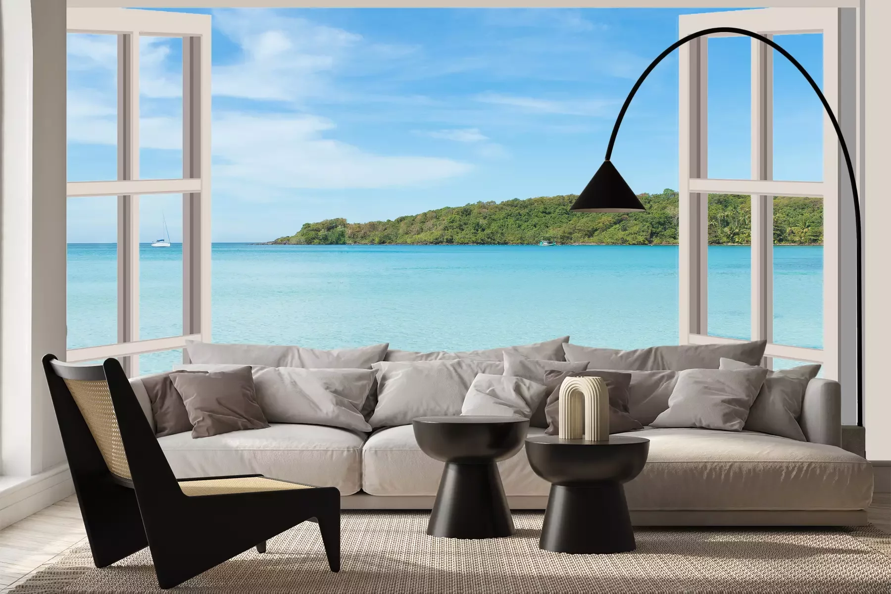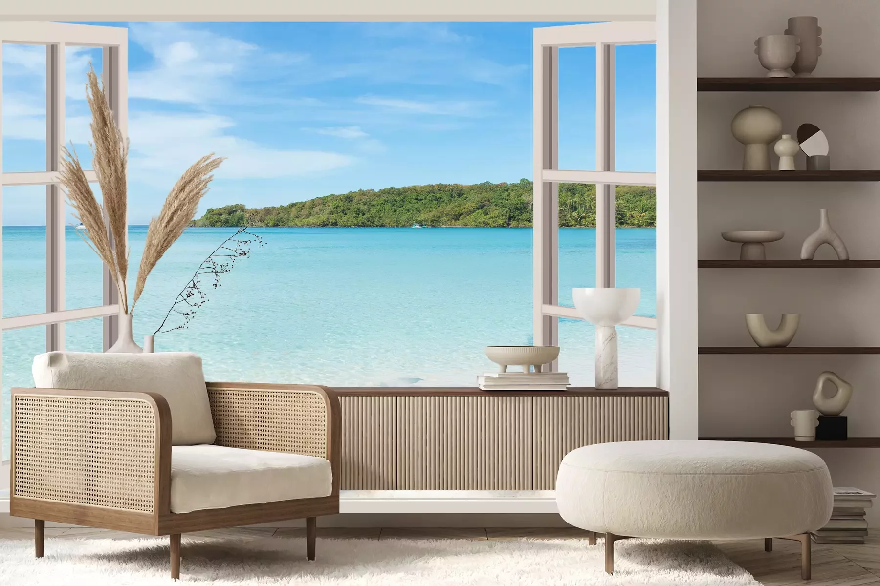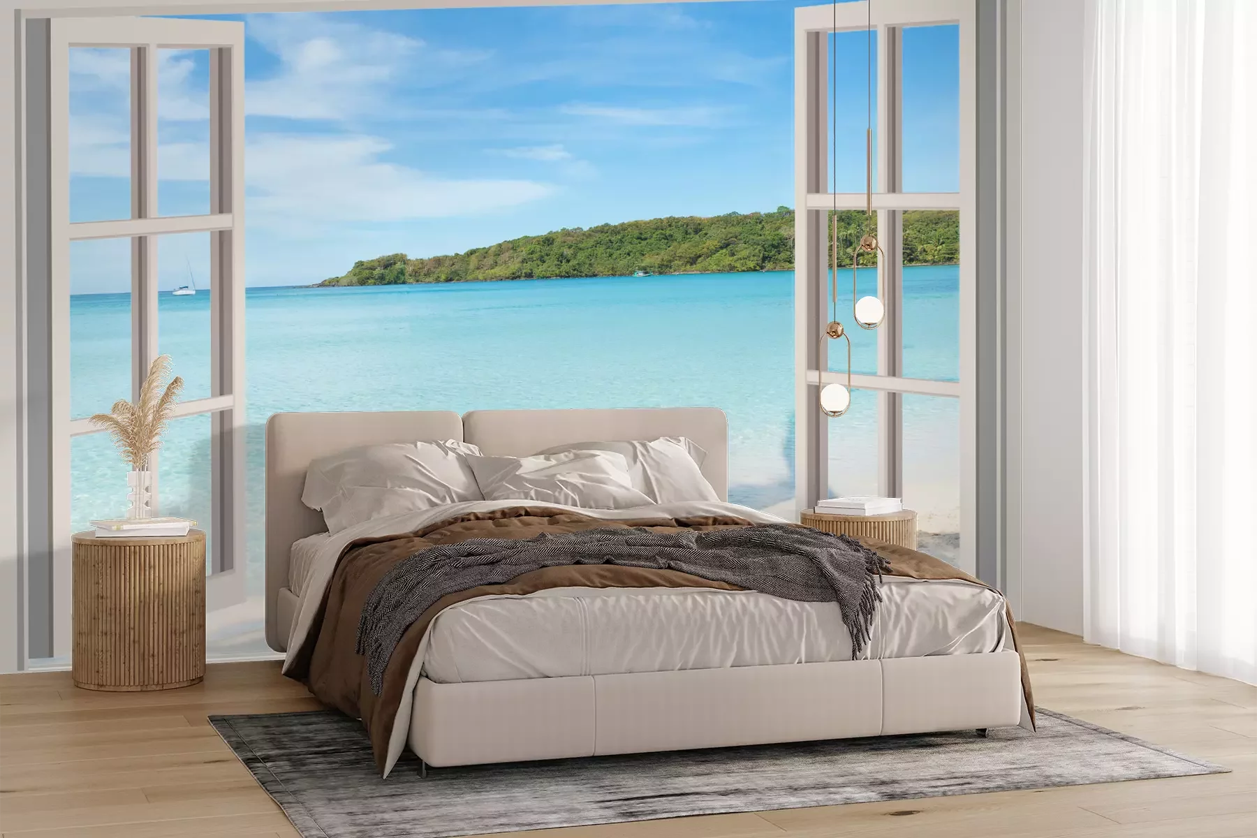 Het materiaal Premium+ is een gestructureerd vinyl op vlies met een gewicht van 255 g/m², dat kleine oneffenheden in de muur effectief camoufleert. De subtiele structuur van fijn zand geeft het oppervlak een exclusieve uitstraling, terwijl de halfmatte afwerking de diepte van de kleuren benadrukt. Het materiaal is dampdoorlatend, waardoor het ook in de keuken en badkamer kan worden gebruikt. De maximale breedte van één baan bedraagt 100 cm – bij grotere afmetingen wordt het fotobehang in meerdere gelijke banen verdeeld. De lijm wordt direct op de muur aangebracht en het behang wordt rand-aan-rand geplakt, wat zorgt voor een esthetisch resultaat zonder zichtbare naden. Het oppervlak kan gemakkelijk worden schoongemaakt door het voorzichtig af te nemen met een vochtige doek.