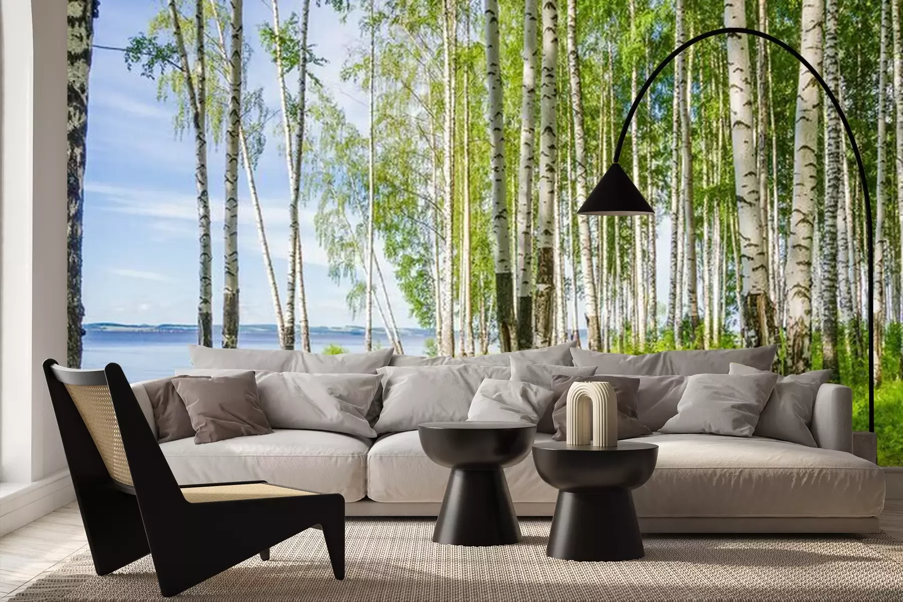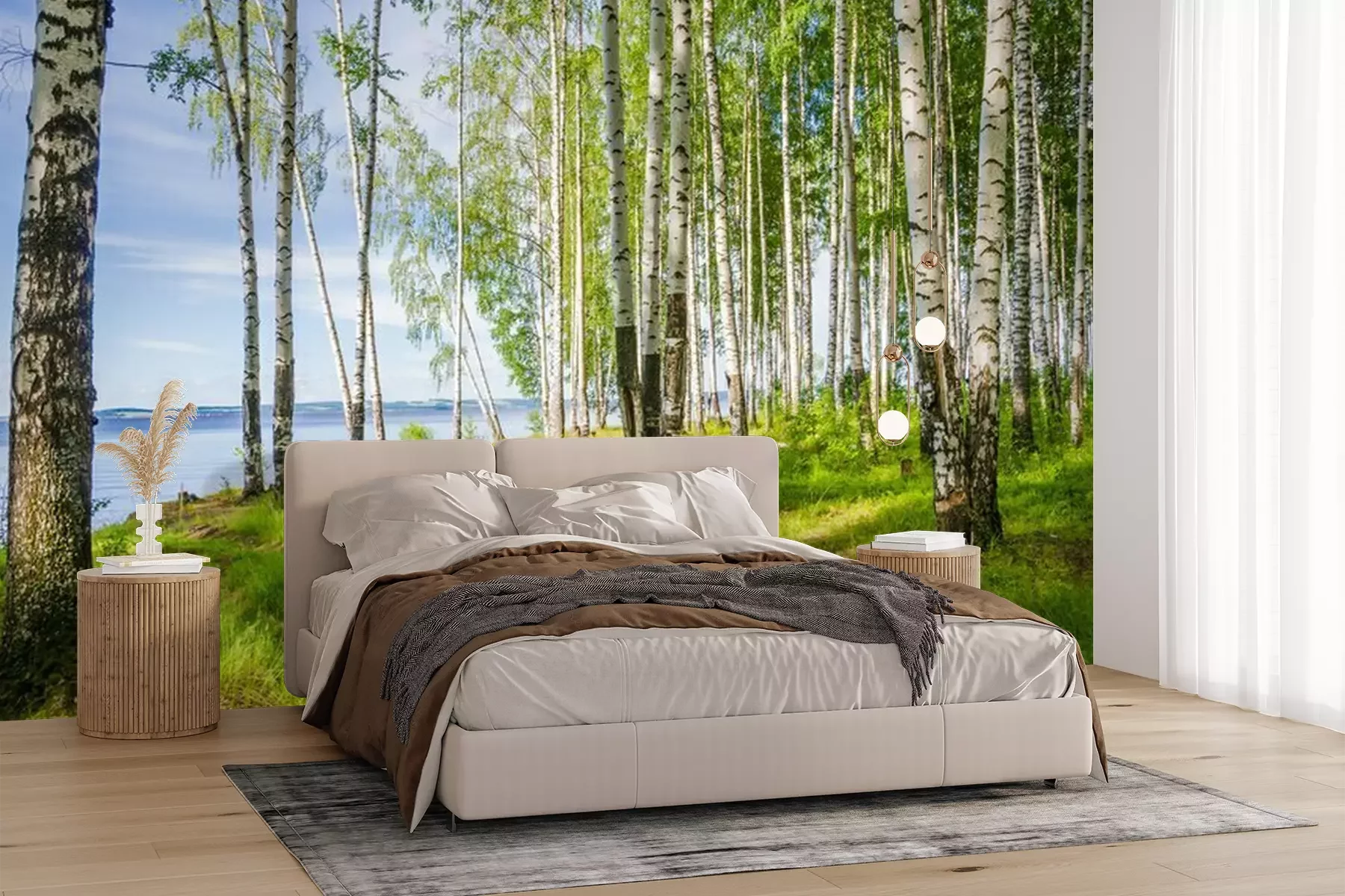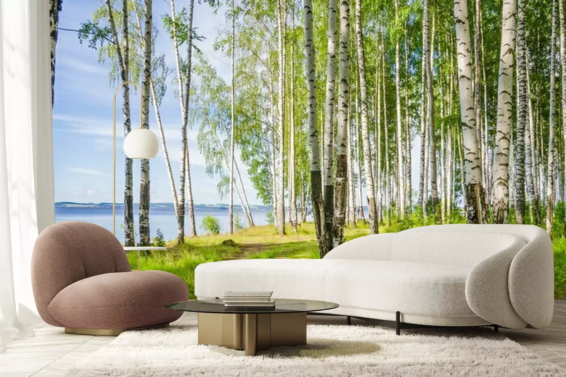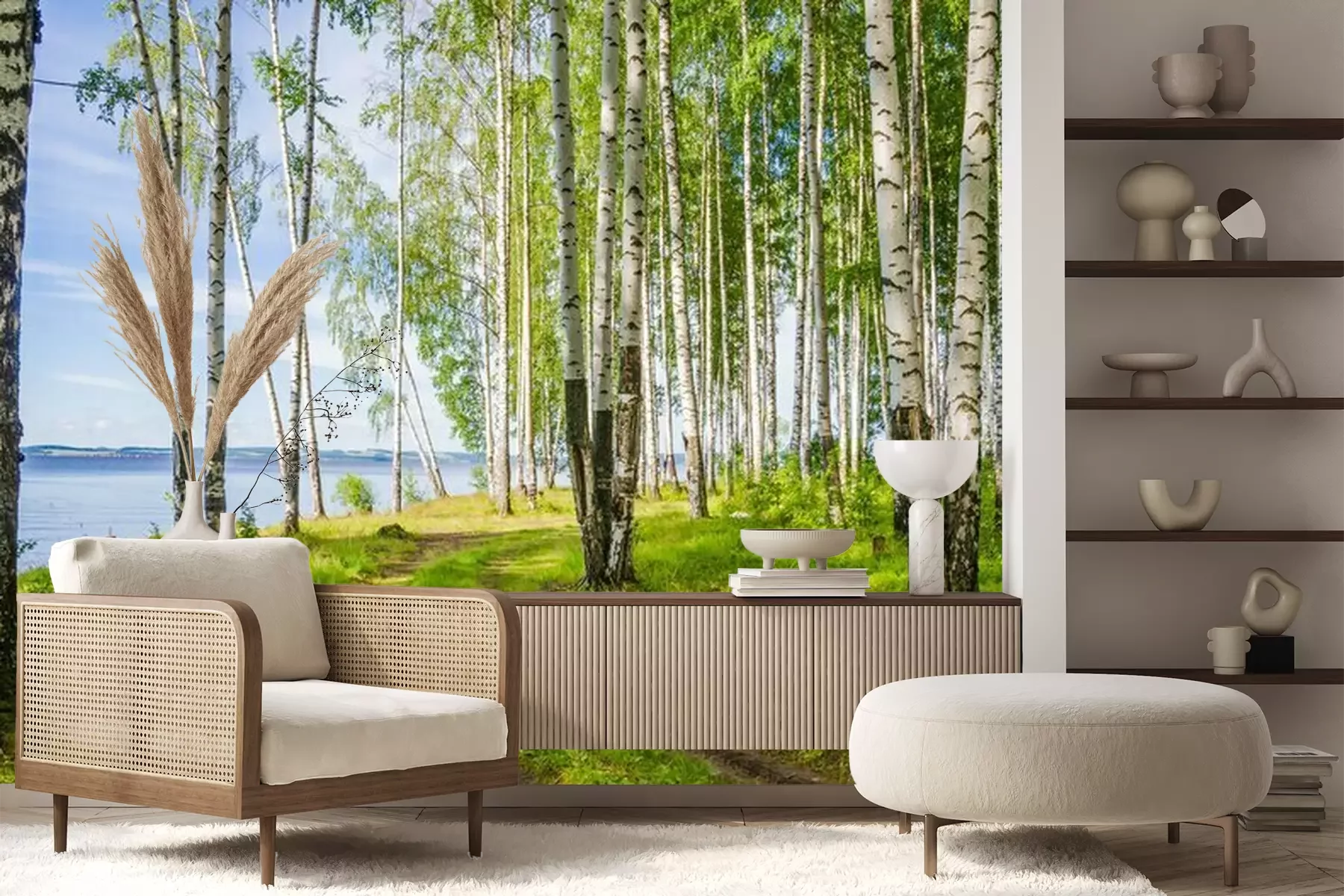 Landschap met een berkenbosFotobehang