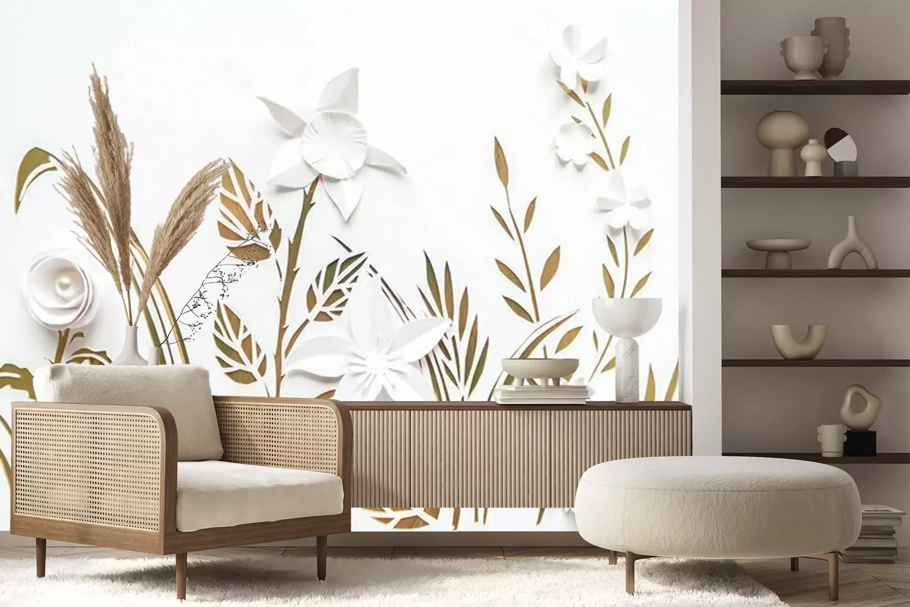 Het materiaal Premium+ is een gestructureerd vinyl op vlies met een gewicht van 255 g/m², dat kleine oneffenheden in de muur effectief camoufleert. De subtiele structuur van fijn zand geeft het oppervlak een exclusieve uitstraling, terwijl de halfmatte afwerking de diepte van de kleuren benadrukt. Het materiaal is dampdoorlatend, waardoor het ook in de keuken en badkamer kan worden gebruikt. De maximale breedte van één baan bedraagt 100 cm – bij grotere afmetingen wordt het fotobehang in meerdere gelijke banen verdeeld. De lijm wordt direct op de muur aangebracht en het behang wordt rand-aan-rand geplakt, wat zorgt voor een esthetisch resultaat zonder zichtbare naden. Het oppervlak kan gemakkelijk worden schoongemaakt door het voorzichtig af te nemen met een vochtige doek.