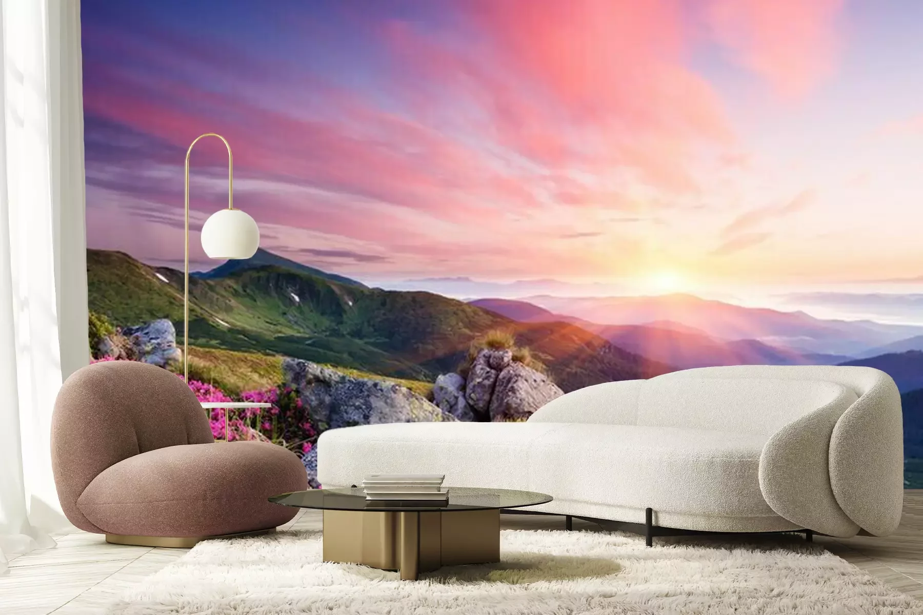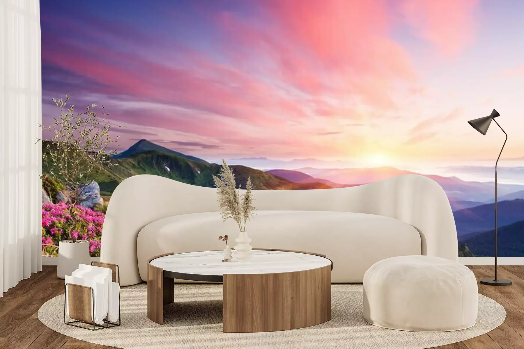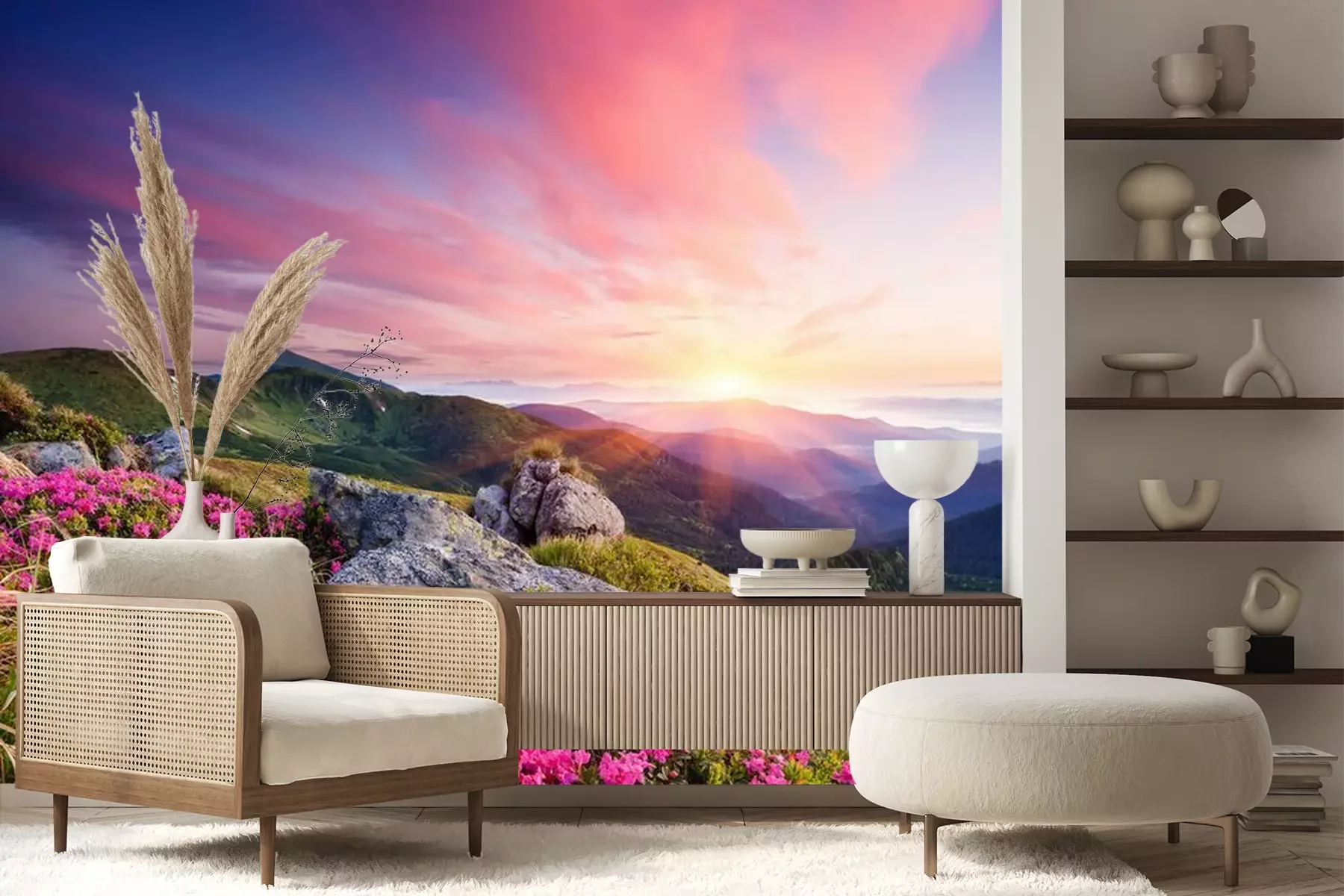 Het materiaal Premium+ is een gestructureerd vinyl op vlies met een gewicht van 255 g/m², dat kleine oneffenheden in de muur effectief camoufleert. De subtiele structuur van fijn zand geeft het oppervlak een exclusieve uitstraling, terwijl de halfmatte afwerking de diepte van de kleuren benadrukt. Het materiaal is dampdoorlatend, waardoor het ook in de keuken en badkamer kan worden gebruikt. De maximale breedte van één baan bedraagt 100 cm – bij grotere afmetingen wordt het fotobehang in meerdere gelijke banen verdeeld. De lijm wordt direct op de muur aangebracht en het behang wordt rand-aan-rand geplakt, wat zorgt voor een esthetisch resultaat zonder zichtbare naden. Het oppervlak kan gemakkelijk worden schoongemaakt door het voorzichtig af te nemen met een vochtige doek.
