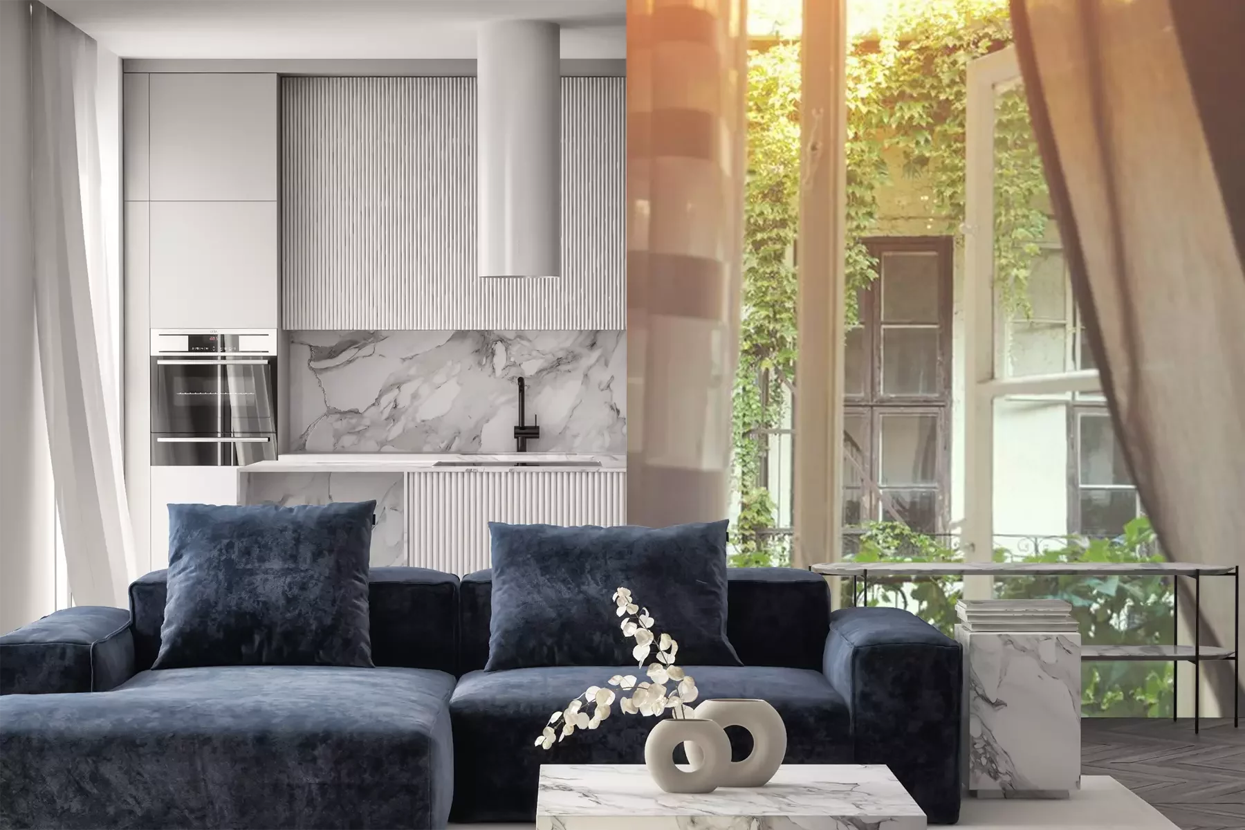 Het materiaal Premium is een glad vinyl op vlies, dat bestand is tegen uitrekken en vervorming. Het is dampdoorlatend – de muren kunnen vrij ademen – waardoor het geschikt is voor gebruik in de keuken en badkamer. Bij vervuiling kan het materiaal worden afgenomen met een vochtige doek. De maximale breedte van één baan bedraagt 95 of 105 cm, afhankelijk van de beschikbaarheid. Montage vindt plaats met de rand-aan-rand methode, wat een esthetisch resultaat zonder zichtbare naden oplevert. Omdat de lijm rechtstreeks op de muur wordt aangebracht, verloopt de installatie van het fotobehang snel en eenvoudig.
