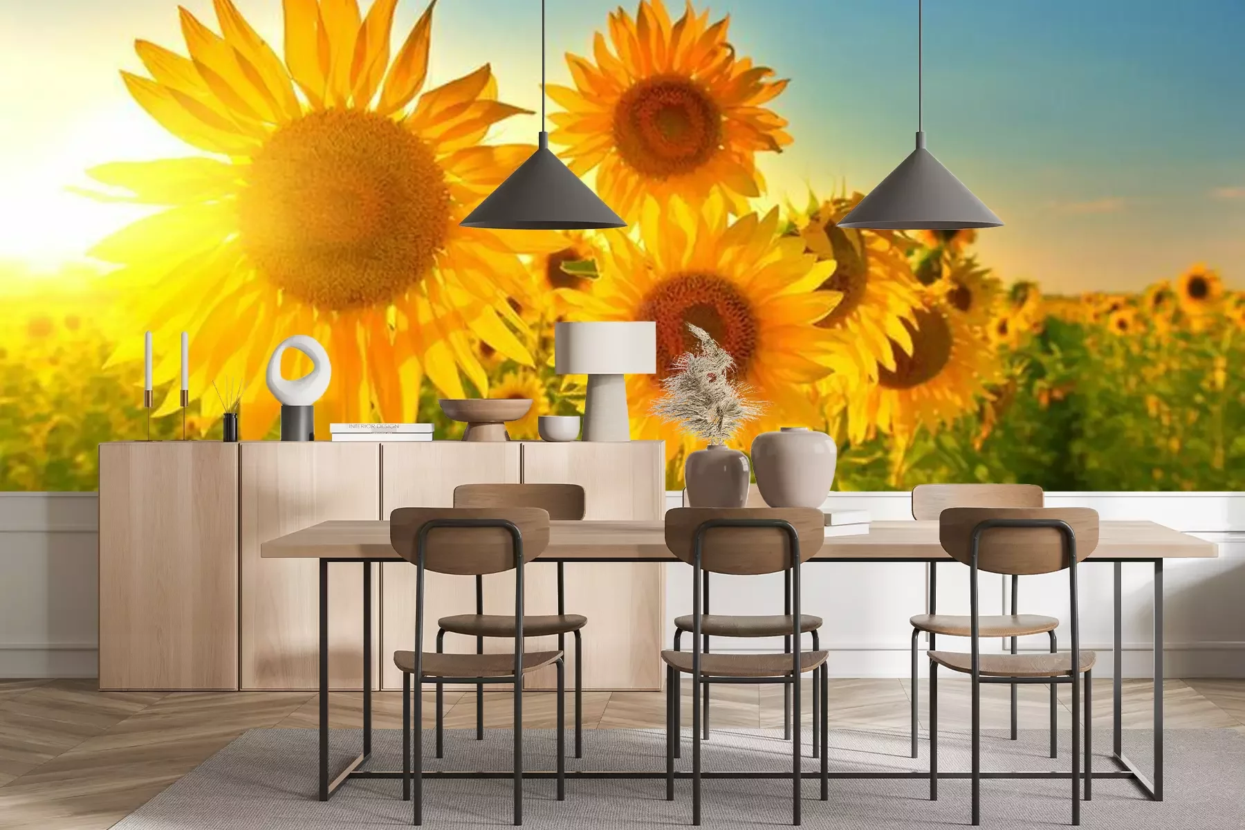 Het materiaal Premium+ is een gestructureerd vinyl op vlies met een gewicht van 255 g/m², dat kleine oneffenheden in de muur effectief camoufleert. De subtiele structuur van fijn zand geeft het oppervlak een exclusieve uitstraling, terwijl de halfmatte afwerking de diepte van de kleuren benadrukt. Het materiaal is dampdoorlatend, waardoor het ook in de keuken en badkamer kan worden gebruikt. De maximale breedte van één baan bedraagt 100 cm – bij grotere afmetingen wordt het fotobehang in meerdere gelijke banen verdeeld. De lijm wordt direct op de muur aangebracht en het behang wordt rand-aan-rand geplakt, wat zorgt voor een esthetisch resultaat zonder zichtbare naden. Het oppervlak kan gemakkelijk worden schoongemaakt door het voorzichtig af te nemen met een vochtige doek.