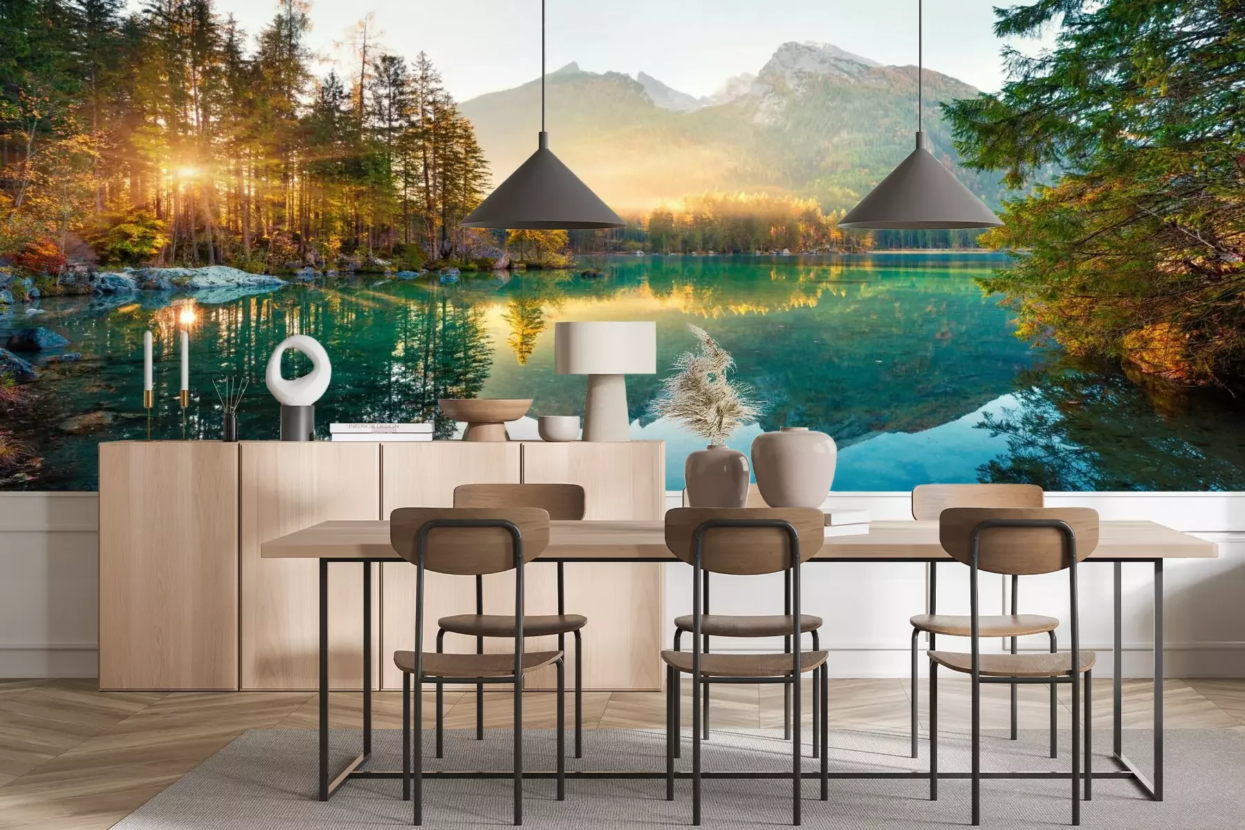 Het materiaal Premium+ is een gestructureerd vinyl op vlies met een gewicht van 255 g/m², dat kleine oneffenheden in de muur effectief camoufleert. De subtiele structuur van fijn zand geeft het oppervlak een exclusieve uitstraling, terwijl de halfmatte afwerking de diepte van de kleuren benadrukt. Het materiaal is dampdoorlatend, waardoor het ook in de keuken en badkamer kan worden gebruikt. De maximale breedte van één baan bedraagt 100 cm – bij grotere afmetingen wordt het fotobehang in meerdere gelijke banen verdeeld. De lijm wordt direct op de muur aangebracht en het behang wordt rand-aan-rand geplakt, wat zorgt voor een esthetisch resultaat zonder zichtbare naden. Het oppervlak kan gemakkelijk worden schoongemaakt door het voorzichtig af te nemen met een vochtige doek.