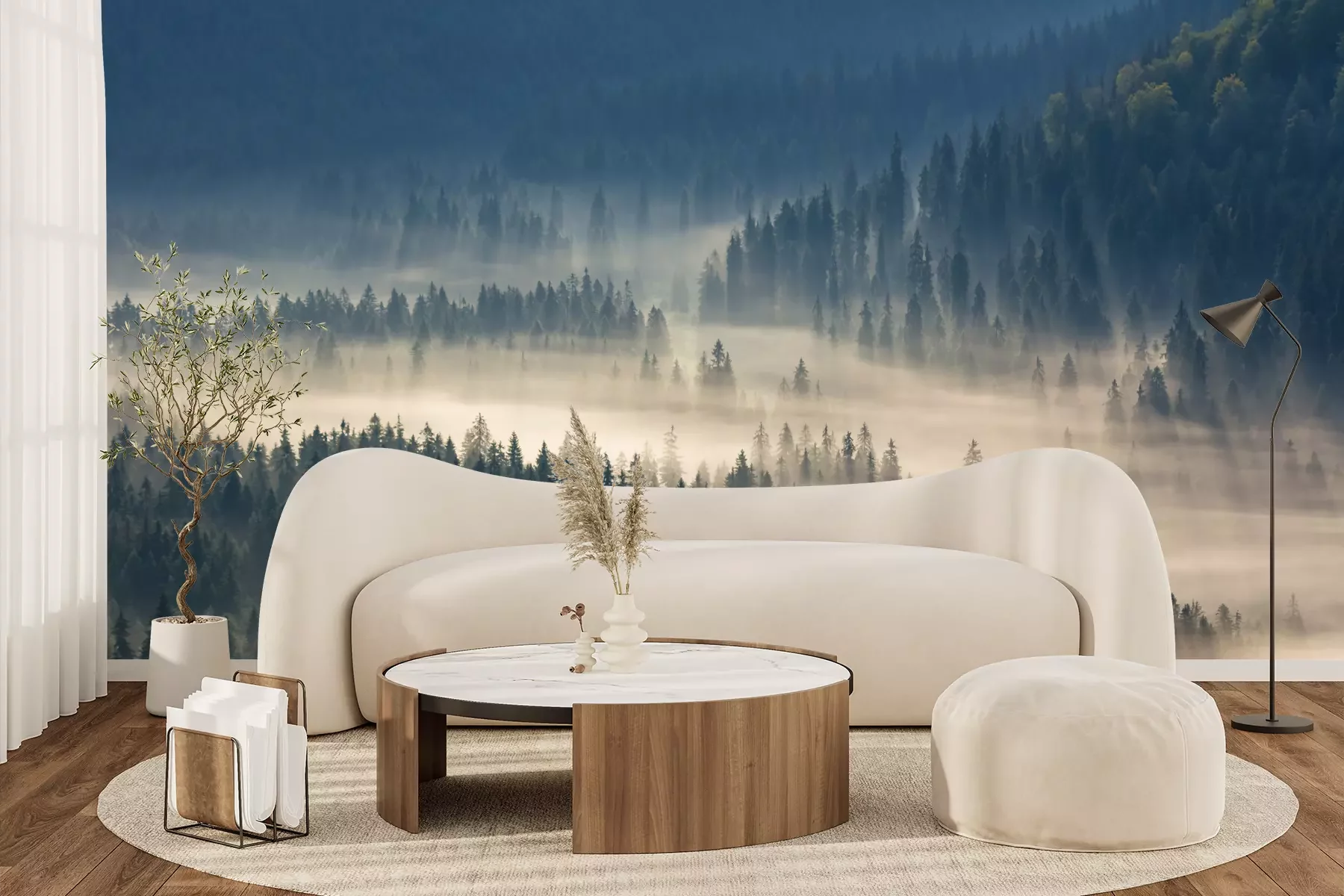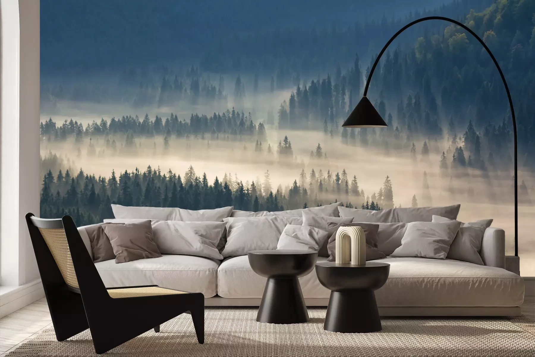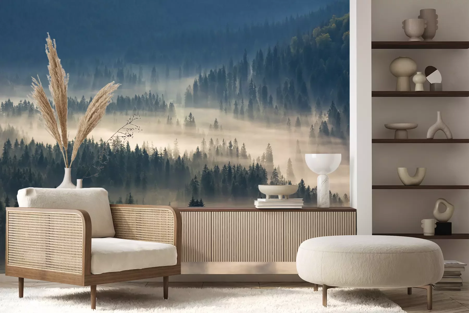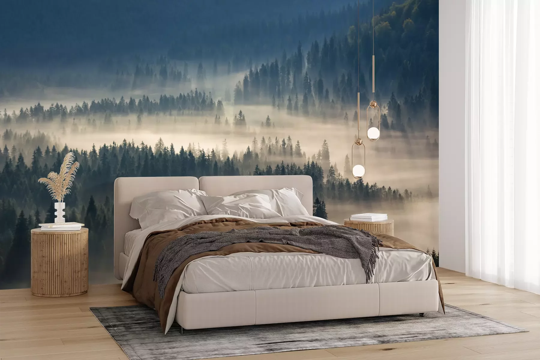 Het materiaal Premium+ is een gestructureerd vinyl op vlies met een gewicht van 255 g/m², dat kleine oneffenheden in de muur effectief camoufleert. De subtiele structuur van fijn zand geeft het oppervlak een exclusieve uitstraling, terwijl de halfmatte afwerking de diepte van de kleuren benadrukt. Het materiaal is dampdoorlatend, waardoor het ook in de keuken en badkamer kan worden gebruikt. De maximale breedte van één baan bedraagt 100 cm – bij grotere afmetingen wordt het fotobehang in meerdere gelijke banen verdeeld. De lijm wordt direct op de muur aangebracht en het behang wordt rand-aan-rand geplakt, wat zorgt voor een esthetisch resultaat zonder zichtbare naden. Het oppervlak kan gemakkelijk worden schoongemaakt door het voorzichtig af te nemen met een vochtige doek.