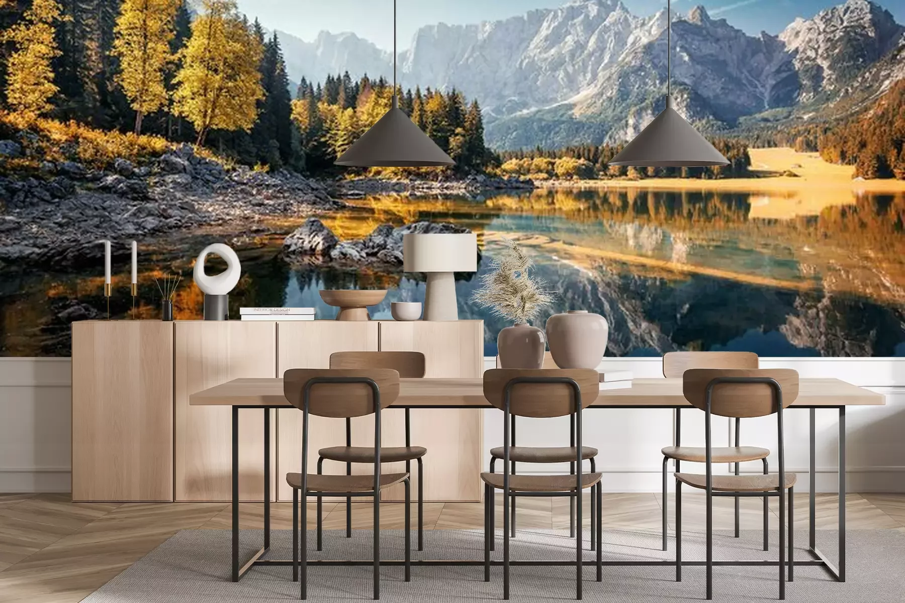 Het materiaal Premium+ is een gestructureerd vinyl op vlies met een gewicht van 255 g/m², dat kleine oneffenheden in de muur effectief camoufleert. De subtiele structuur van fijn zand geeft het oppervlak een exclusieve uitstraling, terwijl de halfmatte afwerking de diepte van de kleuren benadrukt. Het materiaal is dampdoorlatend, waardoor het ook in de keuken en badkamer kan worden gebruikt. De maximale breedte van één baan bedraagt 100 cm – bij grotere afmetingen wordt het fotobehang in meerdere gelijke banen verdeeld. De lijm wordt direct op de muur aangebracht en het behang wordt rand-aan-rand geplakt, wat zorgt voor een esthetisch resultaat zonder zichtbare naden. Het oppervlak kan gemakkelijk worden schoongemaakt door het voorzichtig af te nemen met een vochtige doek.