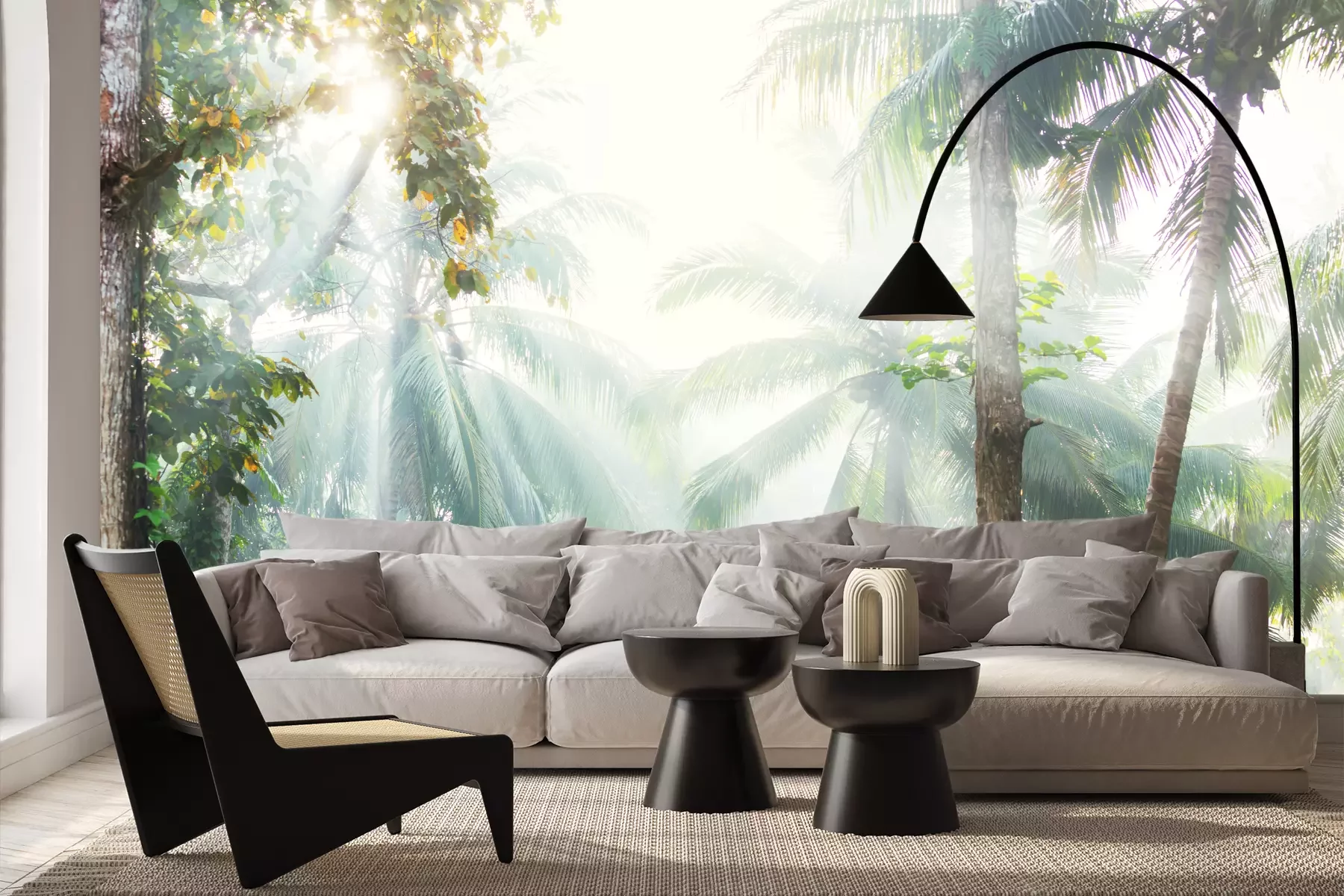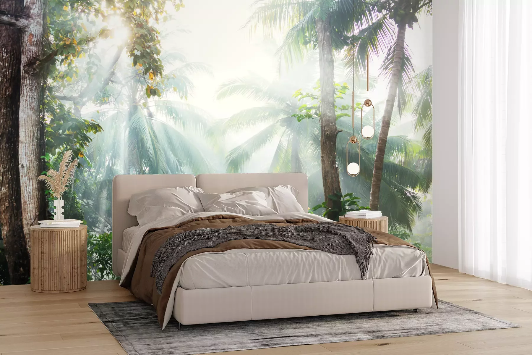 Het materiaal Premium+ is een gestructureerd vinyl op vlies met een gewicht van 255 g/m², dat kleine oneffenheden in de muur effectief camoufleert. De subtiele structuur van fijn zand geeft het oppervlak een exclusieve uitstraling, terwijl de halfmatte afwerking de diepte van de kleuren benadrukt. Het materiaal is dampdoorlatend, waardoor het ook in de keuken en badkamer kan worden gebruikt. De maximale breedte van één baan bedraagt 100 cm – bij grotere afmetingen wordt het fotobehang in meerdere gelijke banen verdeeld. De lijm wordt direct op de muur aangebracht en het behang wordt rand-aan-rand geplakt, wat zorgt voor een esthetisch resultaat zonder zichtbare naden. Het oppervlak kan gemakkelijk worden schoongemaakt door het voorzichtig af te nemen met een vochtige doek.