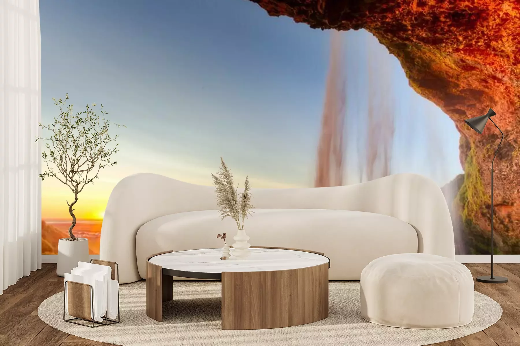 3D waterval en zonsondergangProbleemloze bezorging verzorgd door vertrouwde vervoerders