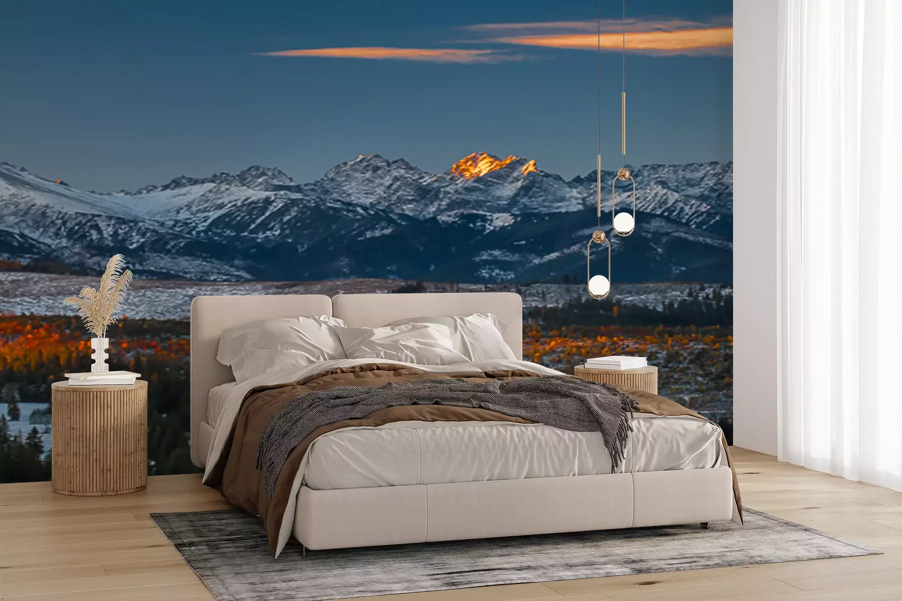 Het materiaal Premium+ is een gestructureerd vinyl op vlies met een gewicht van 255 g/m², dat kleine oneffenheden in de muur effectief camoufleert. De subtiele structuur van fijn zand geeft het oppervlak een exclusieve uitstraling, terwijl de halfmatte afwerking de diepte van de kleuren benadrukt. Het materiaal is dampdoorlatend, waardoor het ook in de keuken en badkamer kan worden gebruikt. De maximale breedte van één baan bedraagt 100 cm – bij grotere afmetingen wordt het fotobehang in meerdere gelijke banen verdeeld. De lijm wordt direct op de muur aangebracht en het behang wordt rand-aan-rand geplakt, wat zorgt voor een esthetisch resultaat zonder zichtbare naden. Het oppervlak kan gemakkelijk worden schoongemaakt door het voorzichtig af te nemen met een vochtige doek.
