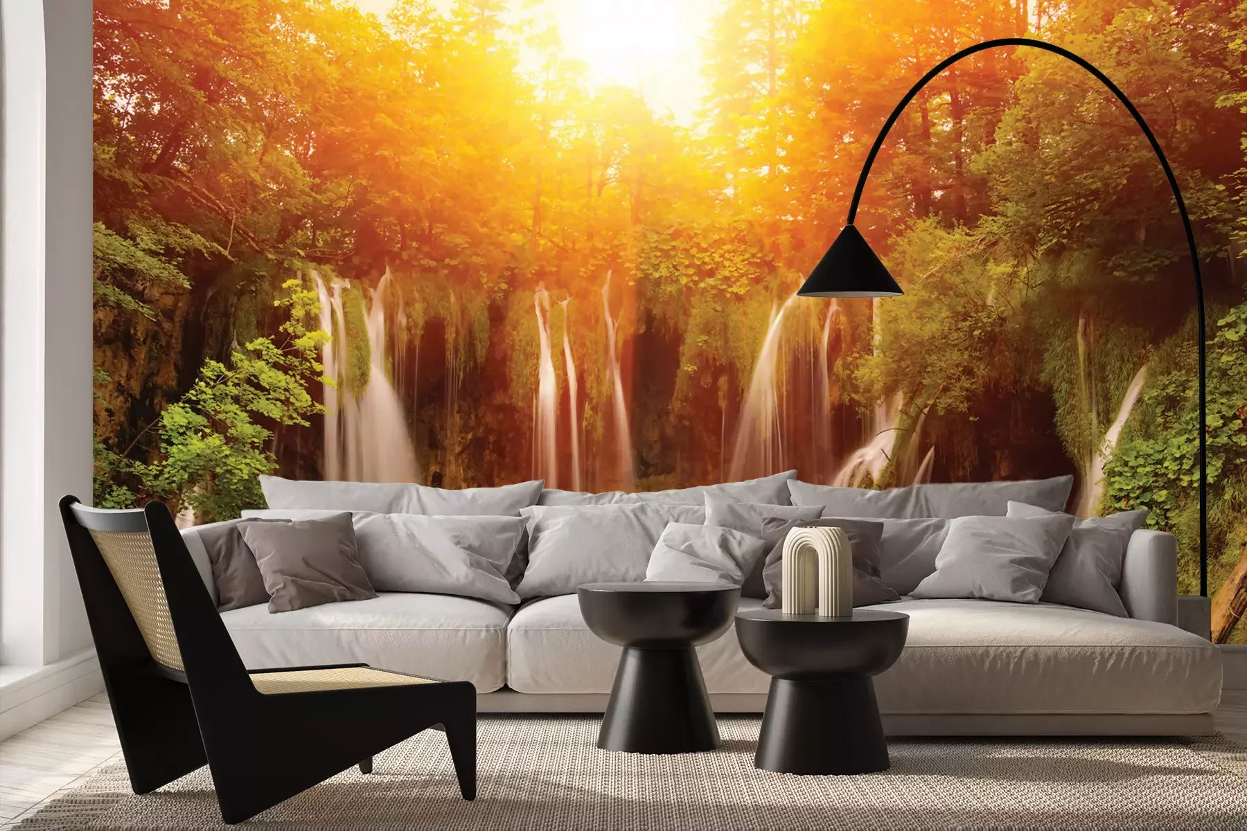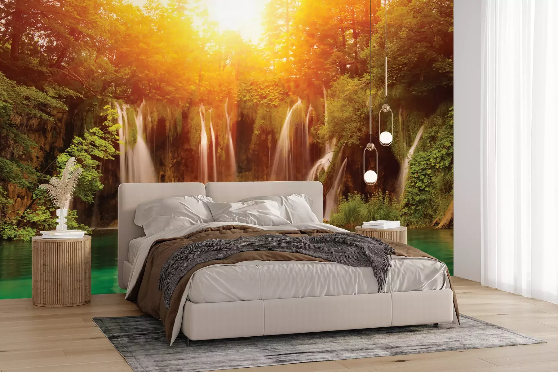Het materiaal Premium+ is een gestructureerd vinyl op vlies met een gewicht van 255 g/m², dat kleine oneffenheden in de muur effectief camoufleert. De subtiele structuur van fijn zand geeft het oppervlak een exclusieve uitstraling, terwijl de halfmatte afwerking de diepte van de kleuren benadrukt. Het materiaal is dampdoorlatend, waardoor het ook in de keuken en badkamer kan worden gebruikt. De maximale breedte van één baan bedraagt 100 cm – bij grotere afmetingen wordt het fotobehang in meerdere gelijke banen verdeeld. De lijm wordt direct op de muur aangebracht en het behang wordt rand-aan-rand geplakt, wat zorgt voor een esthetisch resultaat zonder zichtbare naden. Het oppervlak kan gemakkelijk worden schoongemaakt door het voorzichtig af te nemen met een vochtige doek.