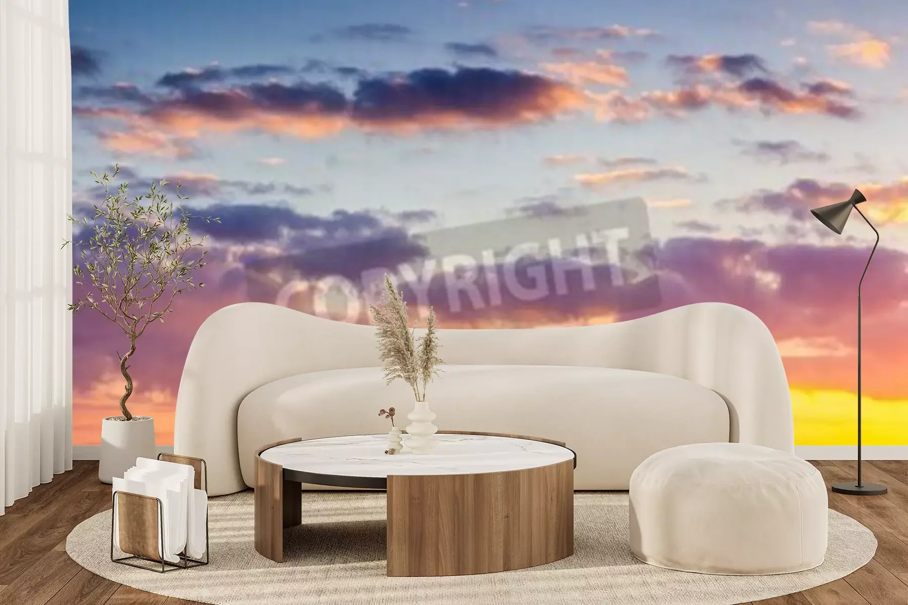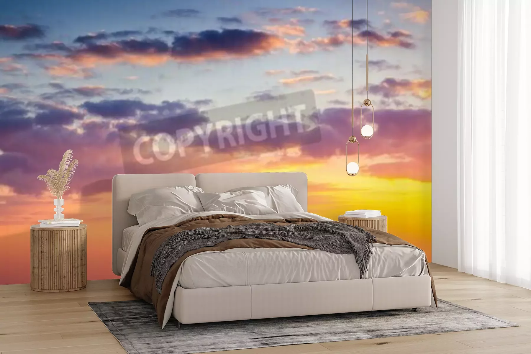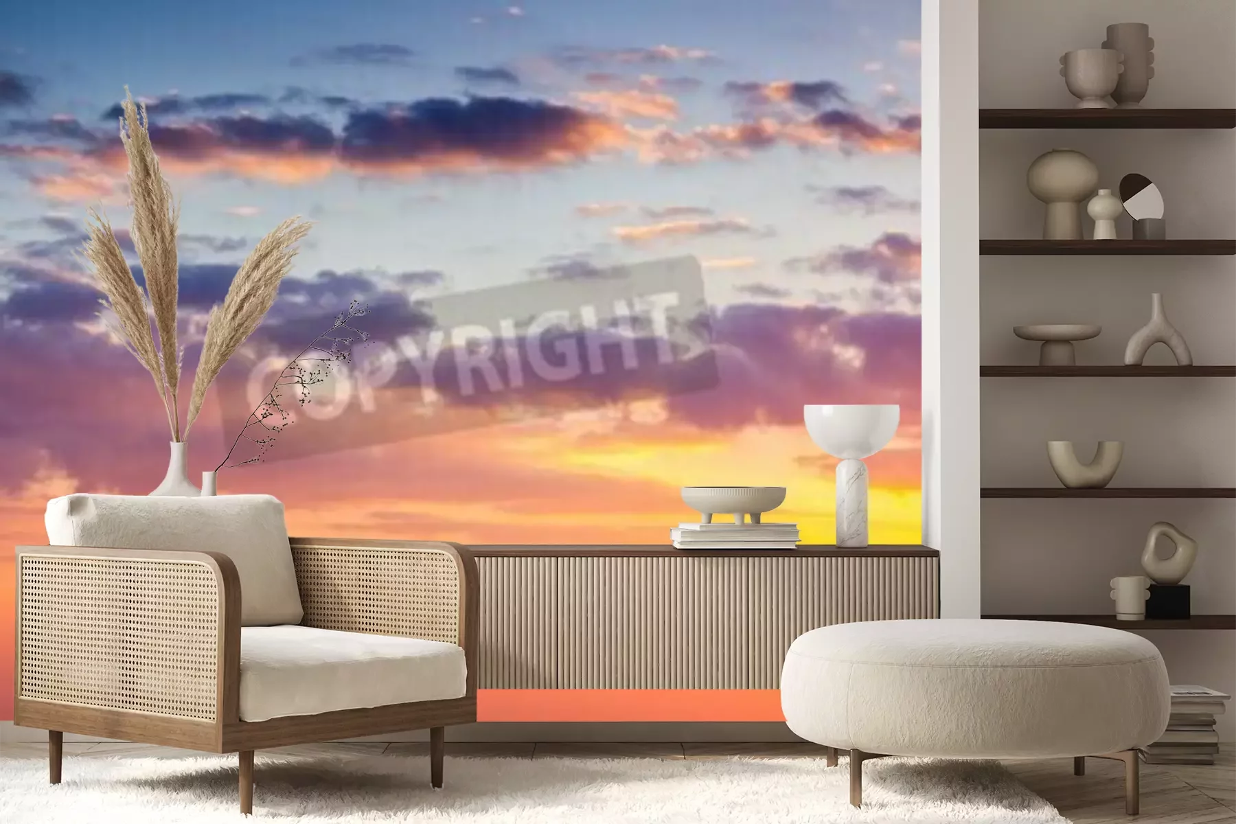 Fotobehang Zonsondergang in warme tinten