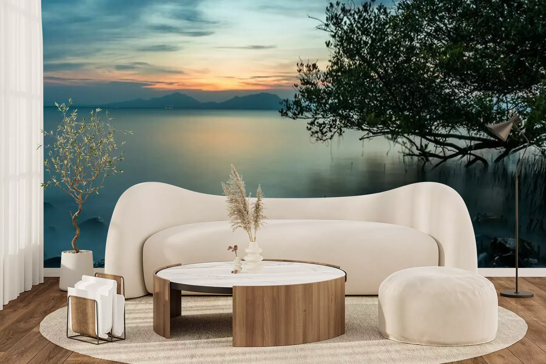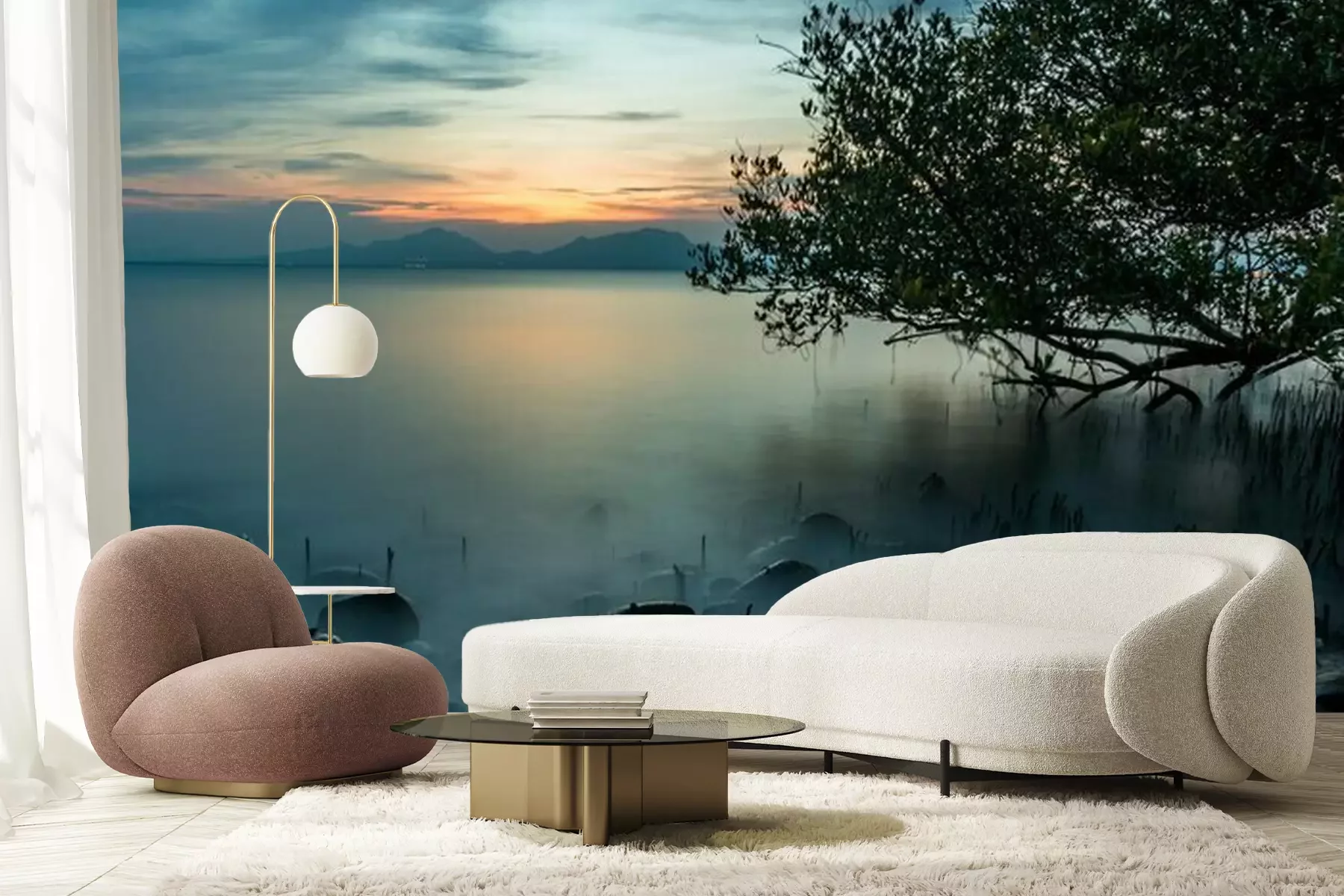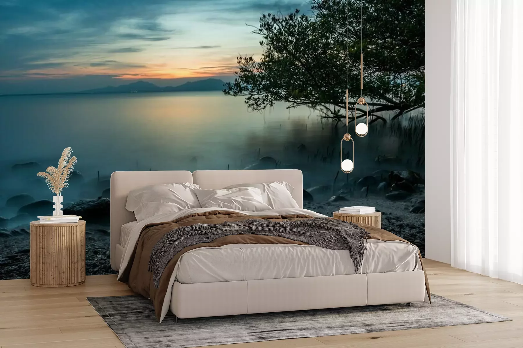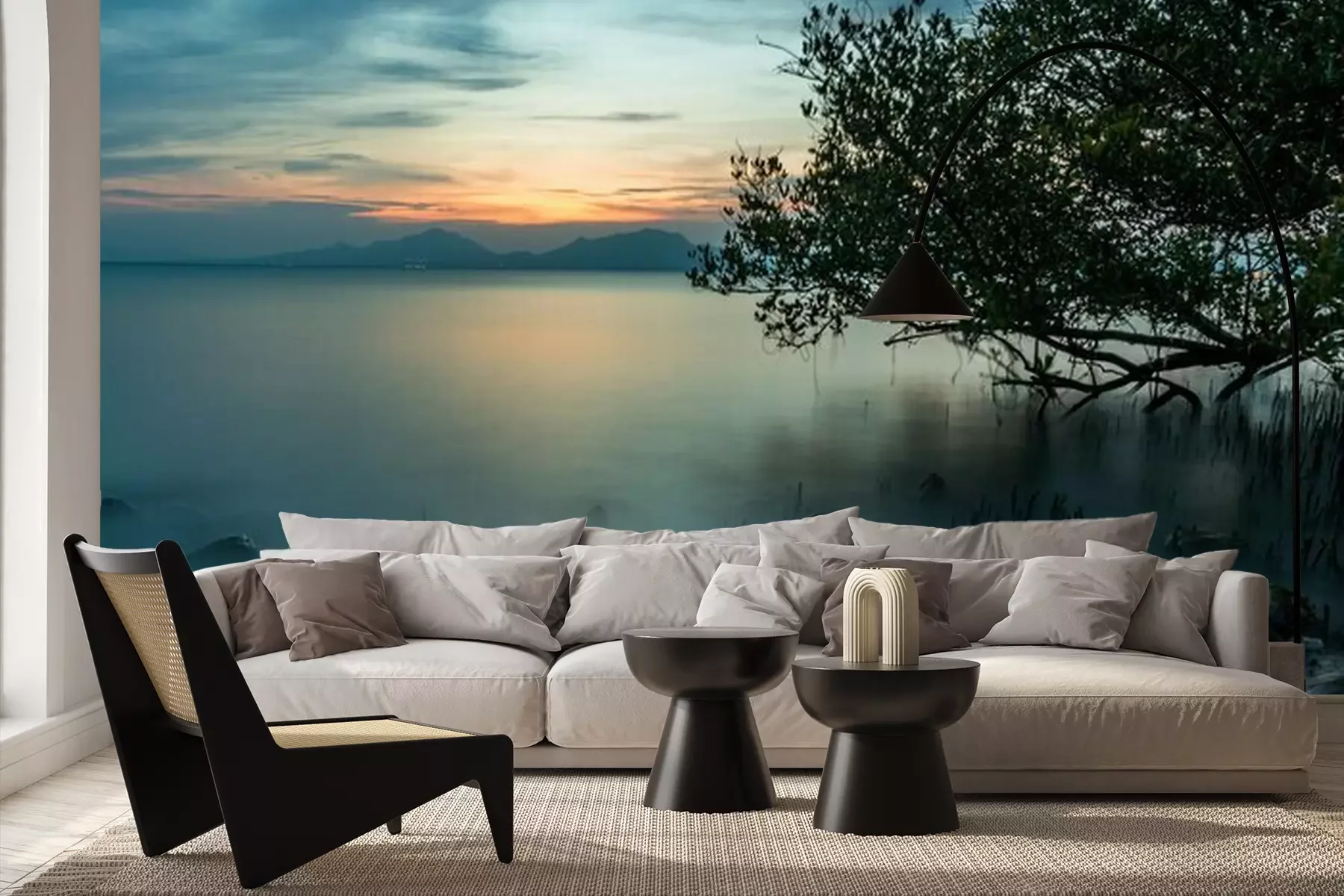 Fotobehang Zonsondergang uitzicht over de berg van mangrove