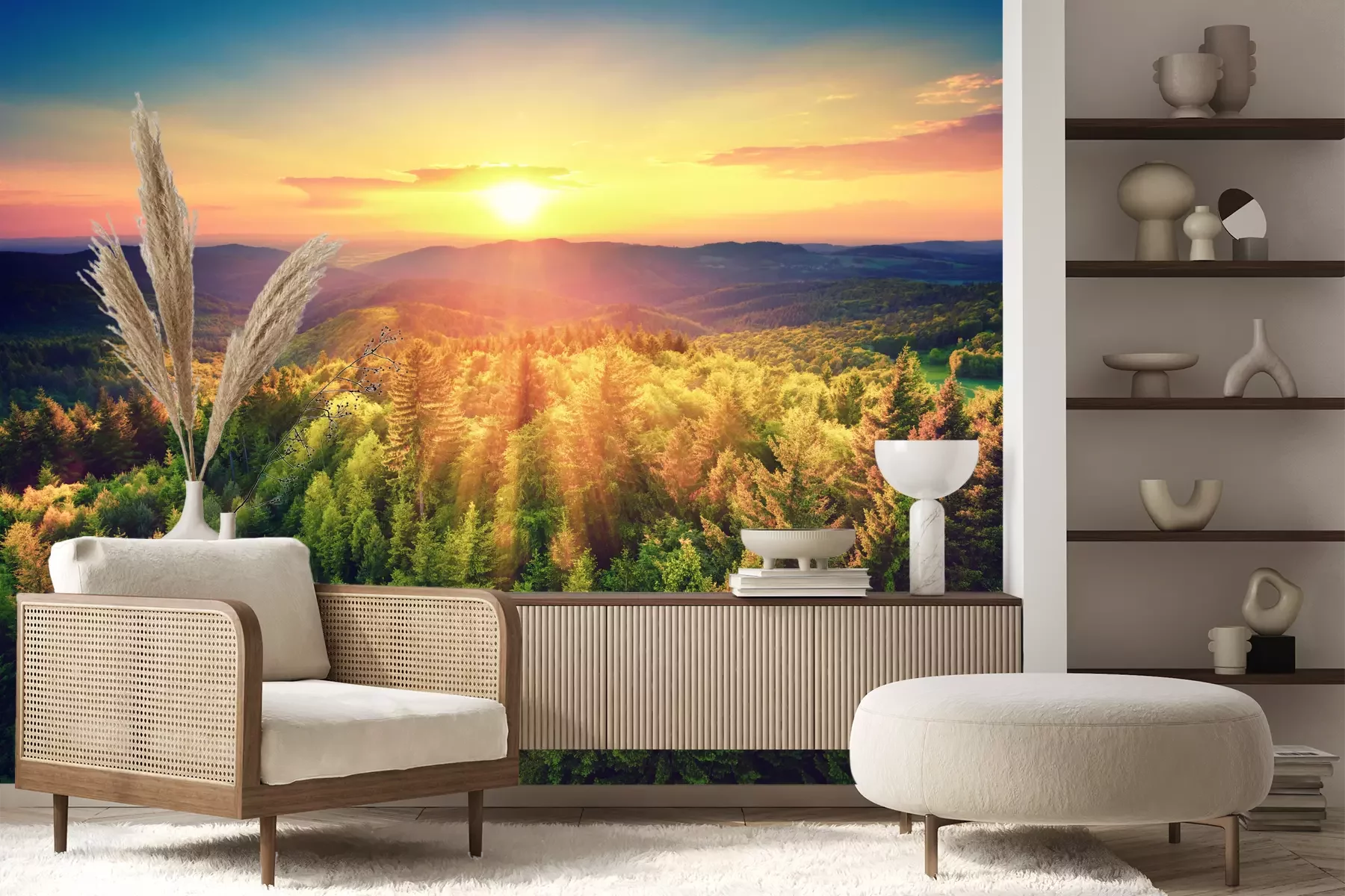 Het materiaal Premium+ is een gestructureerd vinyl op vlies met een gewicht van 255 g/m², dat kleine oneffenheden in de muur effectief camoufleert. De subtiele structuur van fijn zand geeft het oppervlak een exclusieve uitstraling, terwijl de halfmatte afwerking de diepte van de kleuren benadrukt. Het materiaal is dampdoorlatend, waardoor het ook in de keuken en badkamer kan worden gebruikt. De maximale breedte van één baan bedraagt 100 cm – bij grotere afmetingen wordt het fotobehang in meerdere gelijke banen verdeeld. De lijm wordt direct op de muur aangebracht en het behang wordt rand-aan-rand geplakt, wat zorgt voor een esthetisch resultaat zonder zichtbare naden. Het oppervlak kan gemakkelijk worden schoongemaakt door het voorzichtig af te nemen met een vochtige doek.