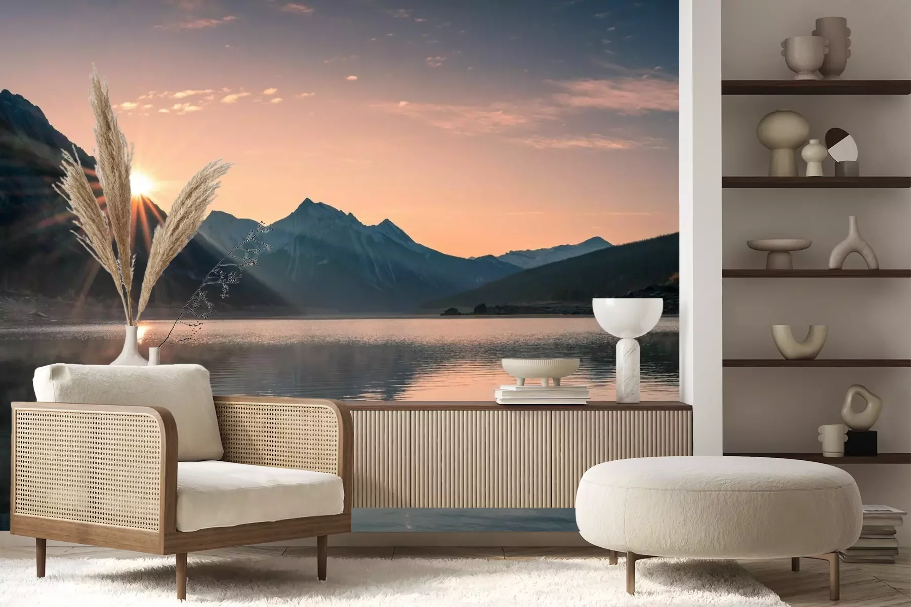 Het materiaal Premium+ is een gestructureerd vinyl op vlies met een gewicht van 255 g/m², dat kleine oneffenheden in de muur effectief camoufleert. De subtiele structuur van fijn zand geeft het oppervlak een exclusieve uitstraling, terwijl de halfmatte afwerking de diepte van de kleuren benadrukt. Het materiaal is dampdoorlatend, waardoor het ook in de keuken en badkamer kan worden gebruikt. De maximale breedte van één baan bedraagt 100 cm – bij grotere afmetingen wordt het fotobehang in meerdere gelijke banen verdeeld. De lijm wordt direct op de muur aangebracht en het behang wordt rand-aan-rand geplakt, wat zorgt voor een esthetisch resultaat zonder zichtbare naden. Het oppervlak kan gemakkelijk worden schoongemaakt door het voorzichtig af te nemen met een vochtige doek.