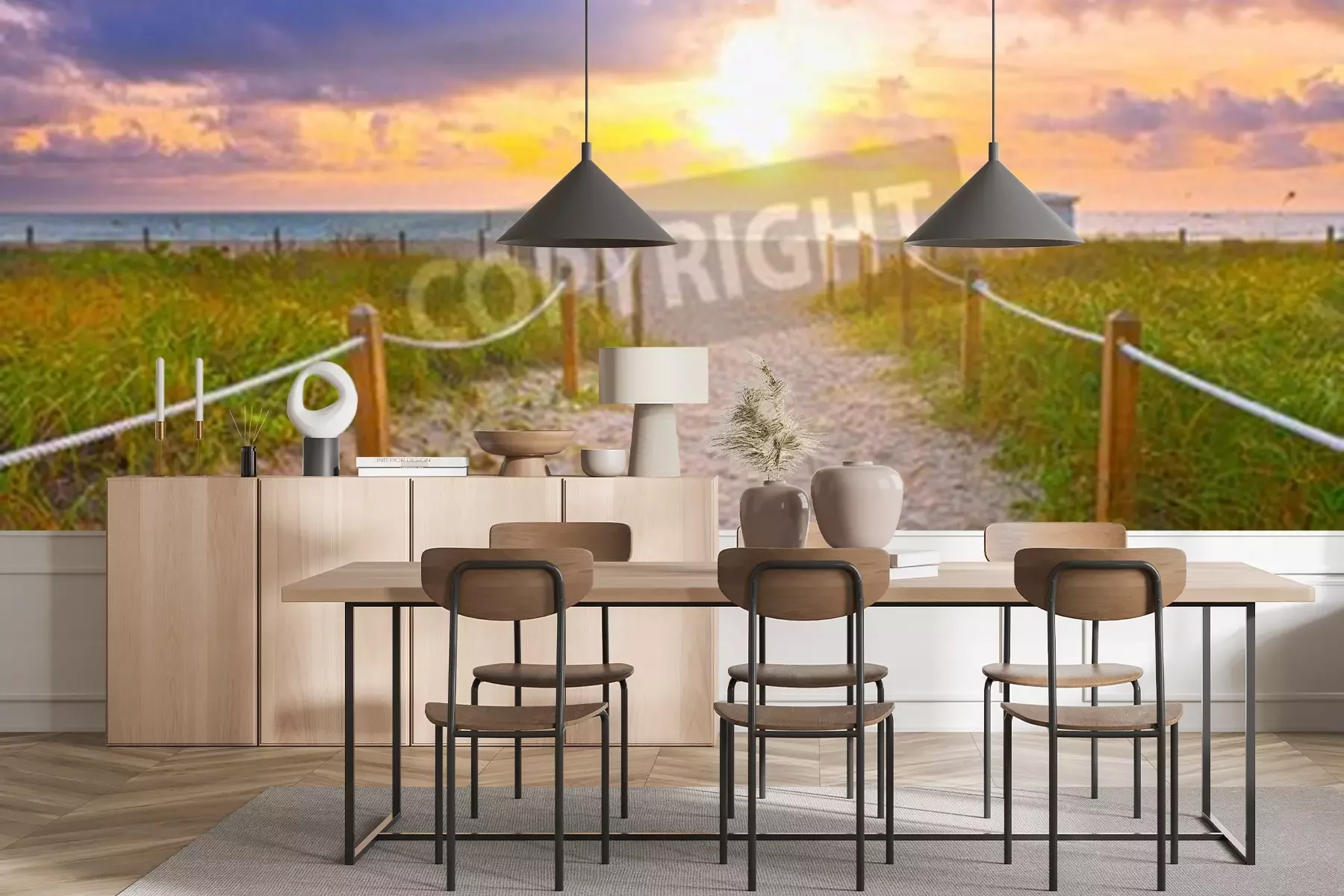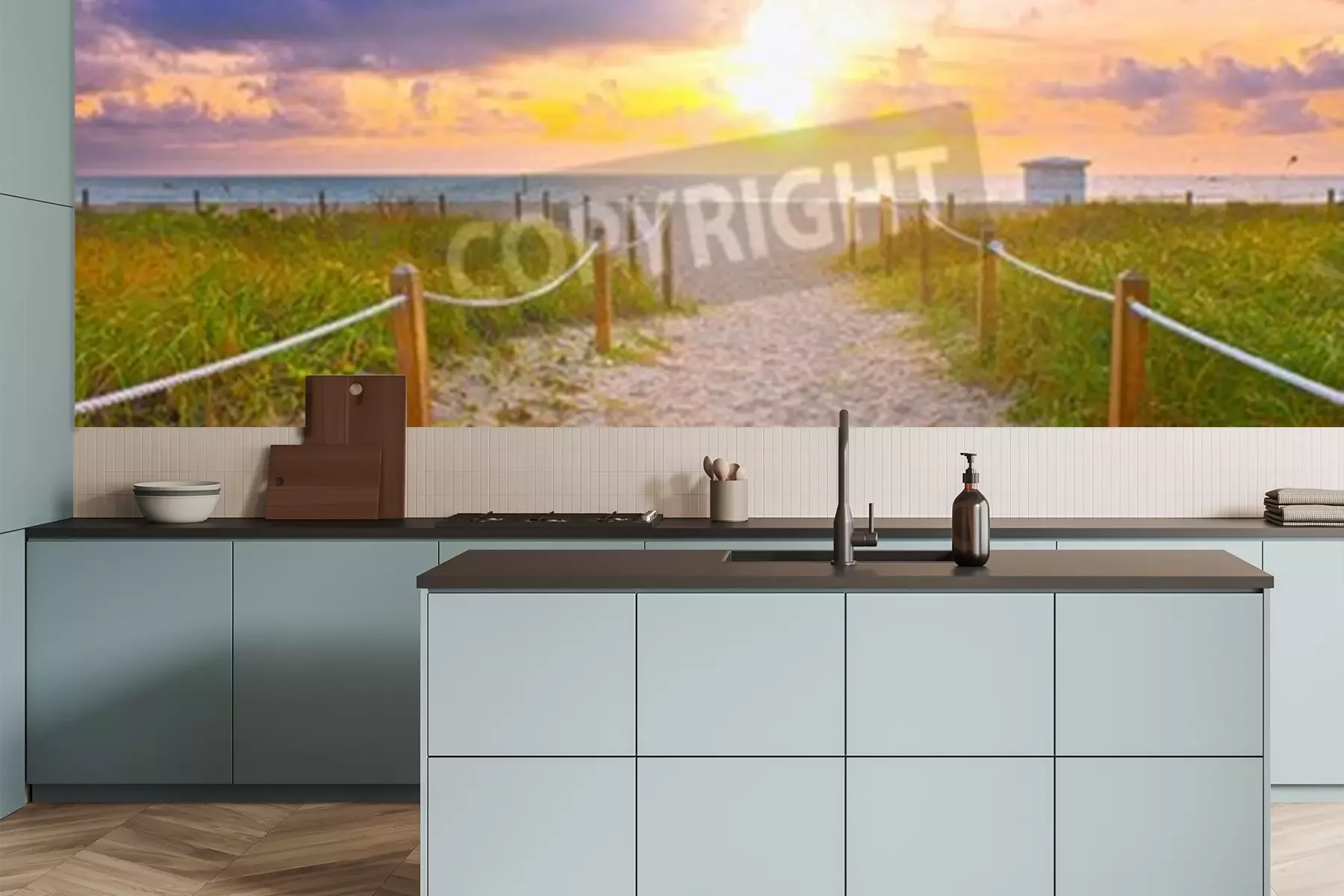 Fotobehang Zonsopgang en de ingang van het strand