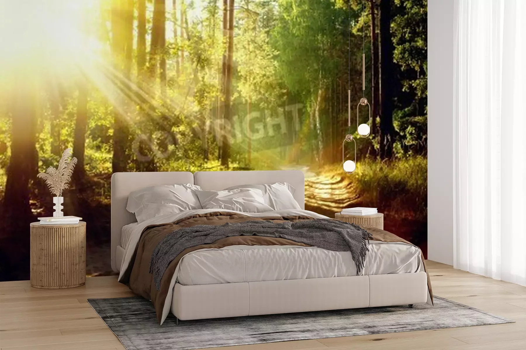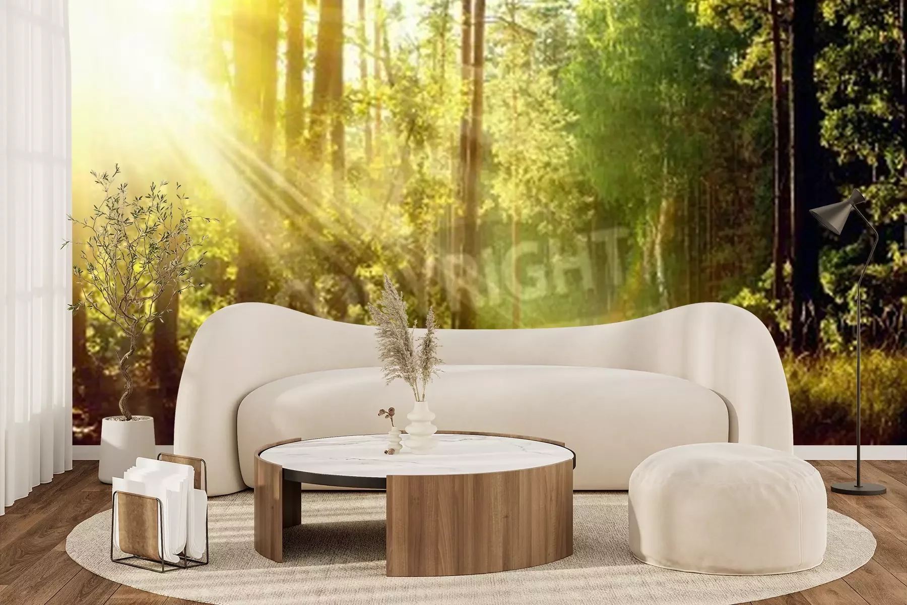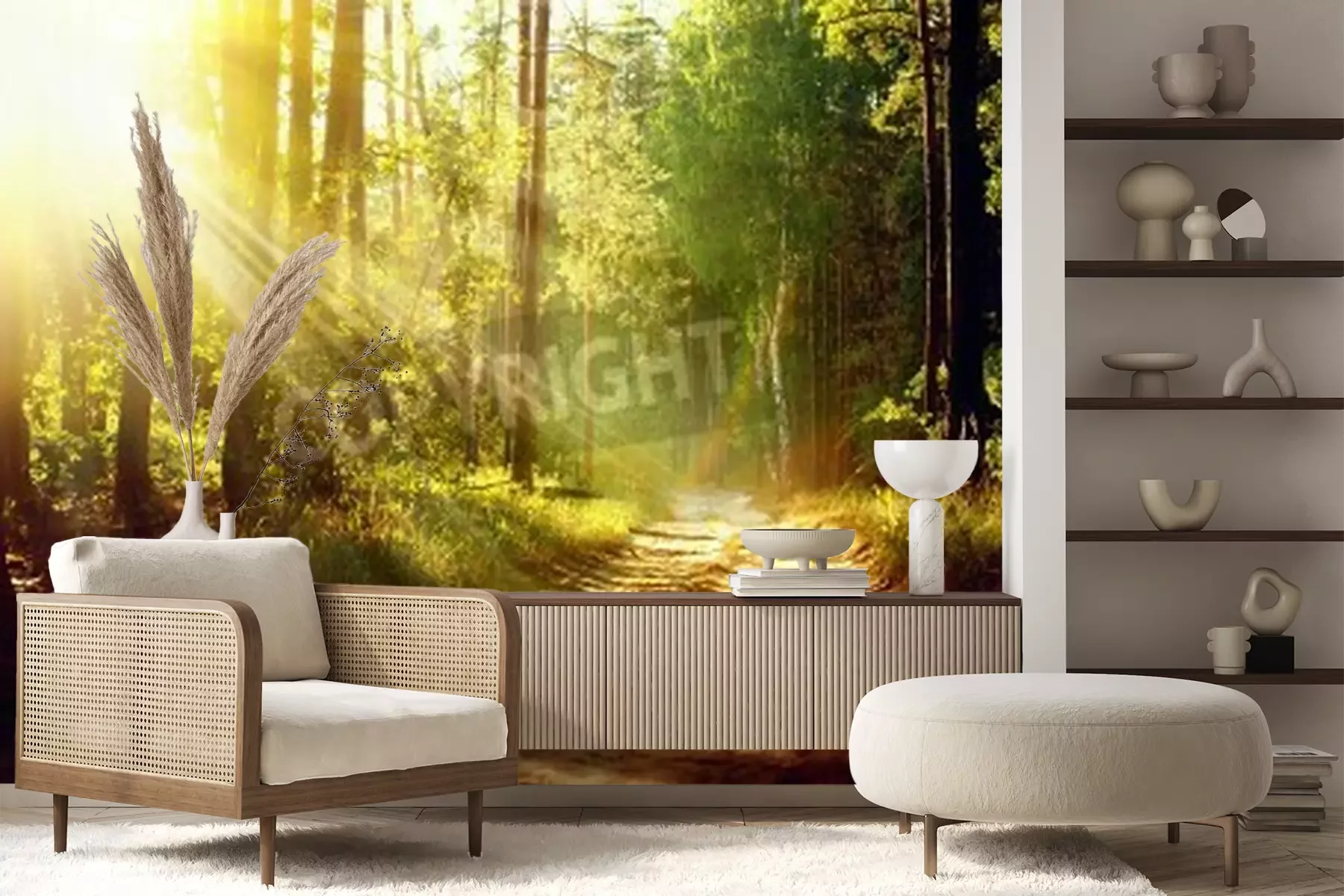Fotobehang Zonsopgang in een bos