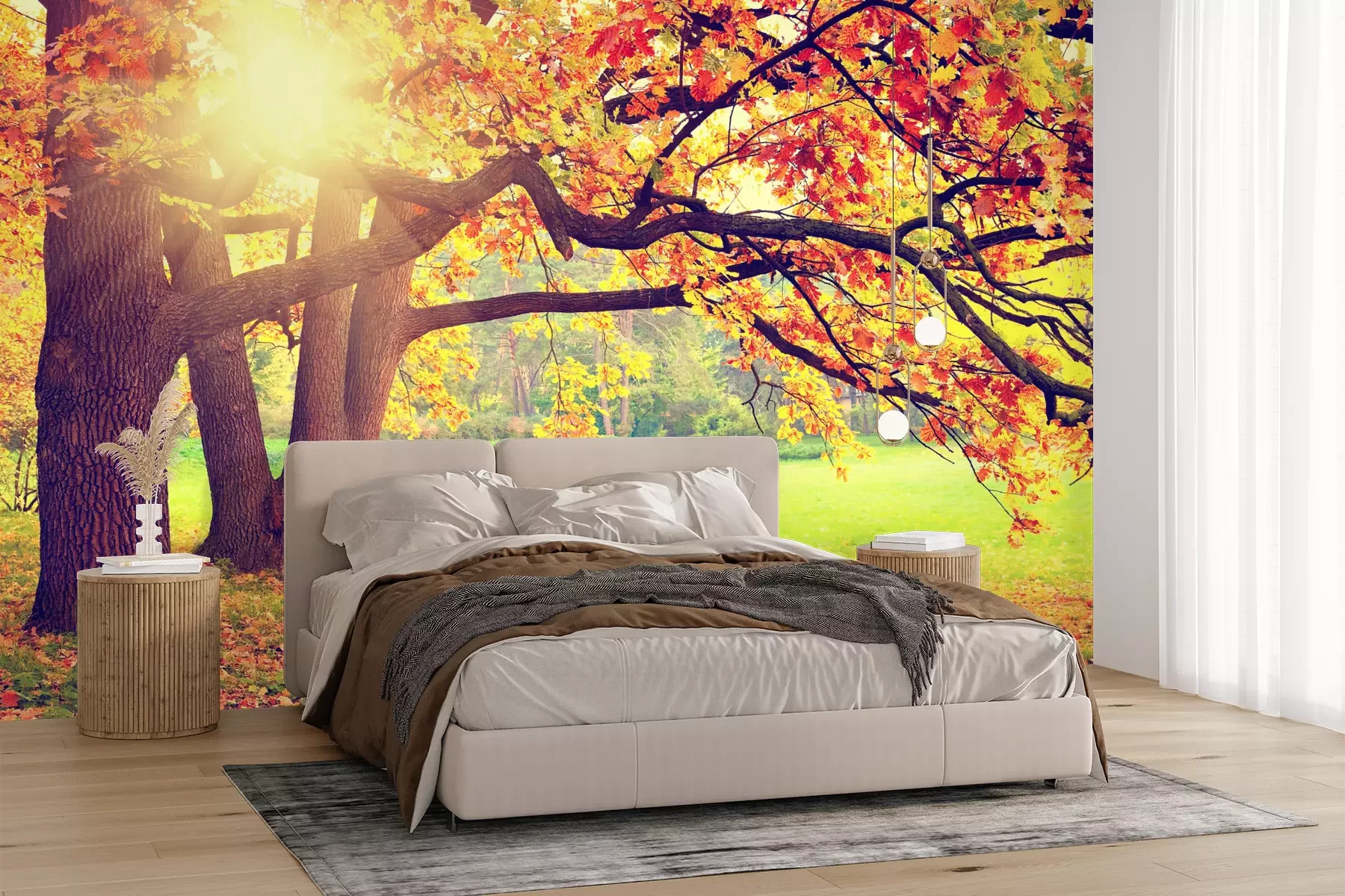Het materiaal Premium+ is een gestructureerd vinyl op vlies met een gewicht van 255 g/m², dat kleine oneffenheden in de muur effectief camoufleert. De subtiele structuur van fijn zand geeft het oppervlak een exclusieve uitstraling, terwijl de halfmatte afwerking de diepte van de kleuren benadrukt. Het materiaal is dampdoorlatend, waardoor het ook in de keuken en badkamer kan worden gebruikt. De maximale breedte van één baan bedraagt 100 cm – bij grotere afmetingen wordt het fotobehang in meerdere gelijke banen verdeeld. De lijm wordt direct op de muur aangebracht en het behang wordt rand-aan-rand geplakt, wat zorgt voor een esthetisch resultaat zonder zichtbare naden. Het oppervlak kan gemakkelijk worden schoongemaakt door het voorzichtig af te nemen met een vochtige doek.