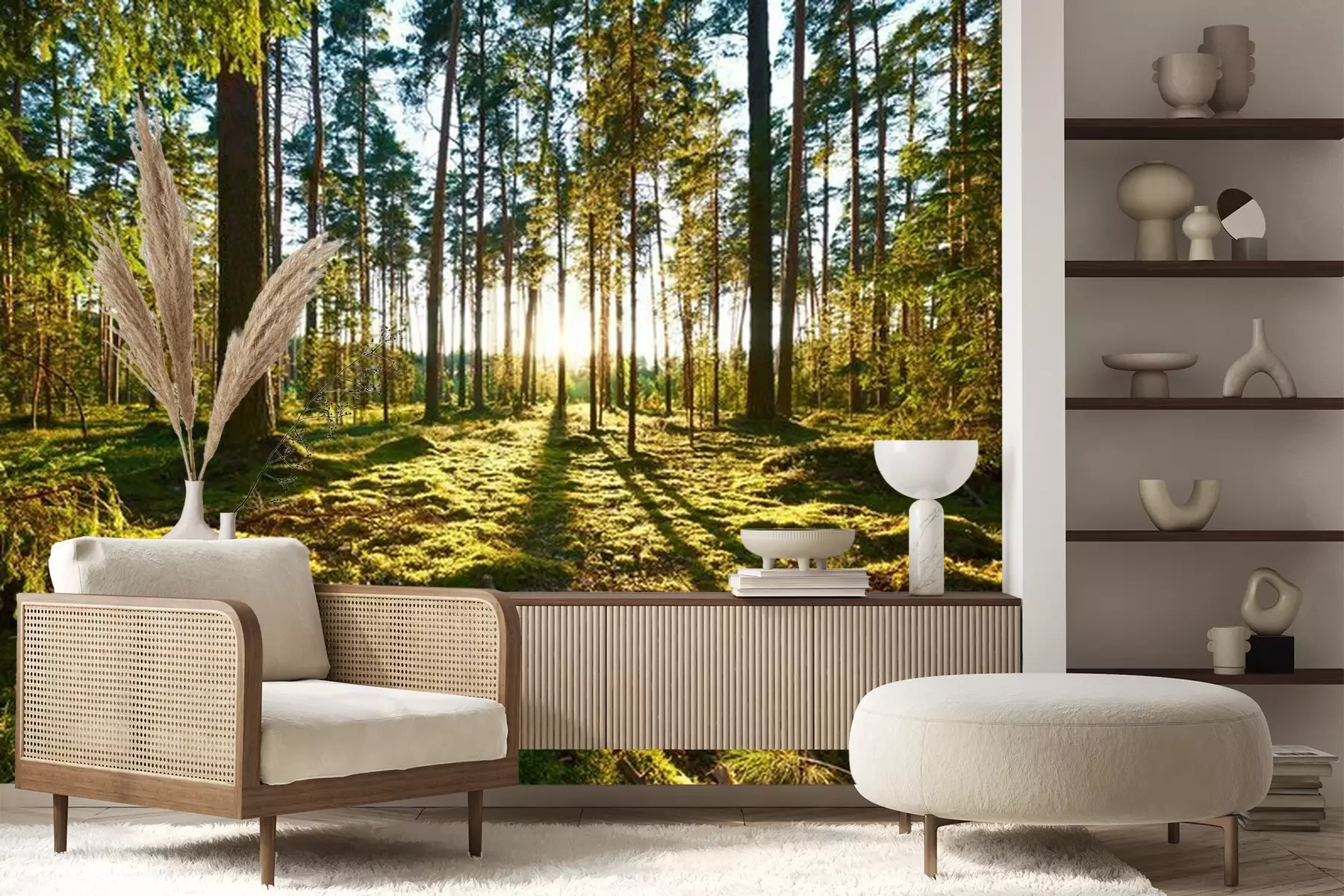 Het materiaal Premium+ is een gestructureerd vinyl op vlies met een gewicht van 255 g/m², dat kleine oneffenheden in de muur effectief camoufleert. De subtiele structuur van fijn zand geeft het oppervlak een exclusieve uitstraling, terwijl de halfmatte afwerking de diepte van de kleuren benadrukt. Het materiaal is dampdoorlatend, waardoor het ook in de keuken en badkamer kan worden gebruikt. De maximale breedte van één baan bedraagt 100 cm – bij grotere afmetingen wordt het fotobehang in meerdere gelijke banen verdeeld. De lijm wordt direct op de muur aangebracht en het behang wordt rand-aan-rand geplakt, wat zorgt voor een esthetisch resultaat zonder zichtbare naden. Het oppervlak kan gemakkelijk worden schoongemaakt door het voorzichtig af te nemen met een vochtige doek.