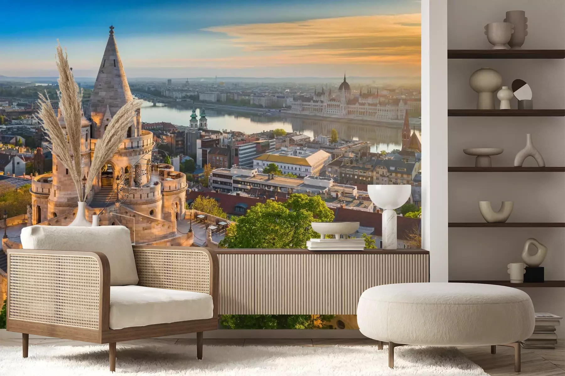 Het materiaal Premium+ is een gestructureerd vinyl op vlies met een gewicht van 255 g/m², dat kleine oneffenheden in de muur effectief camoufleert. De subtiele structuur van fijn zand geeft het oppervlak een exclusieve uitstraling, terwijl de halfmatte afwerking de diepte van de kleuren benadrukt. Het materiaal is dampdoorlatend, waardoor het ook in de keuken en badkamer kan worden gebruikt. De maximale breedte van één baan bedraagt 100 cm – bij grotere afmetingen wordt het fotobehang in meerdere gelijke banen verdeeld. De lijm wordt direct op de muur aangebracht en het behang wordt rand-aan-rand geplakt, wat zorgt voor een esthetisch resultaat zonder zichtbare naden. Het oppervlak kan gemakkelijk worden schoongemaakt door het voorzichtig af te nemen met een vochtige doek.