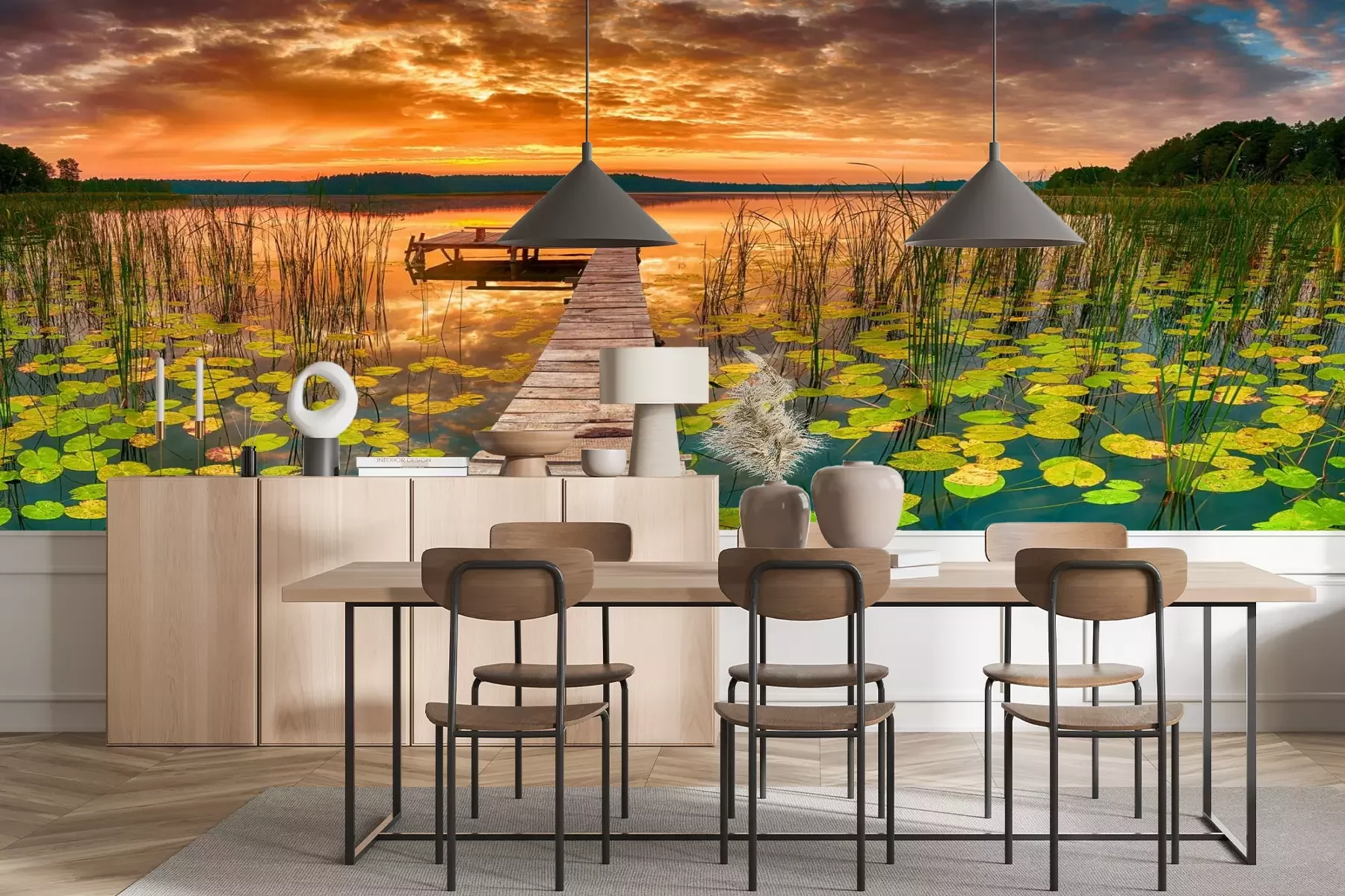 Het materiaal Premium+ is een gestructureerd vinyl op vlies met een gewicht van 255 g/m², dat kleine oneffenheden in de muur effectief camoufleert. De subtiele structuur van fijn zand geeft het oppervlak een exclusieve uitstraling, terwijl de halfmatte afwerking de diepte van de kleuren benadrukt. Het materiaal is dampdoorlatend, waardoor het ook in de keuken en badkamer kan worden gebruikt. De maximale breedte van één baan bedraagt 100 cm – bij grotere afmetingen wordt het fotobehang in meerdere gelijke banen verdeeld. De lijm wordt direct op de muur aangebracht en het behang wordt rand-aan-rand geplakt, wat zorgt voor een esthetisch resultaat zonder zichtbare naden. Het oppervlak kan gemakkelijk worden schoongemaakt door het voorzichtig af te nemen met een vochtige doek.