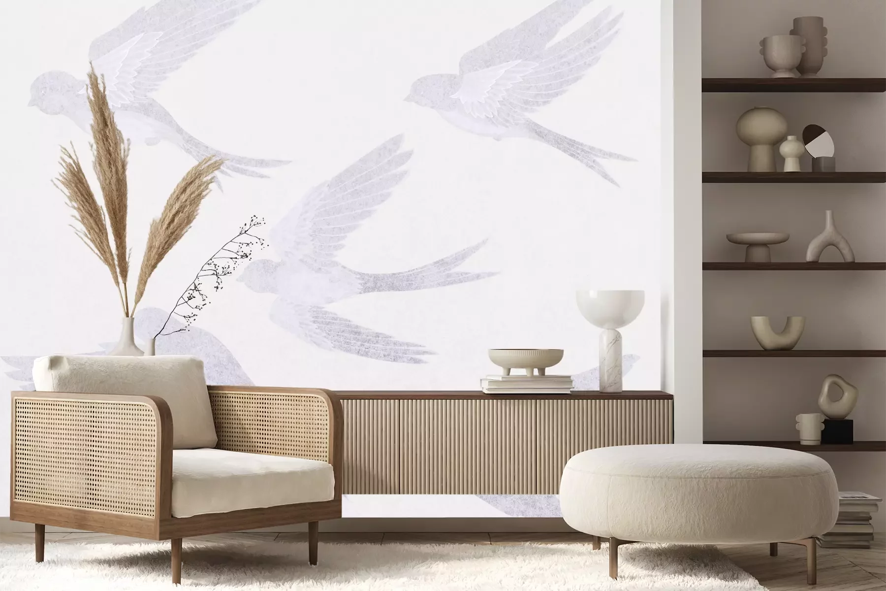 Het materiaal Standard is een hoogwaardig latexmateriaal met een glad, mat oppervlak. Dankzij de HP Latex-printtechnologie zijn de kleuren intens, duurzaam en UV-bestendig, waardoor het patroon jarenlang een onberispelijke uitstraling behoudt. Vervuilde oppervlakken kunnen voorzichtig worden afgeveegd met een droge doek. De maximale breedte van één baan bedraagt 95 cm of 105 cm – afhankelijk van de bestelde fotobehangbreedte. Bij grotere afmetingen wordt het patroon verdeeld over meerdere gelijkmatige banen. Het fotobehang wordt rand-aan-randaangebracht, wat vrijwel onzichtbare naden mogelijk maakt.
