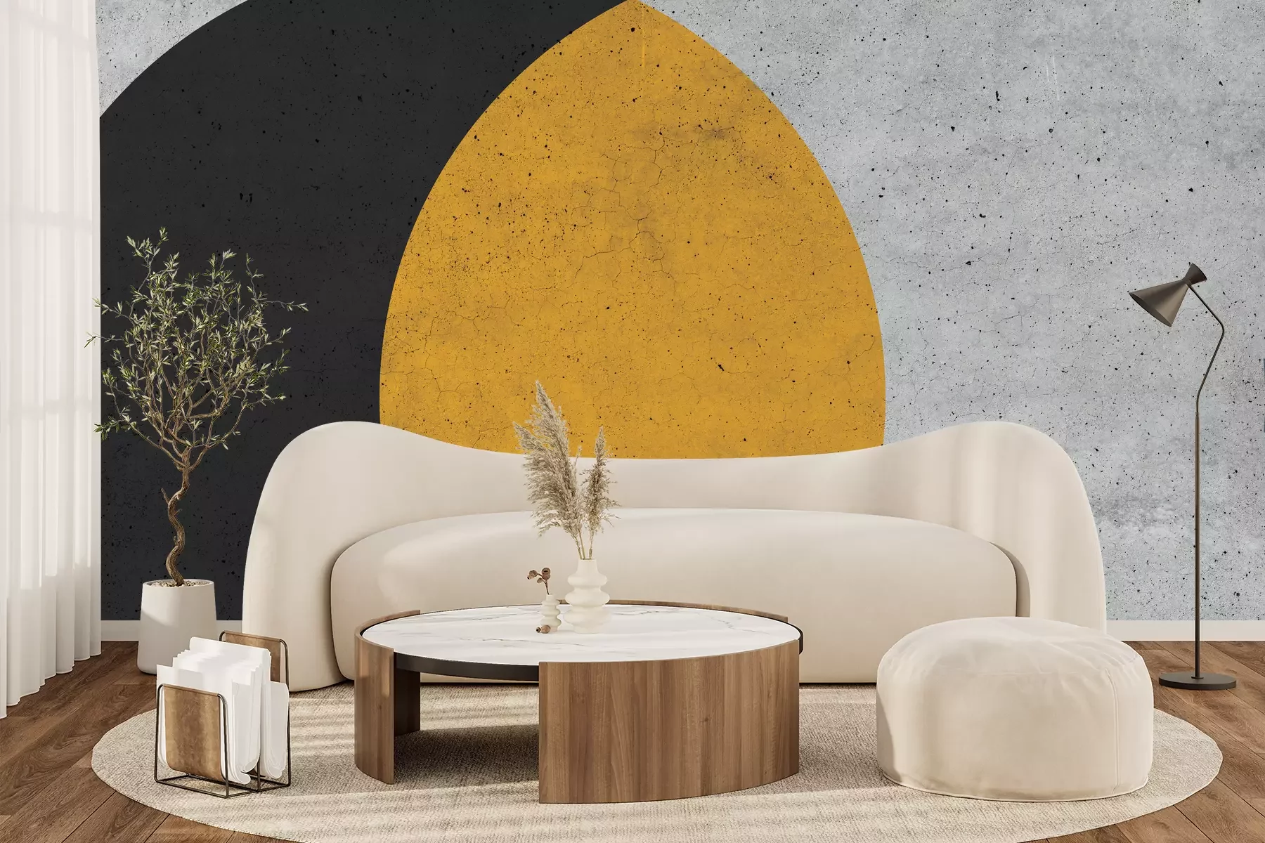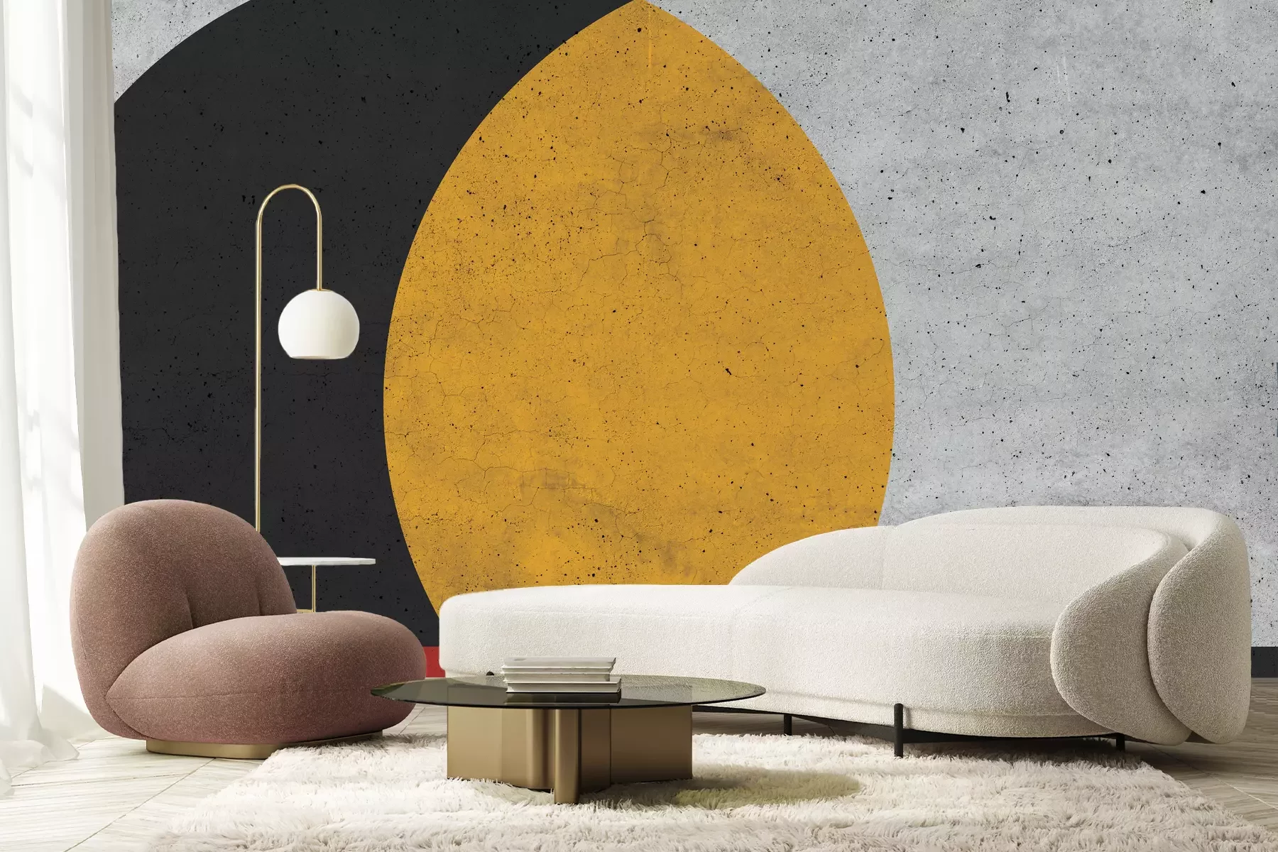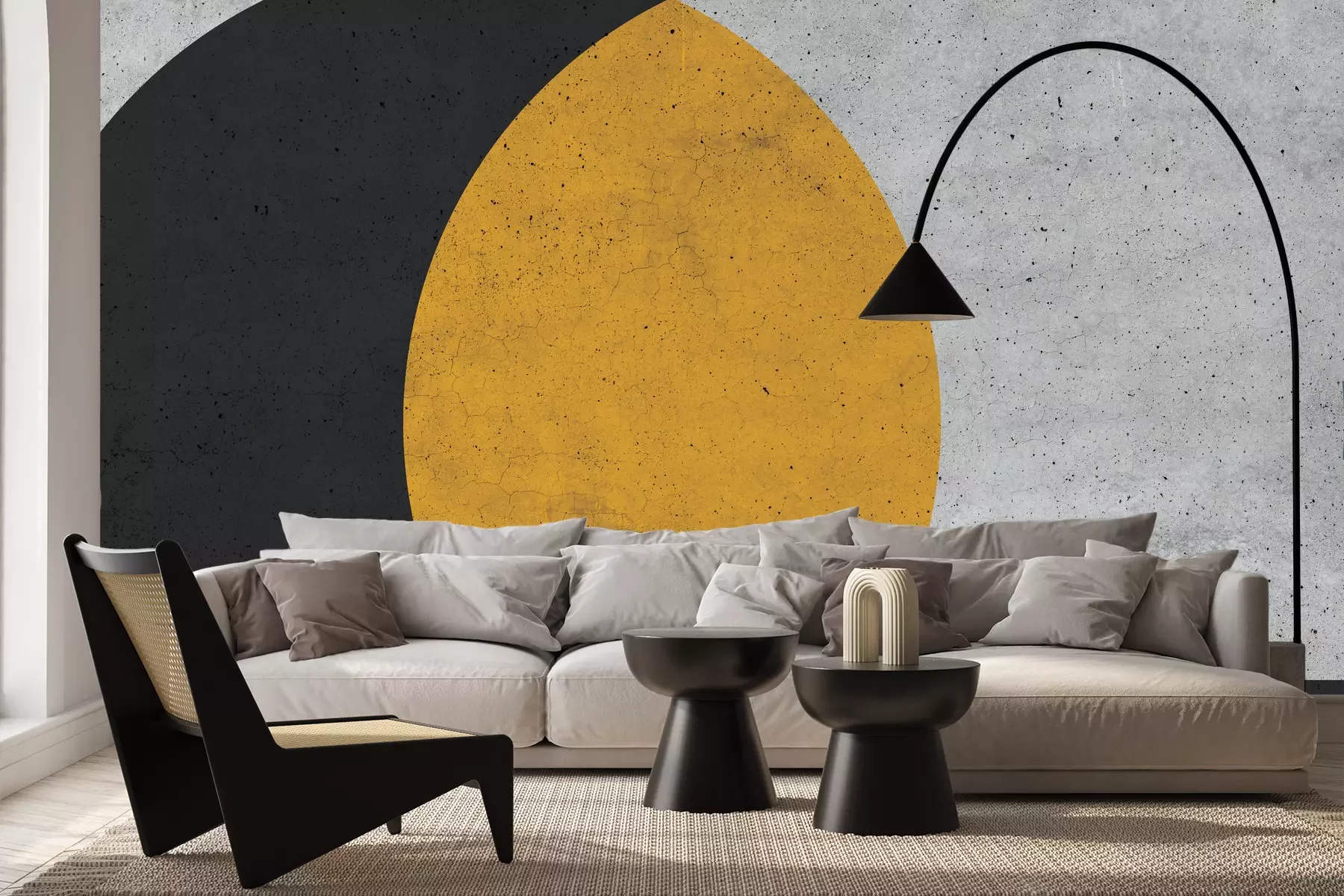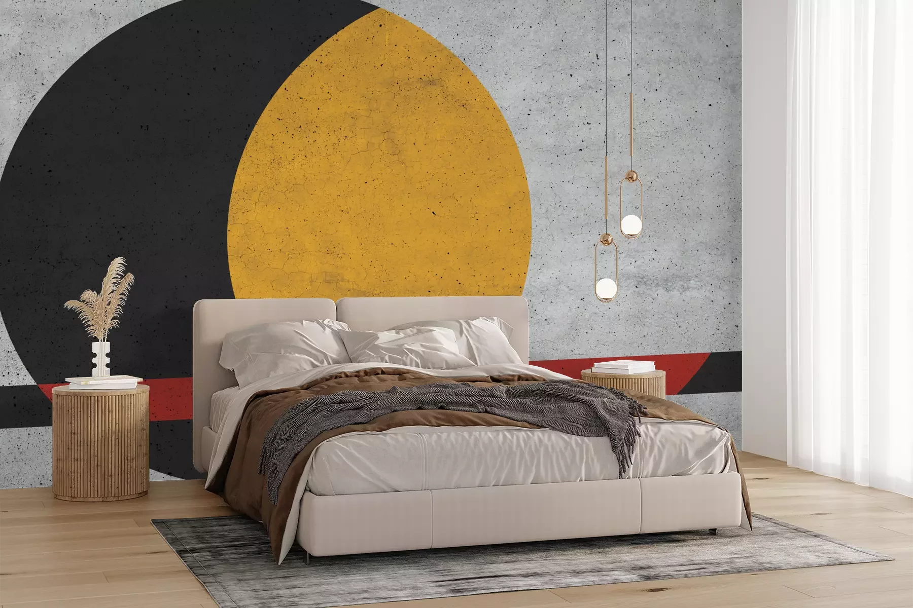 Zwart-gele cirkel met rode elementen met betonstructuur