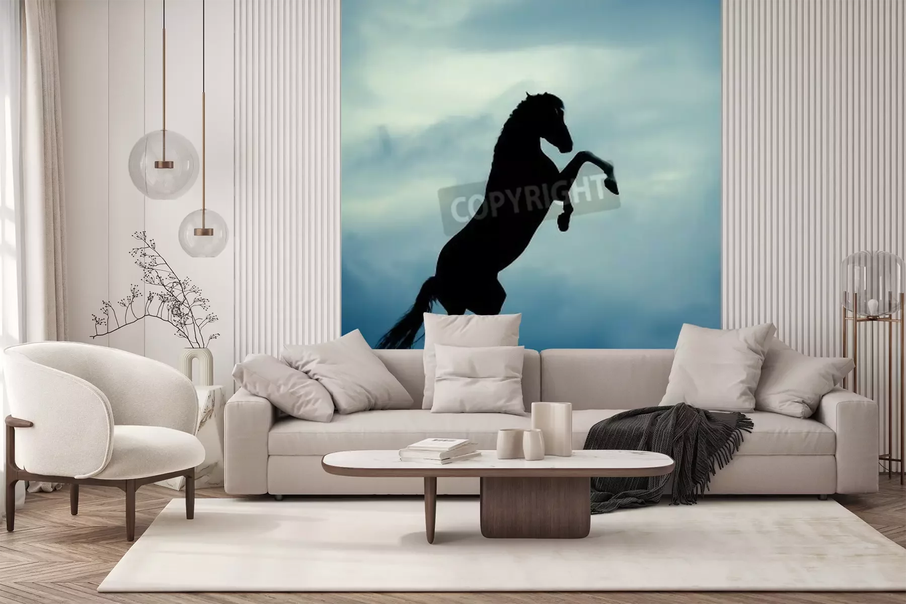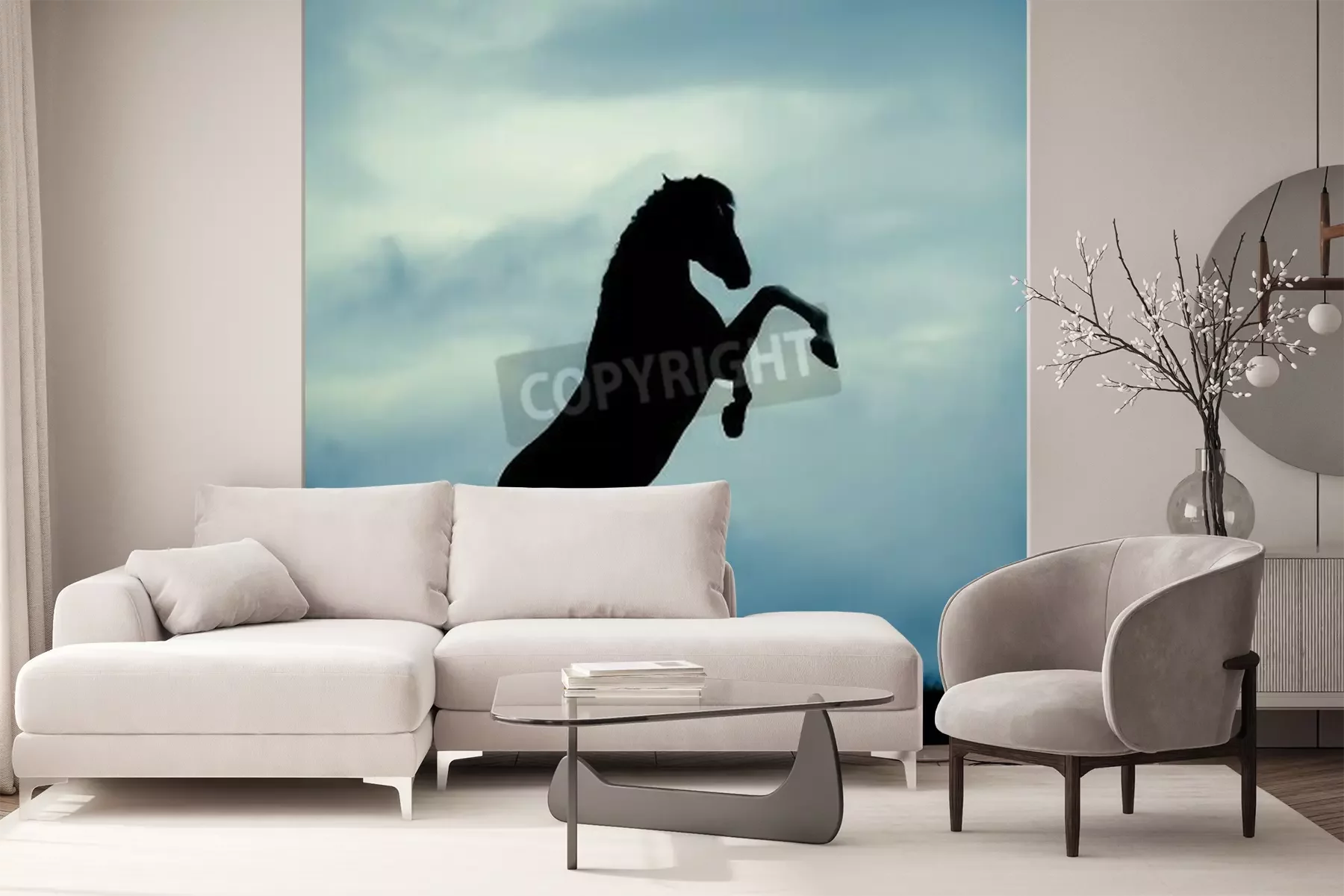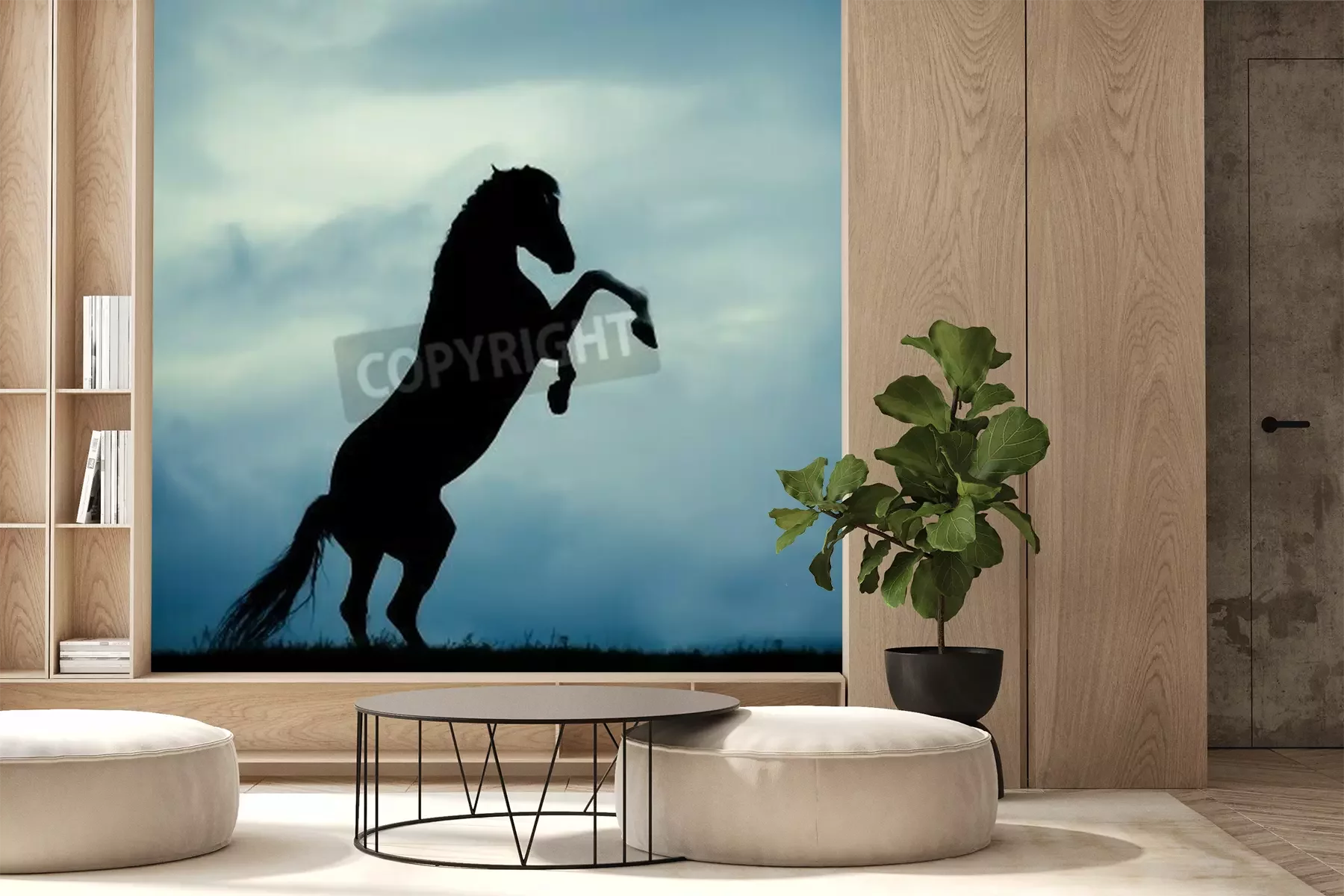 Fotobehang Zwart silhouet van een paard