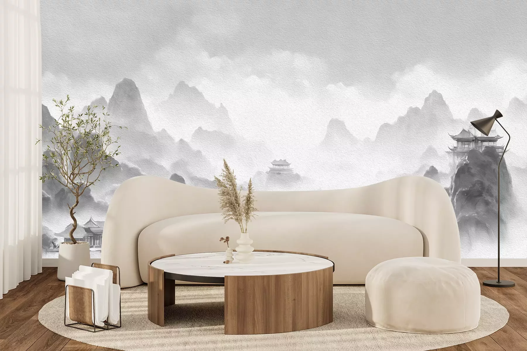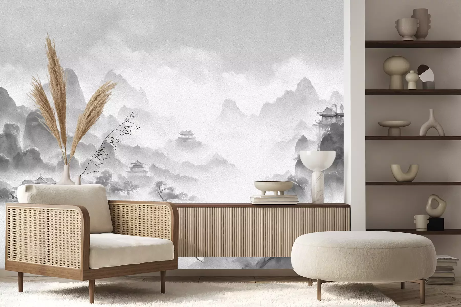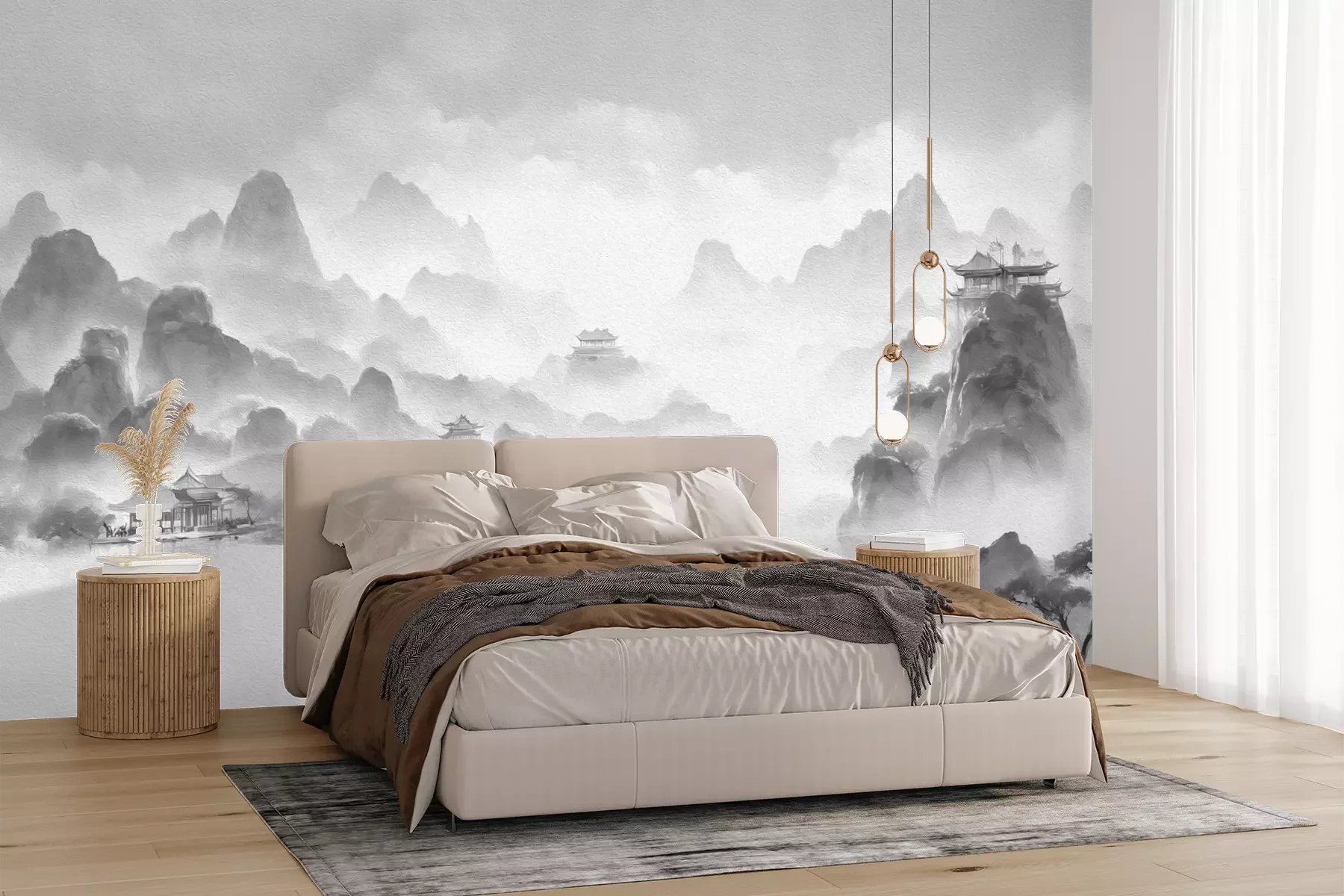 Het materiaal Premium+ is een gestructureerd vinyl op vlies met een gewicht van 255 g/m², dat kleine oneffenheden in de muur effectief camoufleert. De subtiele structuur van fijn zand geeft het oppervlak een exclusieve uitstraling, terwijl de halfmatte afwerking de diepte van de kleuren benadrukt. Het materiaal is dampdoorlatend, waardoor het ook in de keuken en badkamer kan worden gebruikt. De maximale breedte van één baan bedraagt 100 cm – bij grotere afmetingen wordt het fotobehang in meerdere gelijke banen verdeeld. De lijm wordt direct op de muur aangebracht en het behang wordt rand-aan-rand geplakt, wat zorgt voor een esthetisch resultaat zonder zichtbare naden. Het oppervlak kan gemakkelijk worden schoongemaakt door het voorzichtig af te nemen met een vochtige doek.