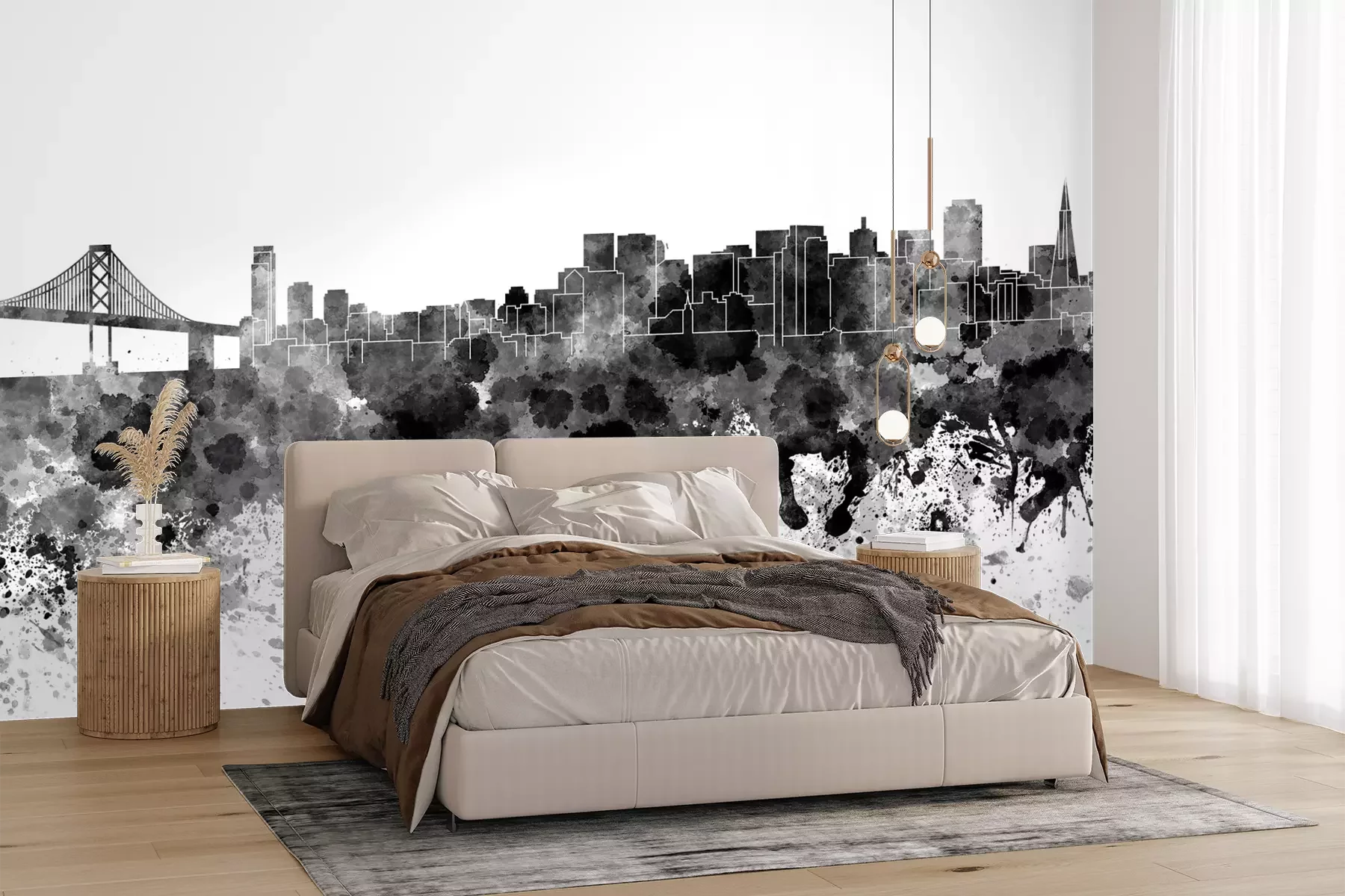 Het materiaal Premium+ is een gestructureerd vinyl op vlies met een gewicht van 255 g/m², dat kleine oneffenheden in de muur effectief camoufleert. De subtiele structuur van fijn zand geeft het oppervlak een exclusieve uitstraling, terwijl de halfmatte afwerking de diepte van de kleuren benadrukt. Het materiaal is dampdoorlatend, waardoor het ook in de keuken en badkamer kan worden gebruikt. De maximale breedte van één baan bedraagt 100 cm – bij grotere afmetingen wordt het fotobehang in meerdere gelijke banen verdeeld. De lijm wordt direct op de muur aangebracht en het behang wordt rand-aan-rand geplakt, wat zorgt voor een esthetisch resultaat zonder zichtbare naden. Het oppervlak kan gemakkelijk worden schoongemaakt door het voorzichtig af te nemen met een vochtige doek.