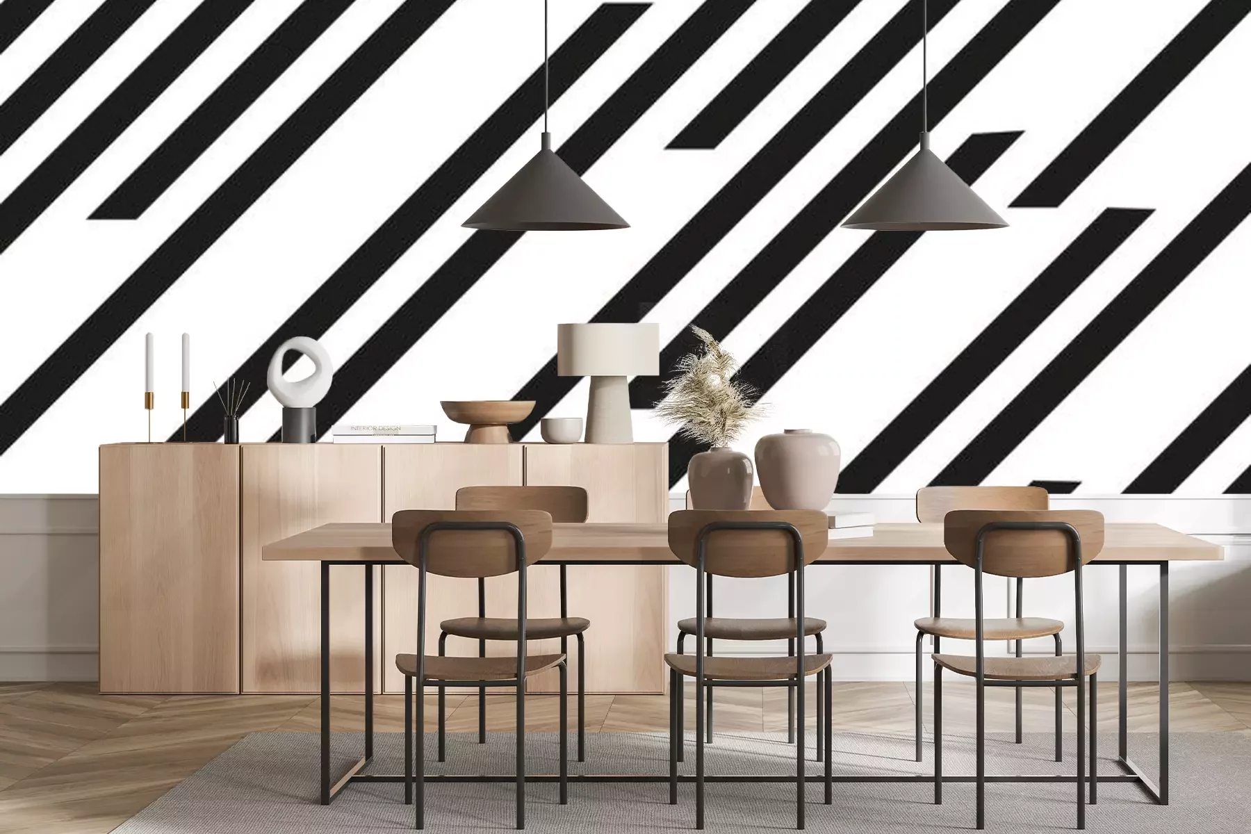 Fotobehang Zwart-wit gestreepte textuur