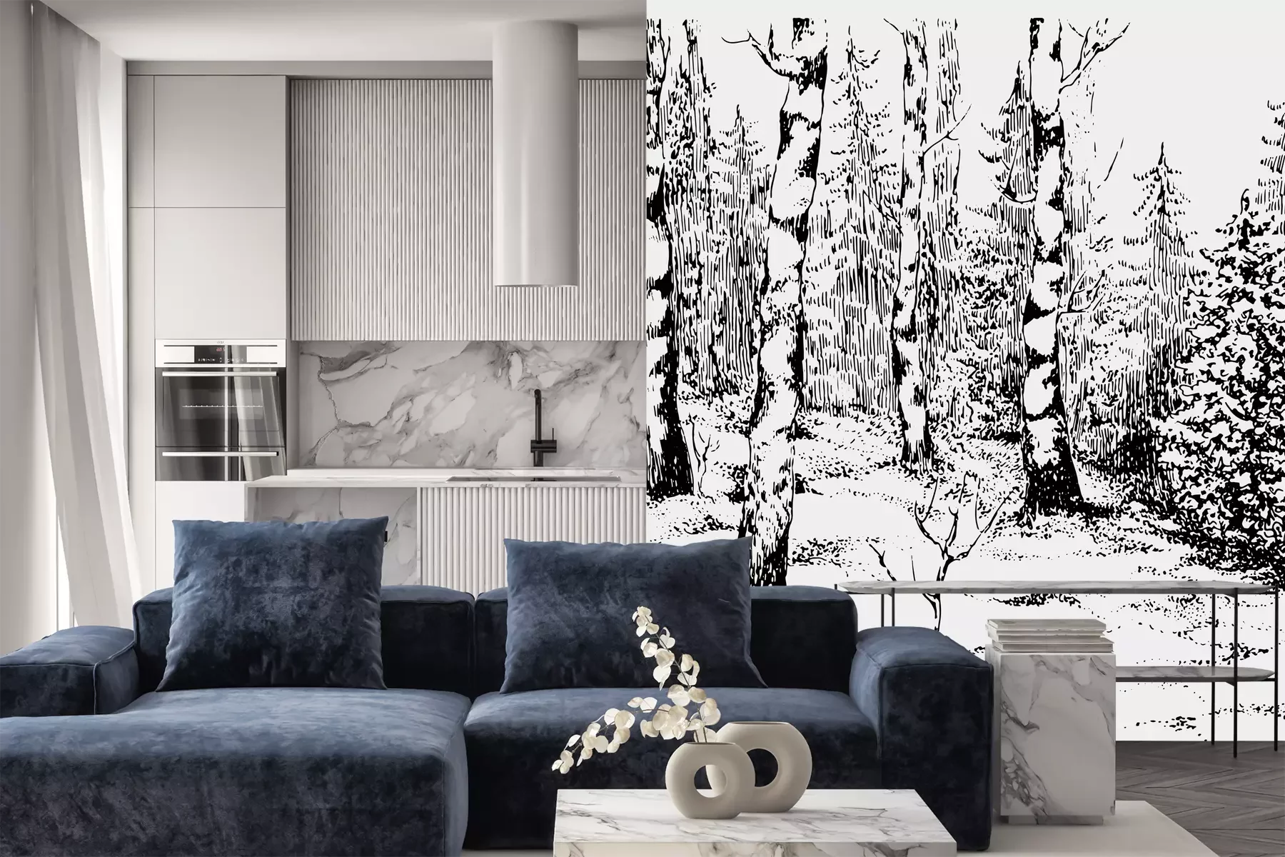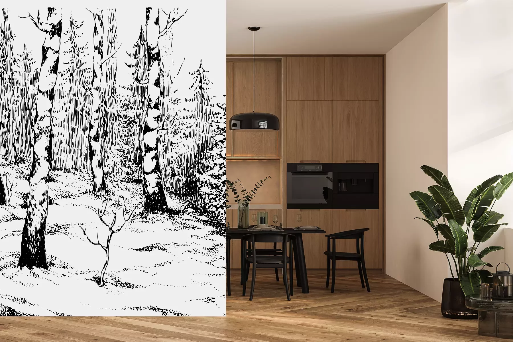 Het materiaal Premium+ is een gestructureerd vinyl op vlies met een gewicht van 255 g/m², dat kleine oneffenheden in de muur effectief camoufleert. De subtiele structuur van fijn zand geeft het oppervlak een exclusieve uitstraling, terwijl de halfmatte afwerking de diepte van de kleuren benadrukt. Het materiaal is dampdoorlatend, waardoor het ook in de keuken en badkamer kan worden gebruikt. De maximale breedte van één baan bedraagt 100 cm – bij grotere afmetingen wordt het fotobehang in meerdere gelijke banen verdeeld. De lijm wordt direct op de muur aangebracht en het behang wordt rand-aan-rand geplakt, wat zorgt voor een esthetisch resultaat zonder zichtbare naden. Het oppervlak kan gemakkelijk worden schoongemaakt door het voorzichtig af te nemen met een vochtige doek.