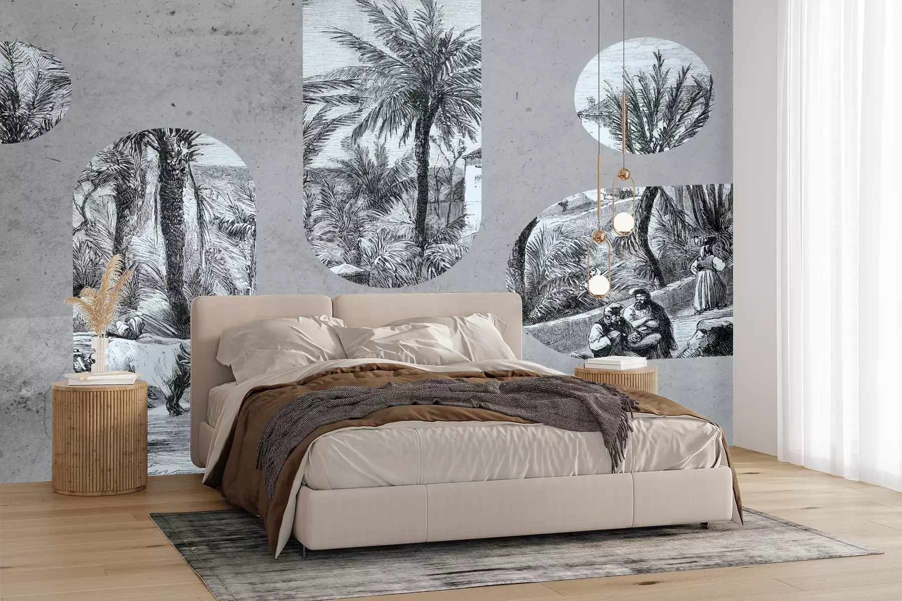 Het materiaal Premium+ is een gestructureerd vinyl op vlies met een gewicht van 255 g/m², dat kleine oneffenheden in de muur effectief camoufleert. De subtiele structuur van fijn zand geeft het oppervlak een exclusieve uitstraling, terwijl de halfmatte afwerking de diepte van de kleuren benadrukt. Het materiaal is dampdoorlatend, waardoor het ook in de keuken en badkamer kan worden gebruikt. De maximale breedte van één baan bedraagt 100 cm – bij grotere afmetingen wordt het fotobehang in meerdere gelijke banen verdeeld. De lijm wordt direct op de muur aangebracht en het behang wordt rand-aan-rand geplakt, wat zorgt voor een esthetisch resultaat zonder zichtbare naden. Het oppervlak kan gemakkelijk worden schoongemaakt door het voorzichtig af te nemen met een vochtige doek.