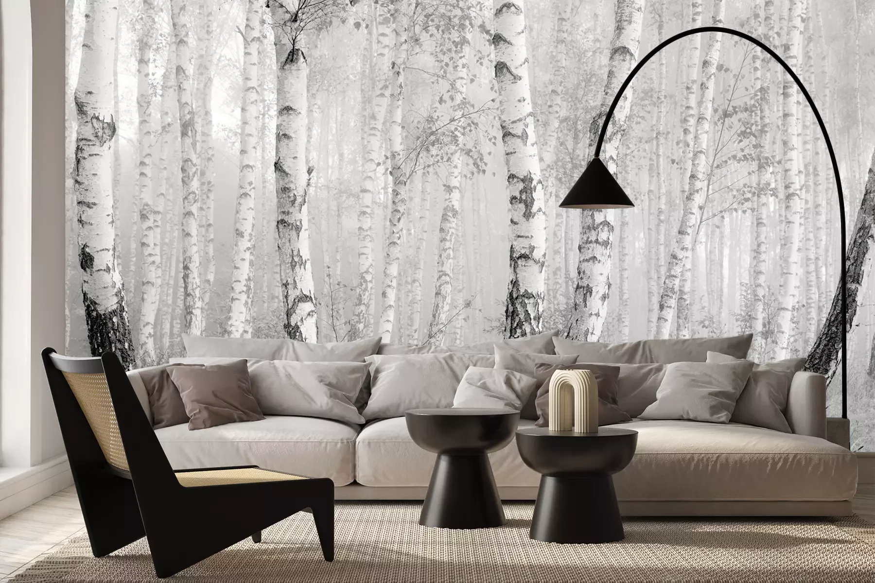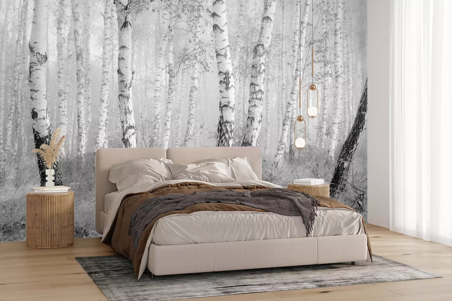 Het materiaal Premium+ is een gestructureerd vinyl op vlies met een gewicht van 255 g/m², dat kleine oneffenheden in de muur effectief camoufleert. De subtiele structuur van fijn zand geeft het oppervlak een exclusieve uitstraling, terwijl de halfmatte afwerking de diepte van de kleuren benadrukt. Het materiaal is dampdoorlatend, waardoor het ook in de keuken en badkamer kan worden gebruikt. De maximale breedte van één baan bedraagt 100 cm – bij grotere afmetingen wordt het fotobehang in meerdere gelijke banen verdeeld. De lijm wordt direct op de muur aangebracht en het behang wordt rand-aan-rand geplakt, wat zorgt voor een esthetisch resultaat zonder zichtbare naden. Het oppervlak kan gemakkelijk worden schoongemaakt door het voorzichtig af te nemen met een vochtige doek.