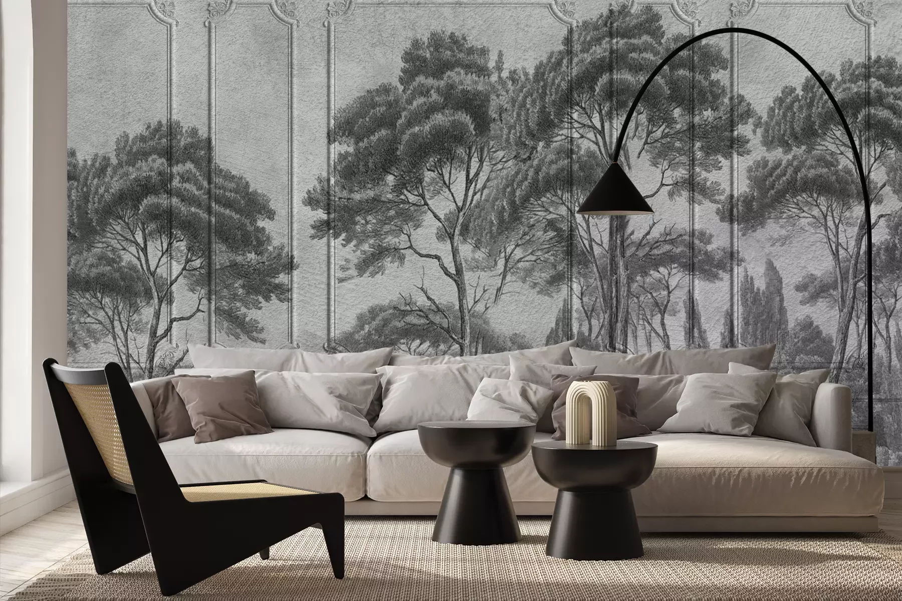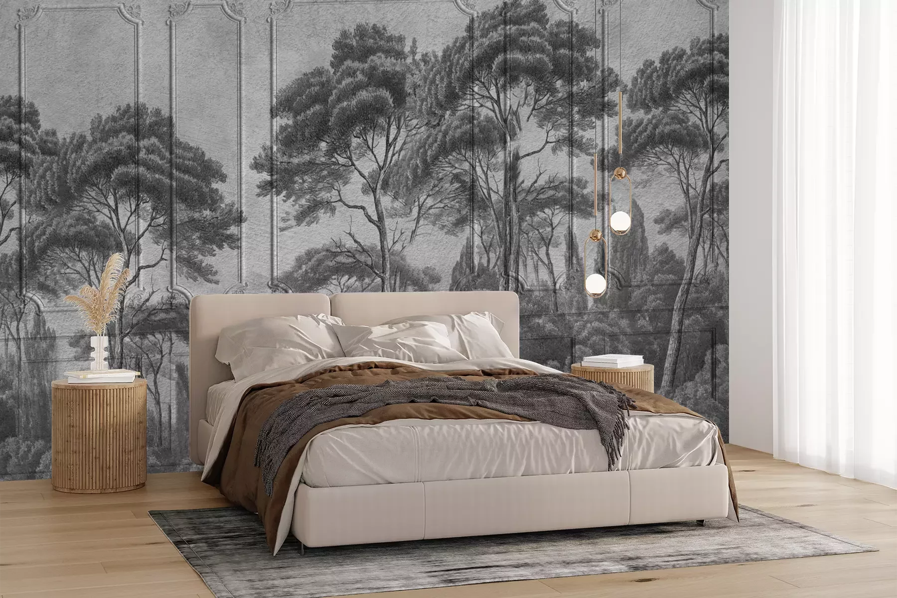 Het materiaal Premium+ is een gestructureerd vinyl op vlies met een gewicht van 255 g/m², dat kleine oneffenheden in de muur effectief camoufleert. De subtiele structuur van fijn zand geeft het oppervlak een exclusieve uitstraling, terwijl de halfmatte afwerking de diepte van de kleuren benadrukt. Het materiaal is dampdoorlatend, waardoor het ook in de keuken en badkamer kan worden gebruikt. De maximale breedte van één baan bedraagt 100 cm – bij grotere afmetingen wordt het fotobehang in meerdere gelijke banen verdeeld. De lijm wordt direct op de muur aangebracht en het behang wordt rand-aan-rand geplakt, wat zorgt voor een esthetisch resultaat zonder zichtbare naden. Het oppervlak kan gemakkelijk worden schoongemaakt door het voorzichtig af te nemen met een vochtige doek.