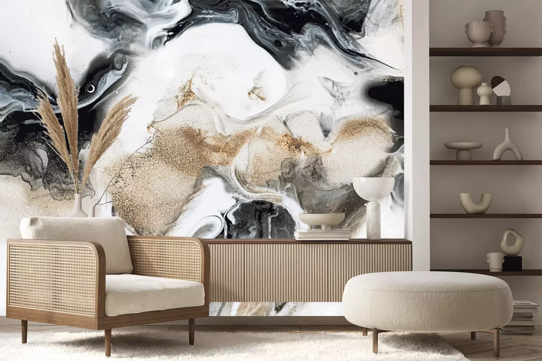 Het materiaal Premium+ is een gestructureerd vinyl op vlies met een gewicht van 255 g/m², dat kleine oneffenheden in de muur effectief camoufleert. De subtiele structuur van fijn zand geeft het oppervlak een exclusieve uitstraling, terwijl de halfmatte afwerking de diepte van de kleuren benadrukt. Het materiaal is dampdoorlatend, waardoor het ook in de keuken en badkamer kan worden gebruikt. De maximale breedte van één baan bedraagt 100 cm – bij grotere afmetingen wordt het fotobehang in meerdere gelijke banen verdeeld. De lijm wordt direct op de muur aangebracht en het behang wordt rand-aan-rand geplakt, wat zorgt voor een esthetisch resultaat zonder zichtbare naden. Het oppervlak kan gemakkelijk worden schoongemaakt door het voorzichtig af te nemen met een vochtige doek.