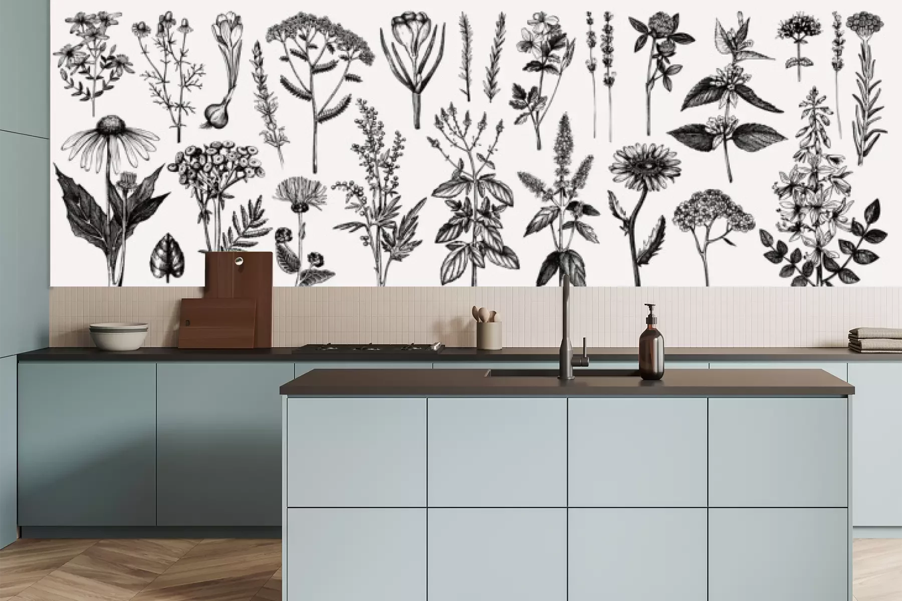 Het materiaal Premium is een glad vinyl op vlies, dat bestand is tegen uitrekken en vervorming. Het is dampdoorlatend – de muren kunnen vrij ademen – waardoor het geschikt is voor gebruik in de keuken en badkamer. Bij vervuiling kan het materiaal worden afgenomen met een vochtige doek. De maximale breedte van één baan bedraagt 95 of 105 cm, afhankelijk van de beschikbaarheid. Montage vindt plaats met de rand-aan-rand methode, wat een esthetisch resultaat zonder zichtbare naden oplevert. Omdat de lijm rechtstreeks op de muur wordt aangebracht, verloopt de installatie van het fotobehang snel en eenvoudig.