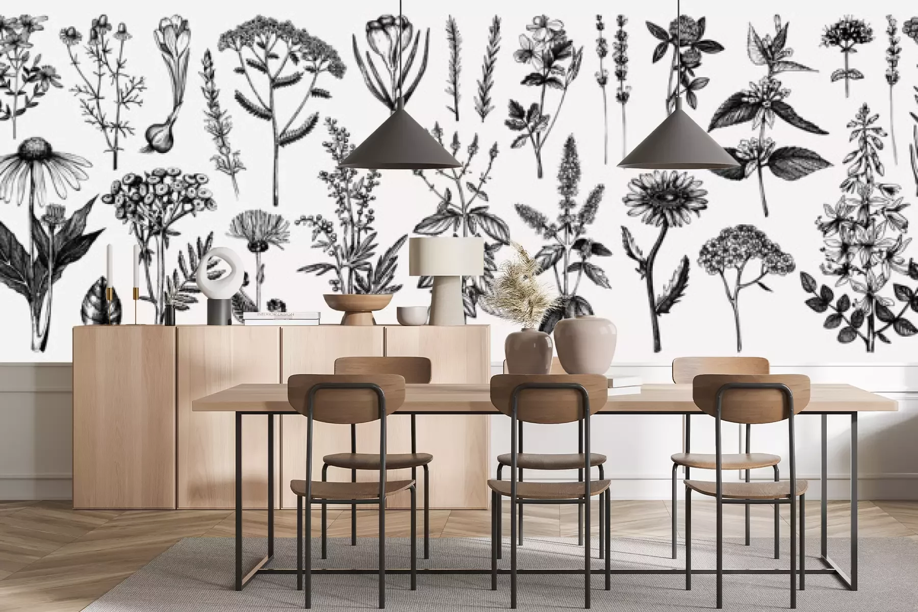 Het materiaal Standard is een hoogwaardig latexmateriaal met een glad, mat oppervlak. Dankzij de HP Latex-printtechnologie zijn de kleuren intens, duurzaam en UV-bestendig, waardoor het patroon jarenlang een onberispelijke uitstraling behoudt. Vervuilde oppervlakken kunnen voorzichtig worden afgeveegd met een droge doek. De maximale breedte van één baan bedraagt 95 cm of 105 cm – afhankelijk van de bestelde fotobehangbreedte. Bij grotere afmetingen wordt het patroon verdeeld over meerdere gelijkmatige banen. Het fotobehang wordt rand-aan-randaangebracht, wat vrijwel onzichtbare naden mogelijk maakt.