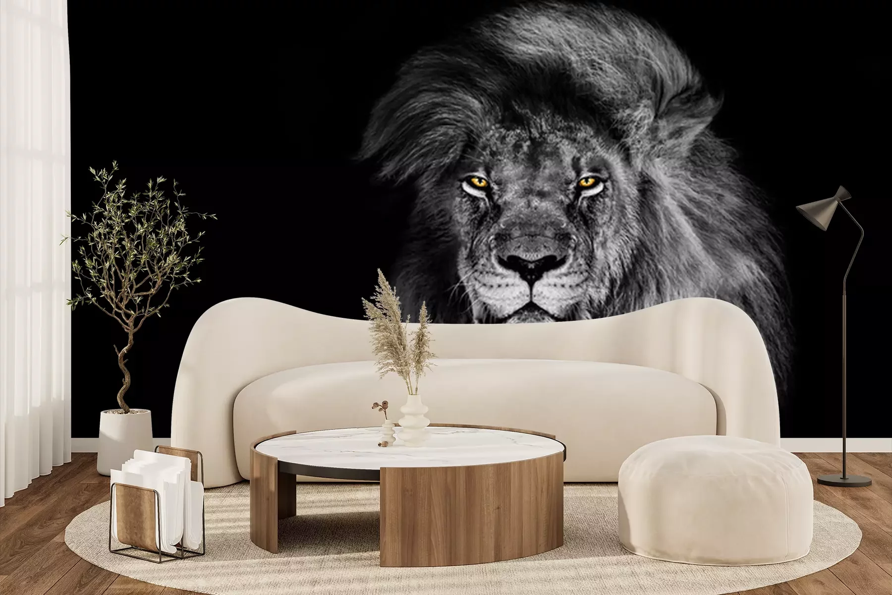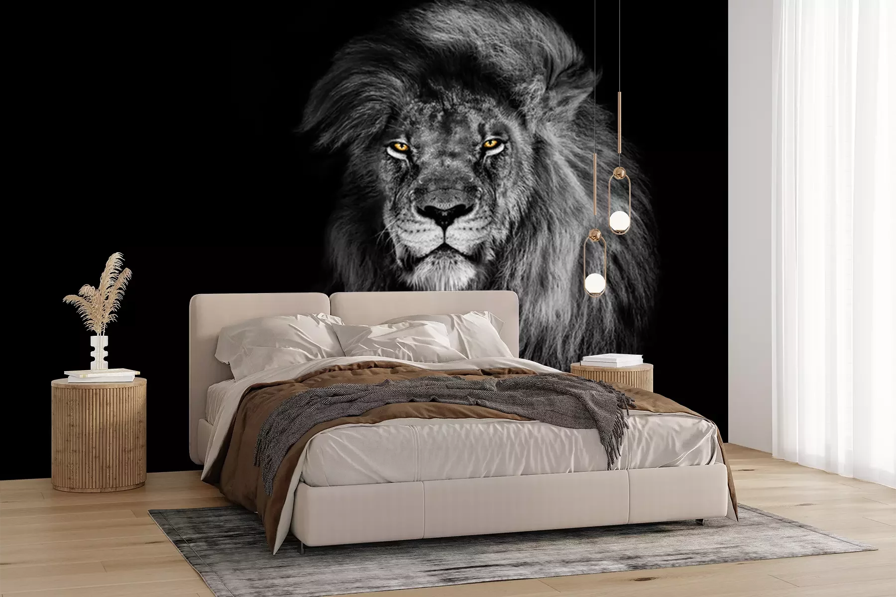 Fotobehang Zwart-wit portret van de leeuwenkoning