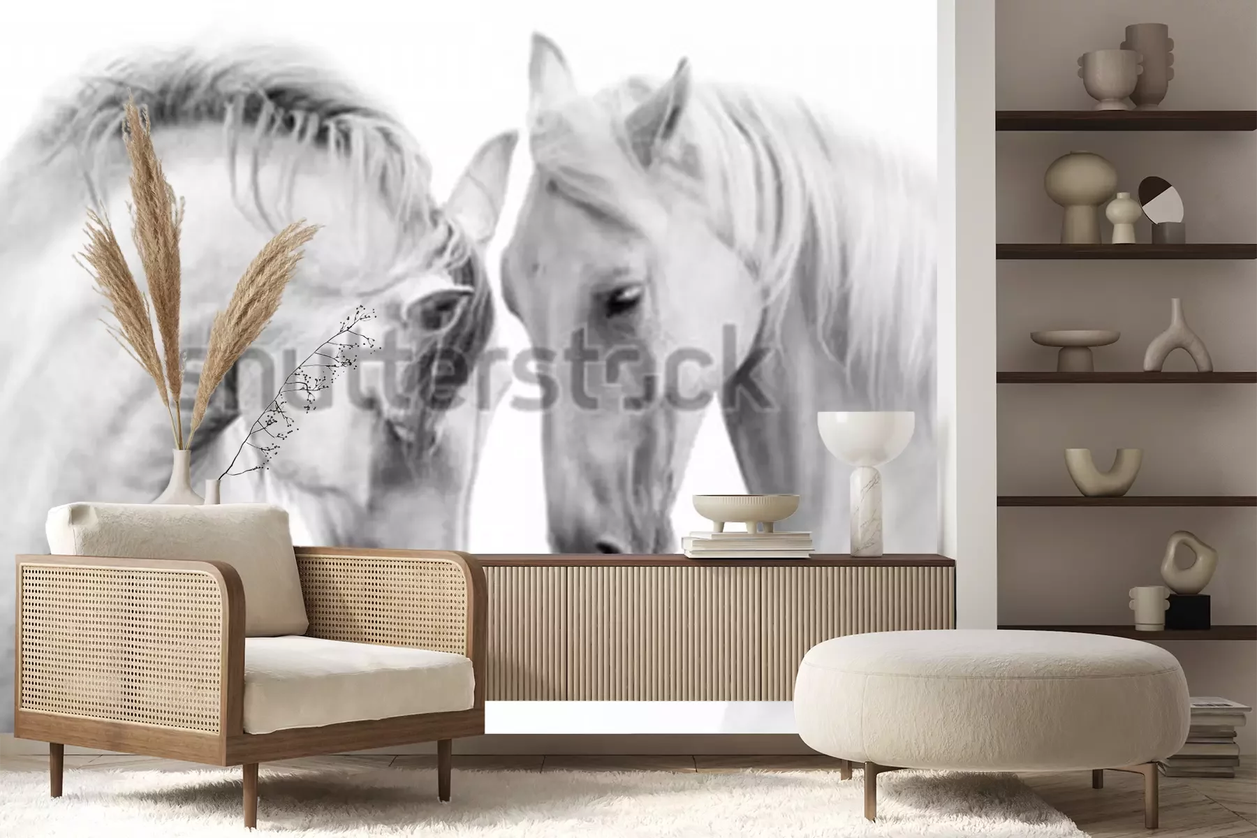 Het materiaal Premium+ is een gestructureerd vinyl op vlies met een gewicht van 255 g/m², dat kleine oneffenheden in de muur effectief camoufleert. De subtiele structuur van fijn zand geeft het oppervlak een exclusieve uitstraling, terwijl de halfmatte afwerking de diepte van de kleuren benadrukt. Het materiaal is dampdoorlatend, waardoor het ook in de keuken en badkamer kan worden gebruikt. De maximale breedte van één baan bedraagt 100 cm – bij grotere afmetingen wordt het fotobehang in meerdere gelijke banen verdeeld. De lijm wordt direct op de muur aangebracht en het behang wordt rand-aan-rand geplakt, wat zorgt voor een esthetisch resultaat zonder zichtbare naden. Het oppervlak kan gemakkelijk worden schoongemaakt door het voorzichtig af te nemen met een vochtige doek.
