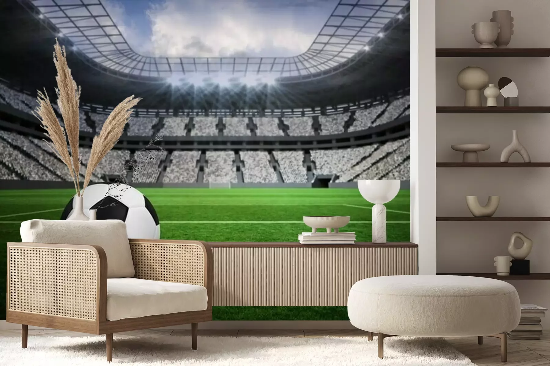 Het materiaal Premium+ is een gestructureerd vinyl op vlies met een gewicht van 255 g/m², dat kleine oneffenheden in de muur effectief camoufleert. De subtiele structuur van fijn zand geeft het oppervlak een exclusieve uitstraling, terwijl de halfmatte afwerking de diepte van de kleuren benadrukt. Het materiaal is dampdoorlatend, waardoor het ook in de keuken en badkamer kan worden gebruikt. De maximale breedte van één baan bedraagt 100 cm – bij grotere afmetingen wordt het fotobehang in meerdere gelijke banen verdeeld. De lijm wordt direct op de muur aangebracht en het behang wordt rand-aan-rand geplakt, wat zorgt voor een esthetisch resultaat zonder zichtbare naden. Het oppervlak kan gemakkelijk worden schoongemaakt door het voorzichtig af te nemen met een vochtige doek.