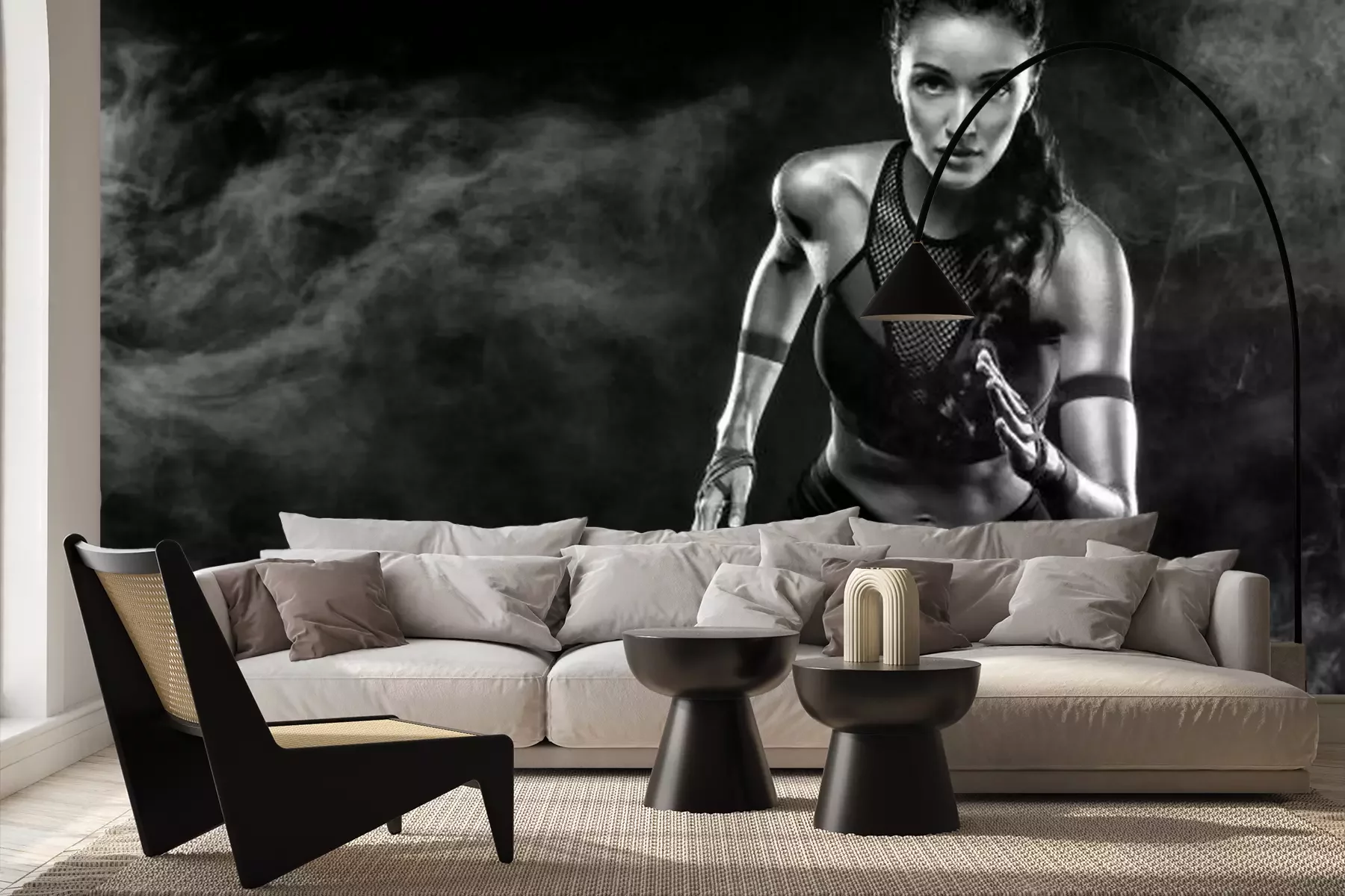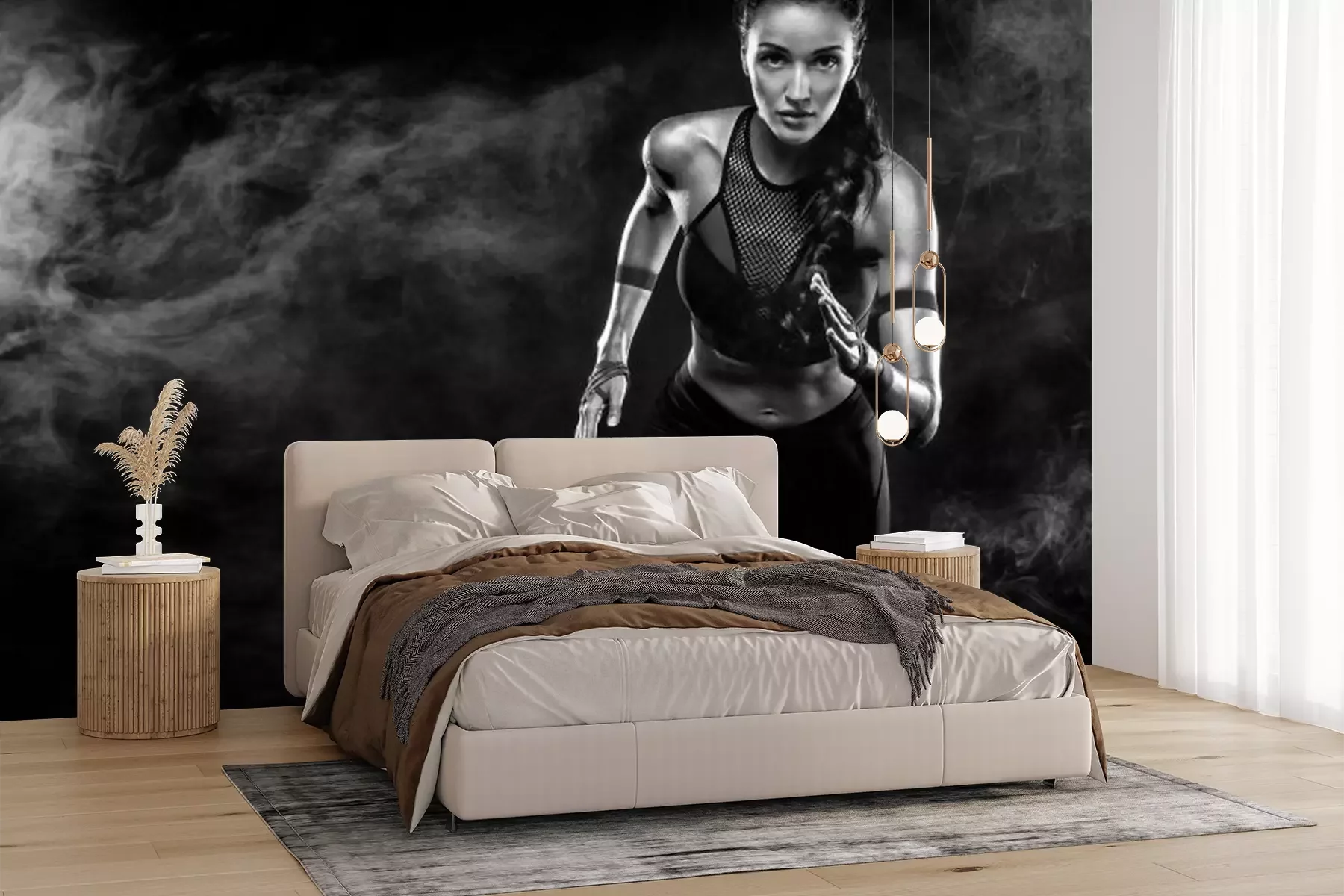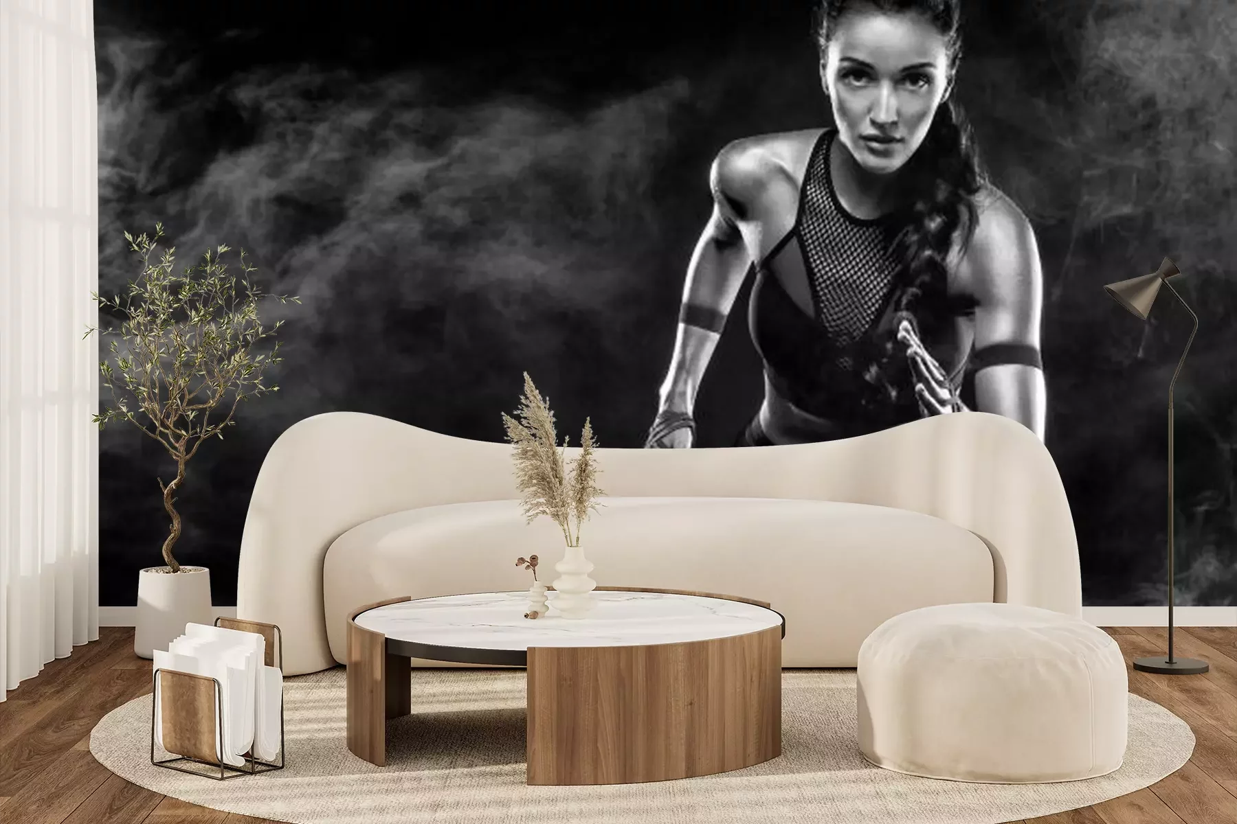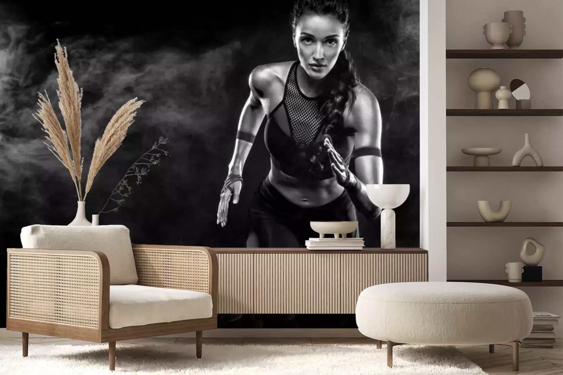Fotobehang Zwart-witfoto van een rennende vrouw