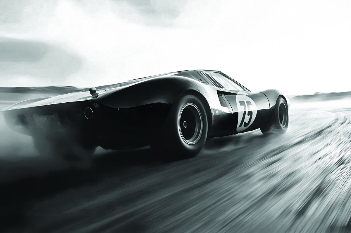 Zwart-witfoto van een retro-auto
